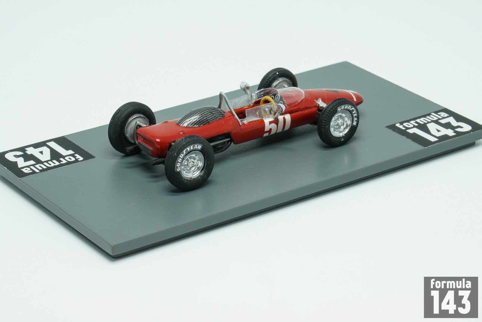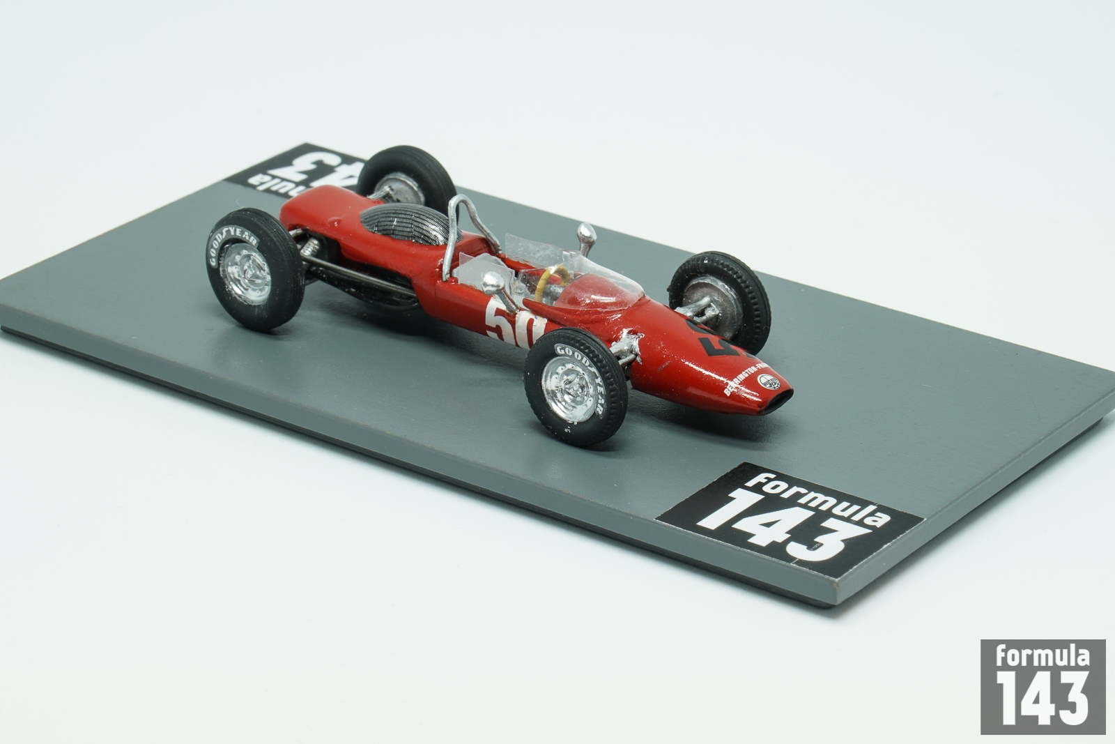 Derrington-Francis Racing Team was founded by Stirling Moss’ former chief mechanic, Alf Francis, and engine tuner Vic Derrington in 1964. Team acquired an old ATS Tipo 100, a car ran by Automobili Turismo e Sport, after the ATS operation had closed in 1963. The original ATS Tipo 100 was designed by Carlo Chitti, had a pencil thin body and weighted less than 1000 pounds. The car was powered by ATS V8 1,494cc engine, which featured fuel injection and double-overhead camshafts. The transmission was a 6-speed Colotti gearbox. Suspension consisted of rockers arms with inboard coils for the front, and double wishbones with coils for the rear, while disc brakes were mounted inboard. In 1964 the car was modified by Derrington-Francis, which used all of the Tipo 100 running gear, which was fitted in a new, shorter spaceframe chassis. The engine was equipped with a Lucas Fuel Injection system, which added another 10 bhp to the performance. The only race for this vehicle was Italian GP 1964 where Portuguese driver Mário de Araújo Cabral qualified the car on the 19th place of the 20 car grid. Ignition problems caused the car to retire after just 25 laps. Portuguese commonly known by the nickname “Nicha” Cabral had couple of F1 starts in 1959-61 for Scuderia Centro Sud before his career was interrupted by National Service which he spent as a paratrooper in Angola. In 1963 he returned to racing for a while with Centro Sud. The Derrington-Francis Monza start was the final episode oh his F1 career.