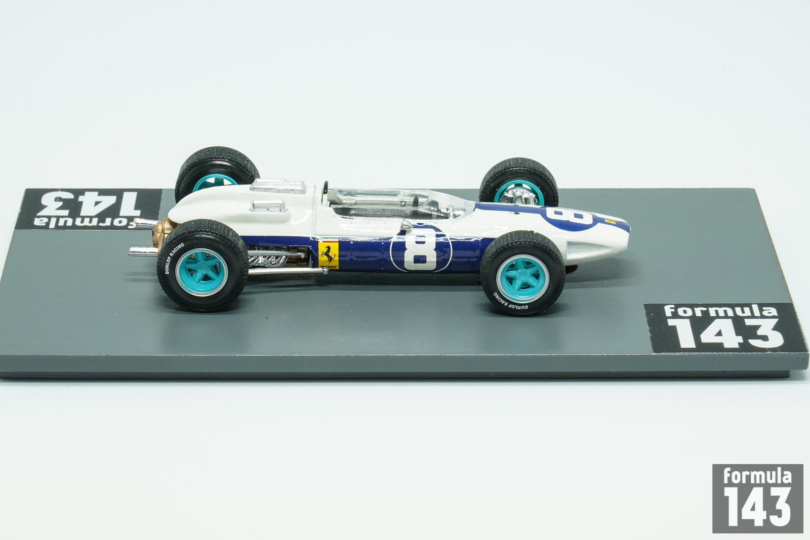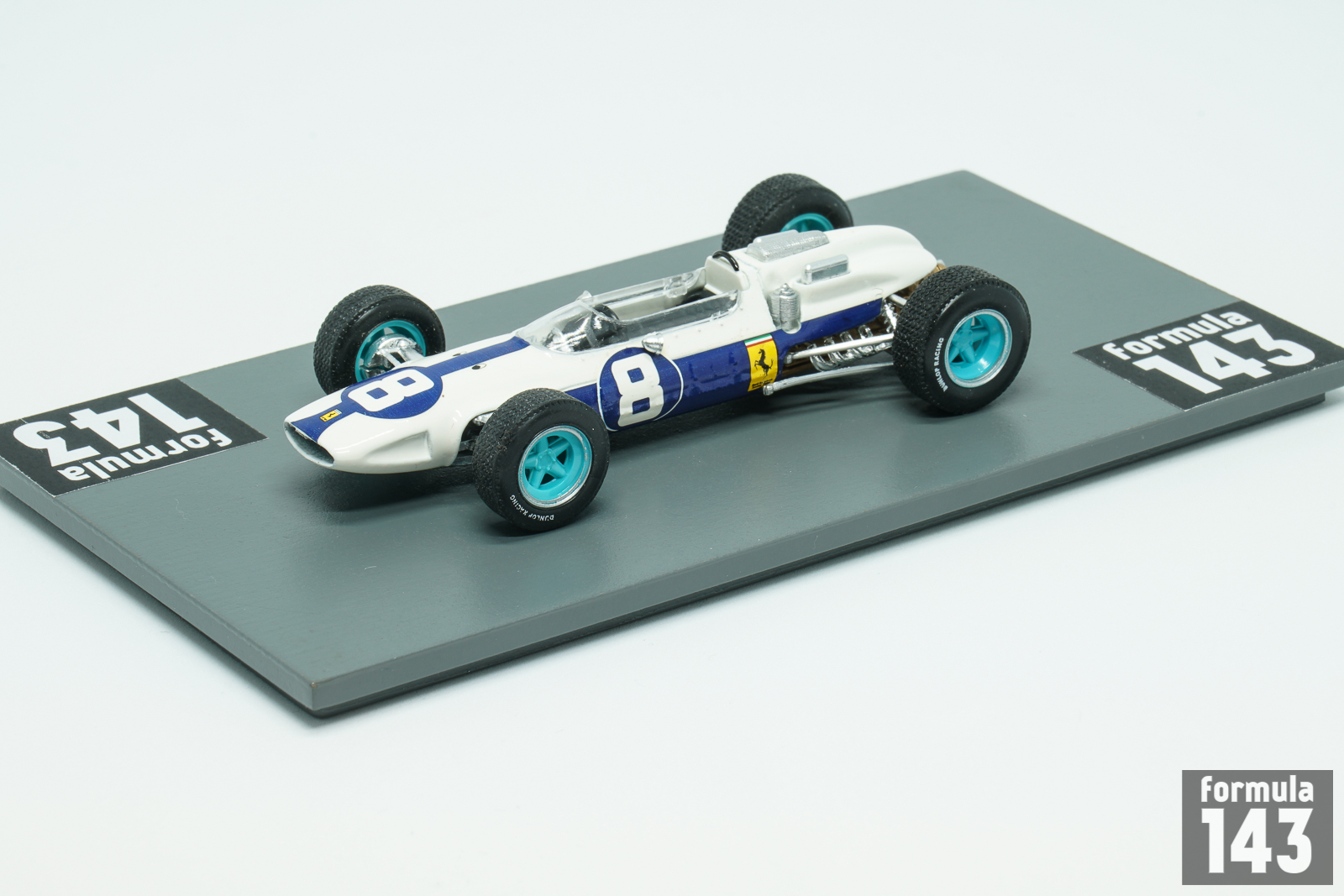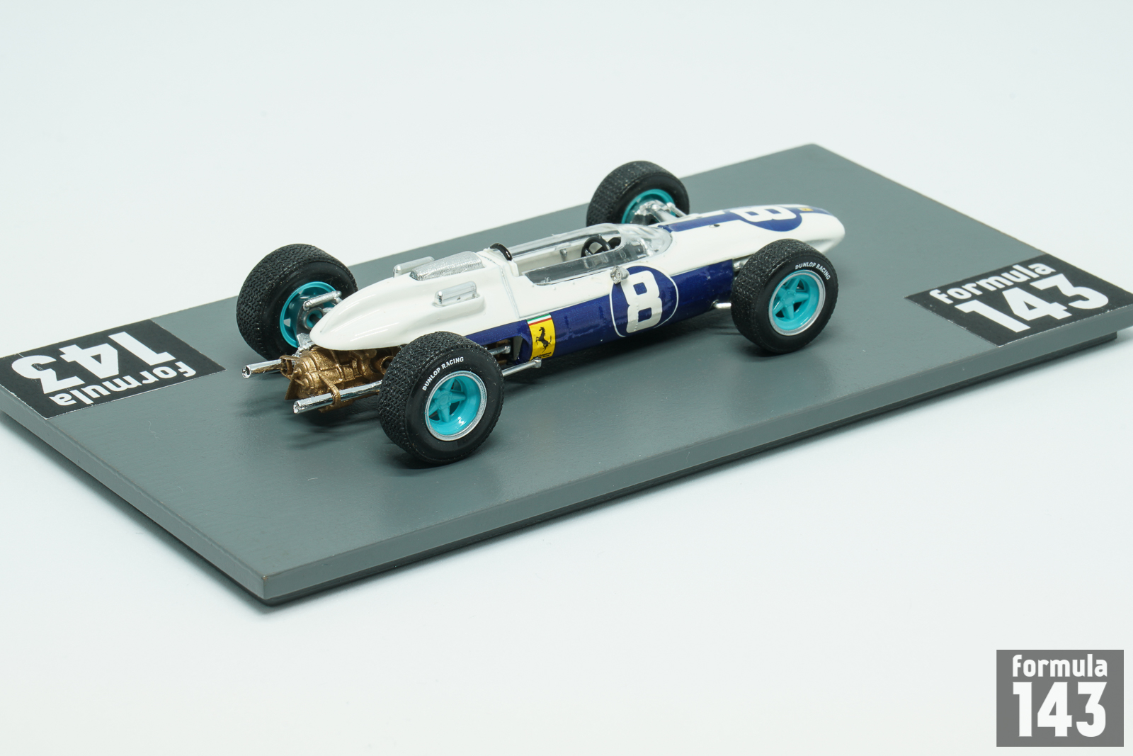 In 1964 for last two Grand Prix (in USA and Mexico) Ferrari cars were entered by the factory-supported but unofficial North American Racing Team (NART), rather than the Scuderia Ferrari factory team (see the 158 Surtees and 1512 Bandini posts). In his series of NART Ferraris Brumm produced 158 car in NART white and blue colors with the racing number 8. This combination of model and racing number does not existed in reality. In 1964 Surtees used NART 158 with number 7, while Bandini drove #8 NART 1512, which has obvious visible differences from 158. So it’s Surtees car with Bandini’s number. Brumm produced this “fiction” North American Racing Team entry in error. The wrong model was withdrawn from production and replaced with the true one with the same reference number (R291B).