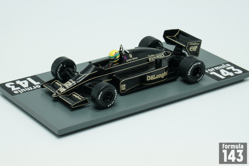 In 1985 Lotus had returned to their winning ways for the first time since the sudden death of company founder Colin Chapman in 1982. The Lotus 98T was the further evolution of 97T from the 1985 season, designed by Gerard Ducarouge. For 98T the French designer created a more compact monocoque using for the first time a one-piece moulded composite structure. The front double wishbone suspension was carried over from the previous cars with a heavily revised geometry. At the rear an adjustable ride-height system was used for most of the races. Another novelty was the implementation of a six-speed gearbox. The car was powered by the new Renault EF15B turbocharged V6 engine which produced around 900 bhp in the race format. In the qualification form the new Renault was capable of 1150 bhp. After the withdrawal of the works Renault team, in 1986 Lotus had a privileged position with their French engine supplier over Renault’s other customer. Lotus was effectively the works team and received all the latest developments. The combination of the 98T chassis, Renault twin-turbo engine and talented Ayrton Senna as the driver #1 resulted in two Grand Prix victories, 8 pole-positions and 3rd place in the Constructor’s Championship. Senna finished the season on the 4th place in the Drivers’ standings while his team-mate Johnny Dumfries scored only 3 points. The 98T was the last Lotus car in the famous black and gold colors of John Player. With Camel as the new sponsor, Lotus car would get yellow and blue scheme for the next few seasons. The scale model from Eaglemoss Lendas Brasileiras do Automobilismo Collection represents Senna’s car from Braziliano GP 1986.