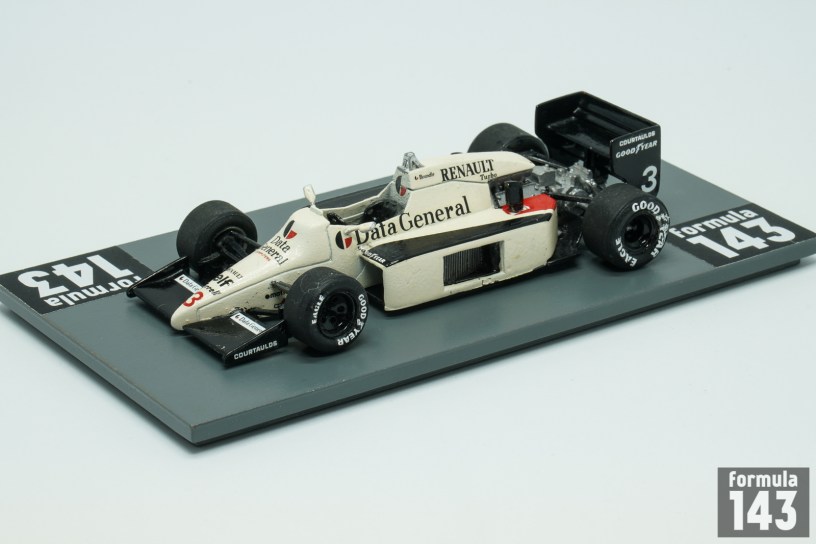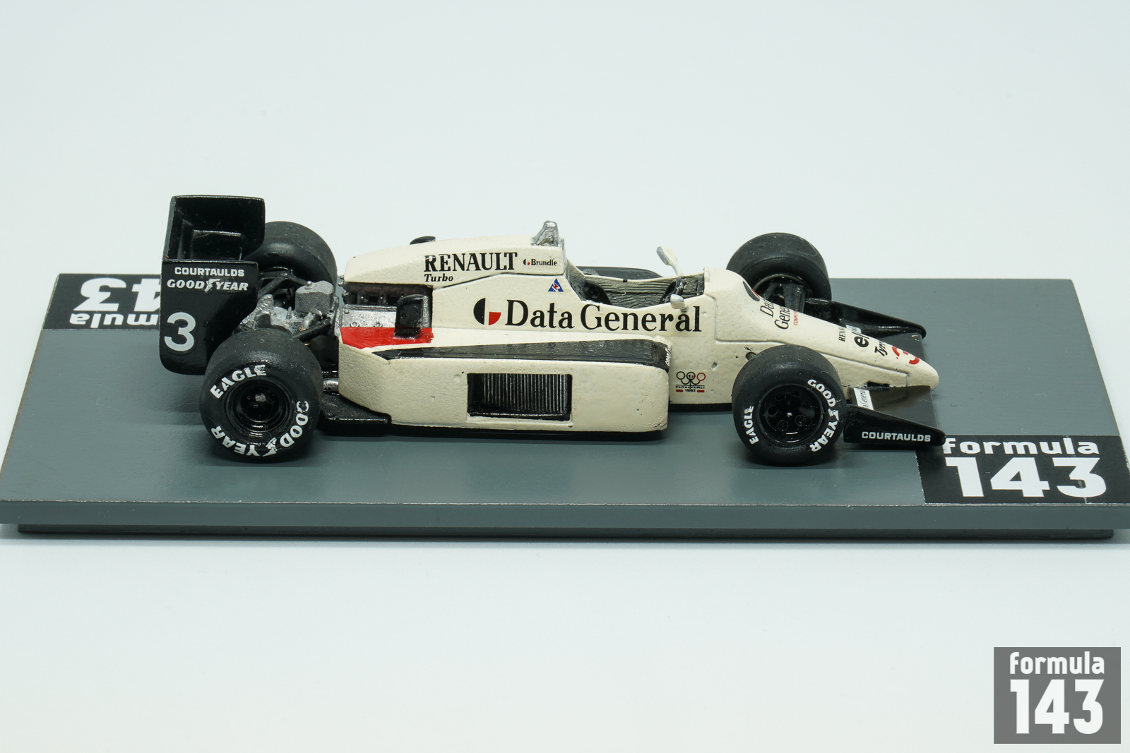 Tyrrell 014 was the car used by Team Tyrrell during the second half of the 1985 season and in first three races of the 1986. It was the first Tyrrell car with a turbocharged engine designed to replace the 012 powered by naturally aspirated Ford Cosworth. The team was the last to secure a turbocharged engine deal, but development of the new car to be powered by Renault Gordini 1.5-litre turbocharged V6 engine was delayed due to the lack of funding. The 014 was finally ready for the 1985 French Grand Prix. In 1986 Tyrrell got the sponsorship of Data General Company and started the development of the new 015, but continued to use the 014 in the beginning of the season. Martin Brundle and Philippe Streiff were the team drivers in 1986. Brundle, who was at his third consecutive year with Tyrrell (and third his season in F1), managed drove the 014 to 5th place in the first race of the season in Brazil. After switching to new 015 Brundle was able to finish several times more in points and was classified on 11th position in the Championship.