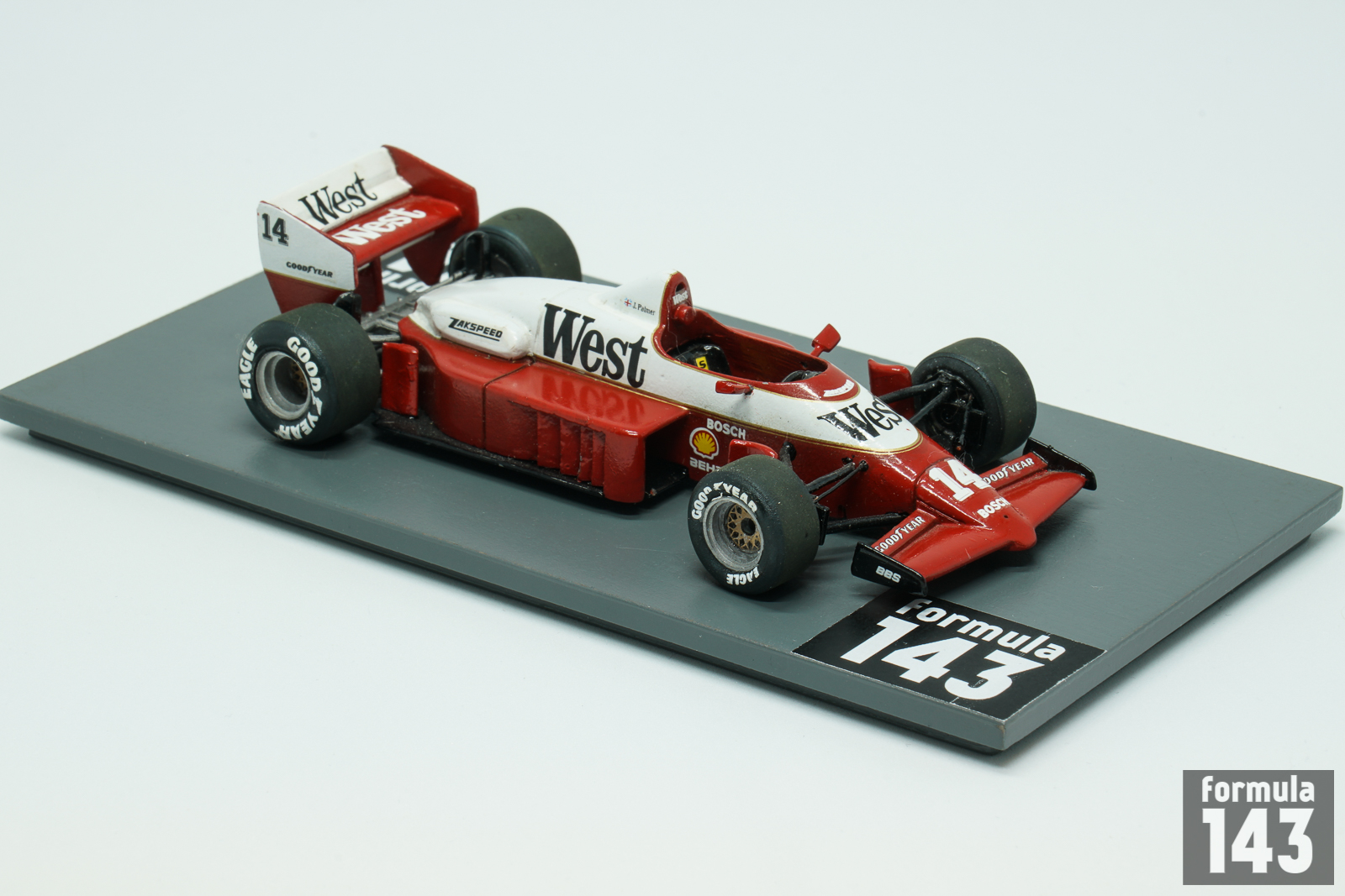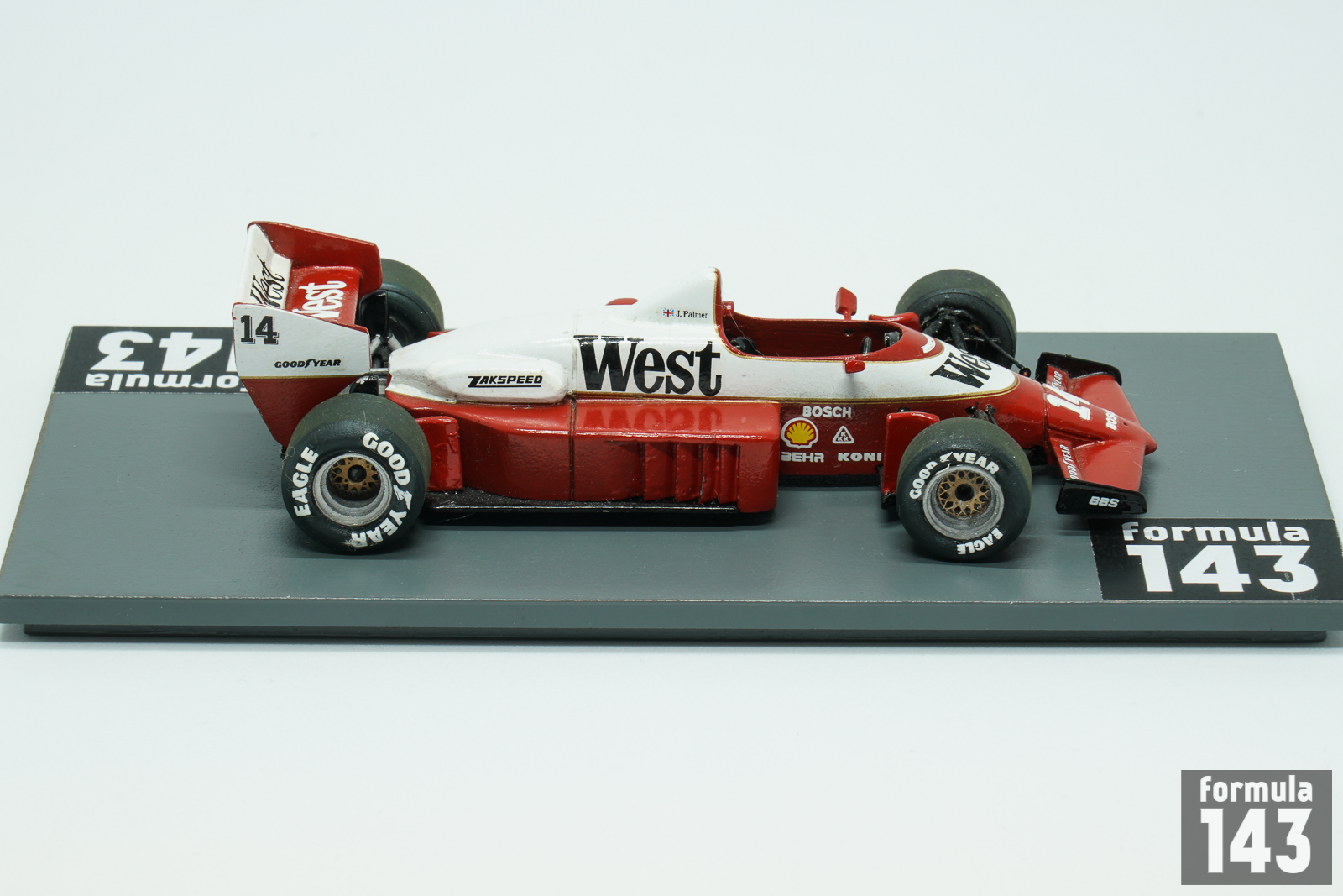 1986 was the second season for West Zakspeed Racing in Formula One. The team was founded by Erich Zakowski in 1968 to race in the German Deutsche Rennsport Meisterschaft (DRM) series, a predecessor of the current DTM. In F1 times Zakspeed was run by Erich’s son Peter Zakowski. The team entered Formula One in 1985 with their own turbo-charged engine which was used (with some modifications) until 1989. The 861, second F1 car for the German team, designed by Paul Brawn was conventional F1 vehicle of the period. It was built around carbon fibre monocoque, the suspension was double wishbone all round, operating springs and dampers by pullrods. Power was provided by Zakspeed’s own 4 cylinder 1500/4 turbo engine which was rated at about 850 bhp. The car, painted in red and white livery of the title cigarette sponsor West, was too heavy and short on power comparing to the top teams. British driver Jonathan Palmer drove for Zakspeed for the second year, while the second seat of 1985 season was taken by Dutch Huub Rothengatter, who replaced Christian Danner and brought some funding to the team. Zakspeed best finish in 16 races was 8th for Palmer at Detroit and another for Rothengatter in Austria.