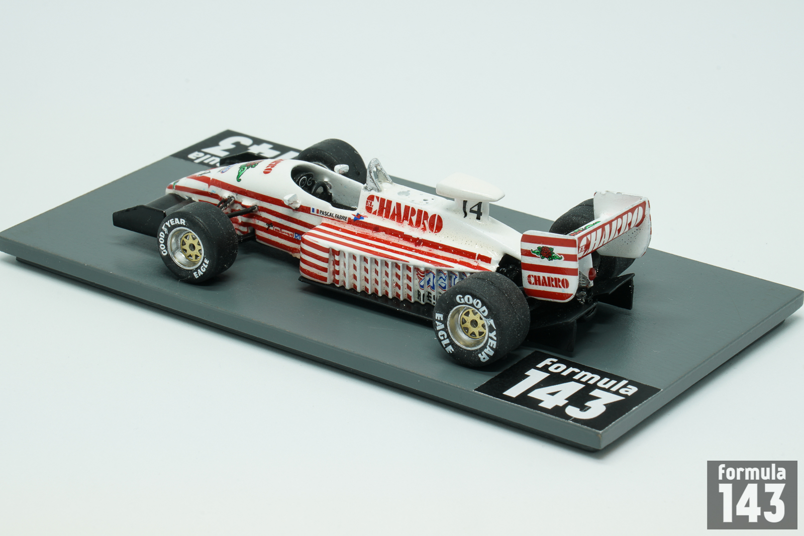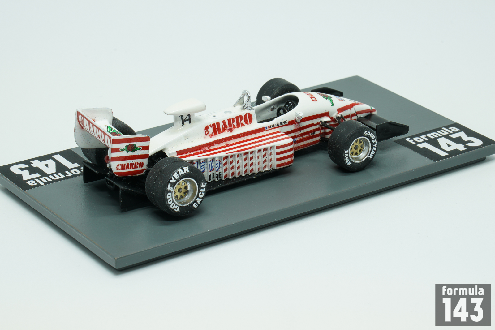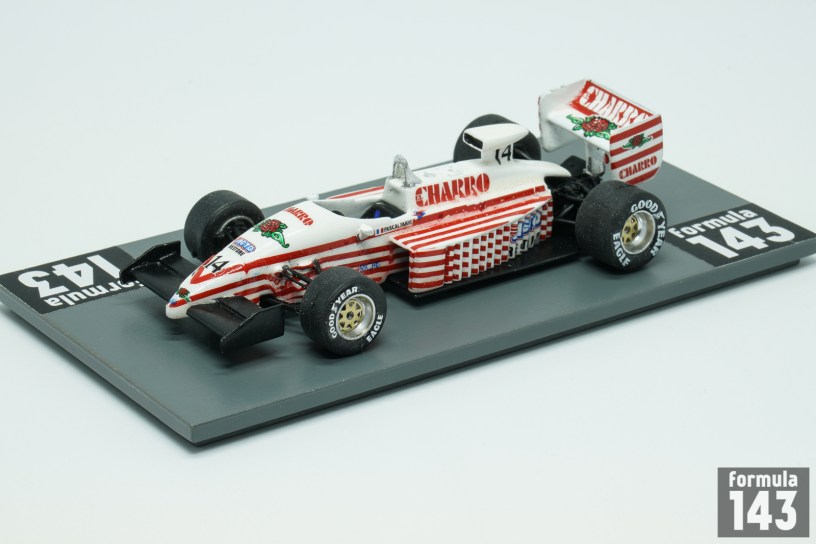 Automobiles Gonfaronnaises Sportives (AGS) was a small French racecar constructor founded by ex-racing driver and mechanic Henri Julien in Gonfaron in the Provence-Alpes-Côte d’Azur region in southeastern France. AGS raced in smaller formulas since 1969, and progressed to F1 in 1986. For the 1987 season the JH22 model designed by Christian Vanderpleyn was built. The car had been fitted with a normally-aspirated Ford-Cosworth DFZ V8 engine and Goodyear tyres. It also carried a 1970s-style airbox, although this was replaced with a smaller and more conventional air intake as the season progressed. The team was sponsored by Italian shoe and clothing company El Charro and the car was painted in red and white livery with large rose above the nosecone and on the sidepods. French Pascal Fabre, who drove previously for AGS in F2, was signed as a single team’s driver. Obviously, the small-budget car powered by normally-aspirated engines and driven by novice driver was not competitive compared to the top teams. AGS, as one of four teams running normally-aspirated engines (the others being Tyrrell, March and Larrousse), contested the one-off Colin Chapman Trophy in addition to the regular Constructors’ Championship, while Fabre contested the drivers’ equivalent, the Jim Clark Trophy. Fabre usually qualified at the back of the grid but regularly finished in the races because the car proved to be quite slow but reliable. The only point for AGS in 1987 was scored by Roberto Moreno, who replaced Fabre for two last rounds of the championship. The Brazilian finished 6th in the last race of the season in Adelaide. At Monaco, the JH22 was given a new livery which was used throughout the rest of the season. The car’s sidepods were now festooned with red stripes that joined in a V-shape on the nose. In Monaco Fabre qualified slowest of all and was seven times lapped by the winner Ayrton Senna on the way to another race finish, this time in 13th place.