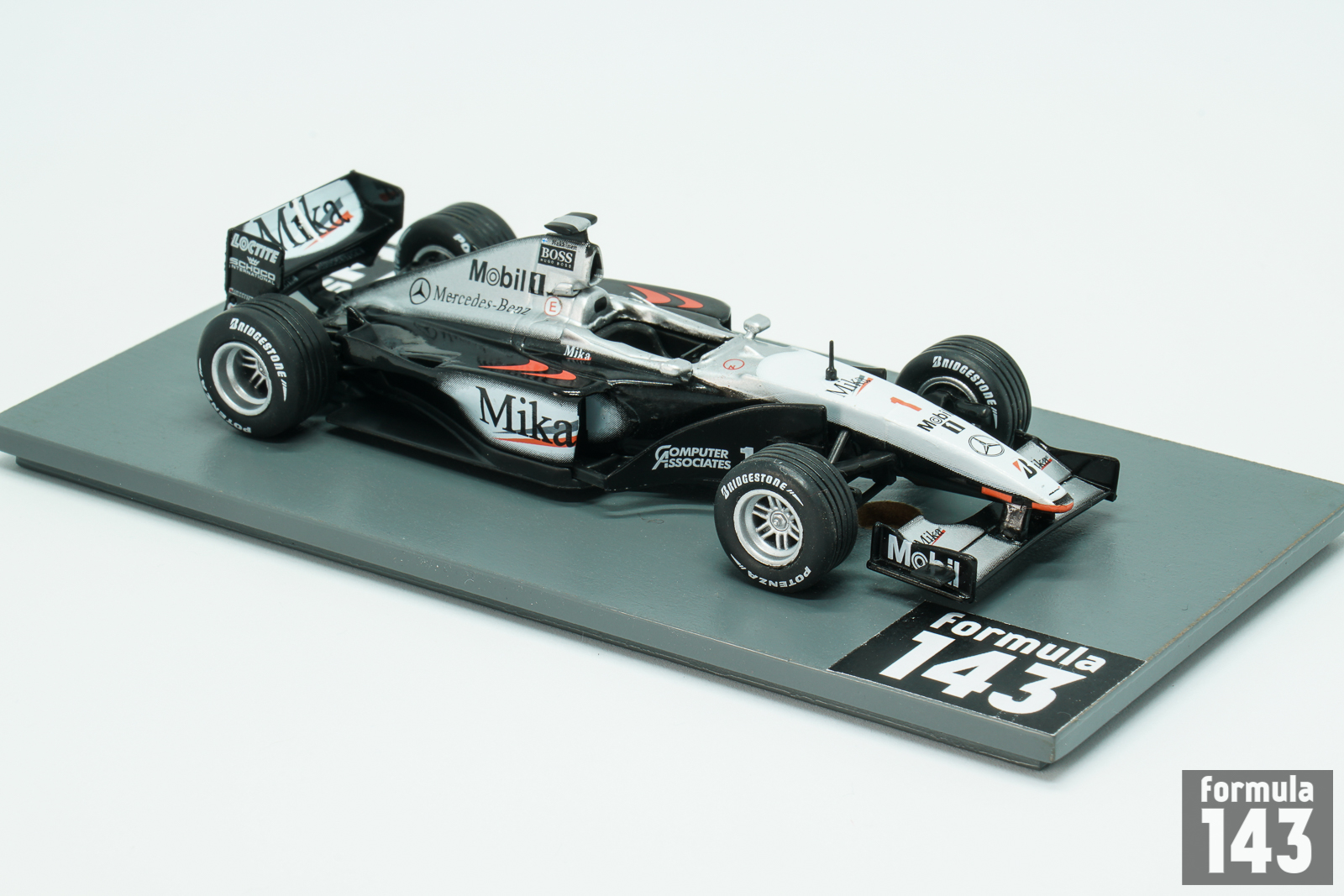 MP4/14 designed by Adrian Newey and Neil Oatley was used by West McLaren Mercedes team in 1999 season and was driven by Mika Hakkinen to his second Driver’s Championship title in the row. Mika won 5 Grand Prix and beat Eddie Irvine by just 2 points in the Championship classification. This scale model is from Formula 1 Auto Collection. See also MP4/14 by RBA Collectibles.