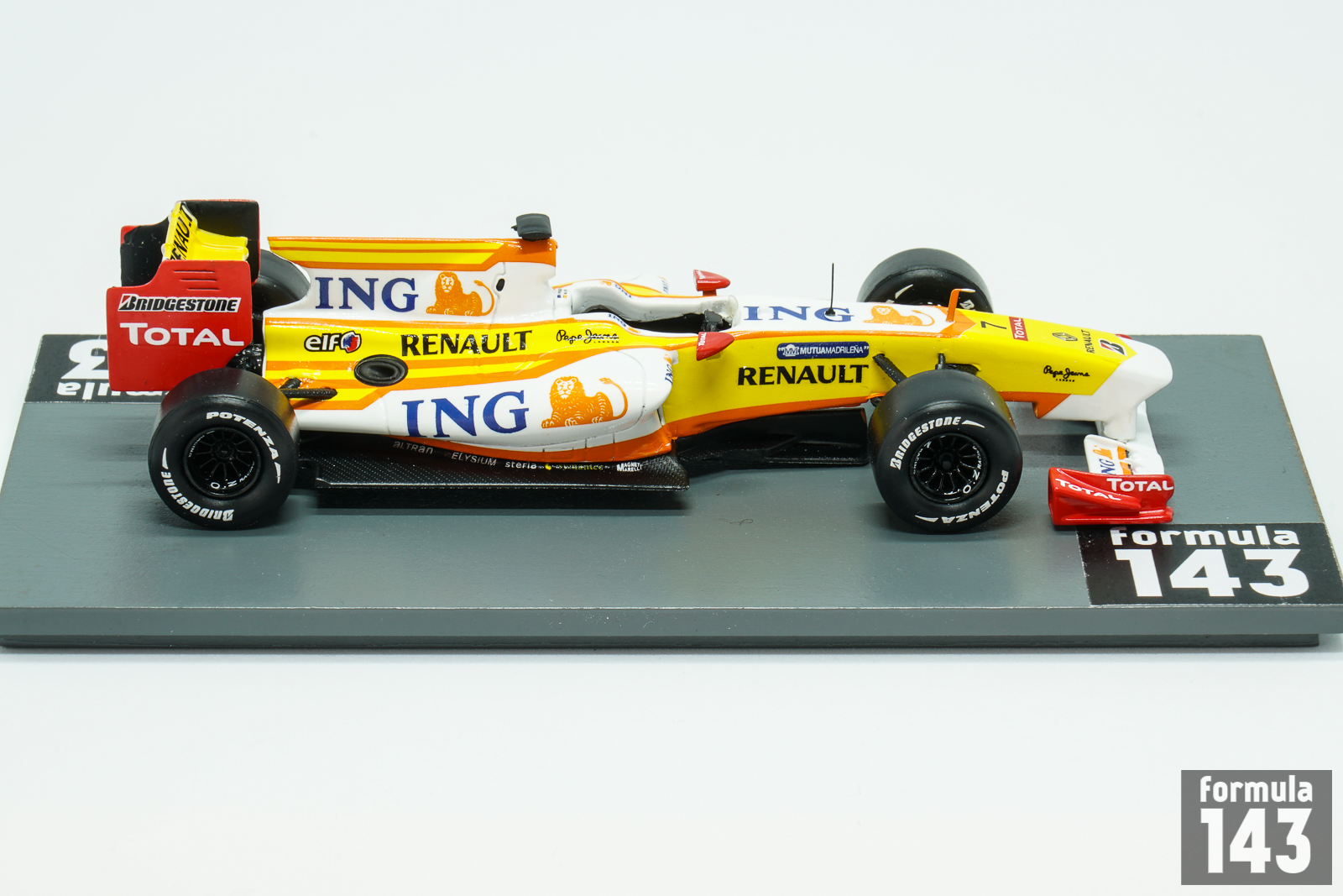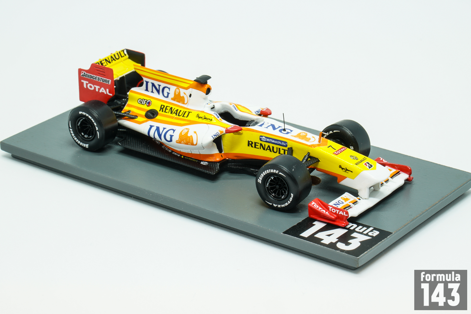 2009 season of Formula One saw the introduction of many new rules. Among important new regulations to encourage overtaking there were engine RPM limits, an adjustable front wing, and disproportionate wing sizes. Engine RPM reached 20,000 rpm in previous seasons and were initially limited to 19,000 rpm for 2009 (with further lowering to 18,000 from 2010 to 2013). The most significant system introduced in F1 in 2009 was the Kinetic Energy Recovery System (KERS), a system that stores energy, created by braking, through a flywheel; this energy is then channeled to the car’s drivetrain to increase acceleration. So the new R29 was completely new car built by Renault according 2009 F1 regulations. The chassis was a moulded carbon fibre and aluminium honeycomb composite monocoque, with engine incorporated as a fully stressed member. The power was provided by Renault F1 RS27 2400 cc V8 engine with KERS. The chassis was designed by Bob Bell, Tim Densham and Dirk de Beer with Executive Director Pat Symonds overseeing the design and production of the car. Rob White led the engine design. Renault retained the drivers from the previous year – two-times World Champion Fernando Alonso and son of 3-times champion Nelson Piquet Jr. Nevertheless, the car proved to be non-competitive – R29 was inefficient in aerodynamics and lacked the pace. Alonso scored points in eight races and took one pole position (in Hungary) and one podium result: a third-place finish at Singapore Grand Prix. His teammate Piquet Jr failed to score any points in first 14 rounds and was replaced by team test driver Romain Grosjean for the remainder of the season. When Piquet left the team he heavily criticized the team and his former boss Flavio Briatore. Piquet reveled to the Brazilian press the details of his crash at Singapore Grand Prix in 2008 when he was ordered by the team to deliberately crash to give an advantage to Alonso. The rest of the 2009 season was crumpled by this scandal and proceedings. ING group, the main sponsor, immediately terminated the contract, and so did Alonso who had a mid-2009 agreement with Ferrari for a three-year contract to commence from the 2011 season before, but moved it to 2010 after Renault “Crashgate”. In the final driver’s standings of 2009 Championship Alonso was ninth, his lowest placing since he came sixth in the 2003 season.