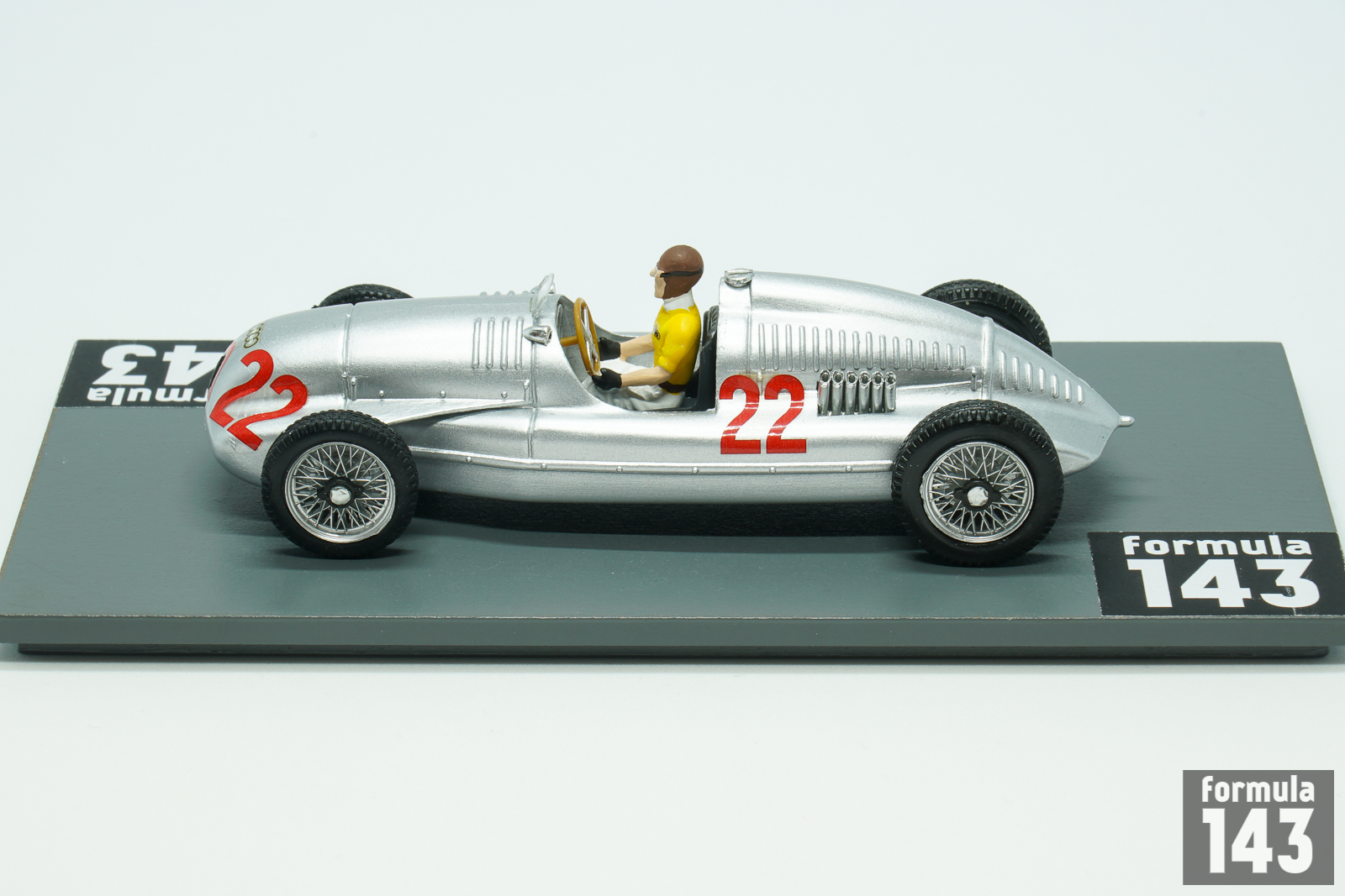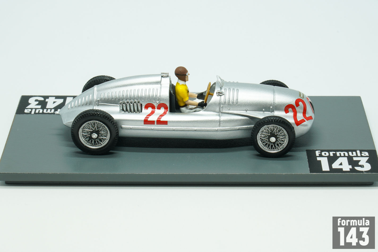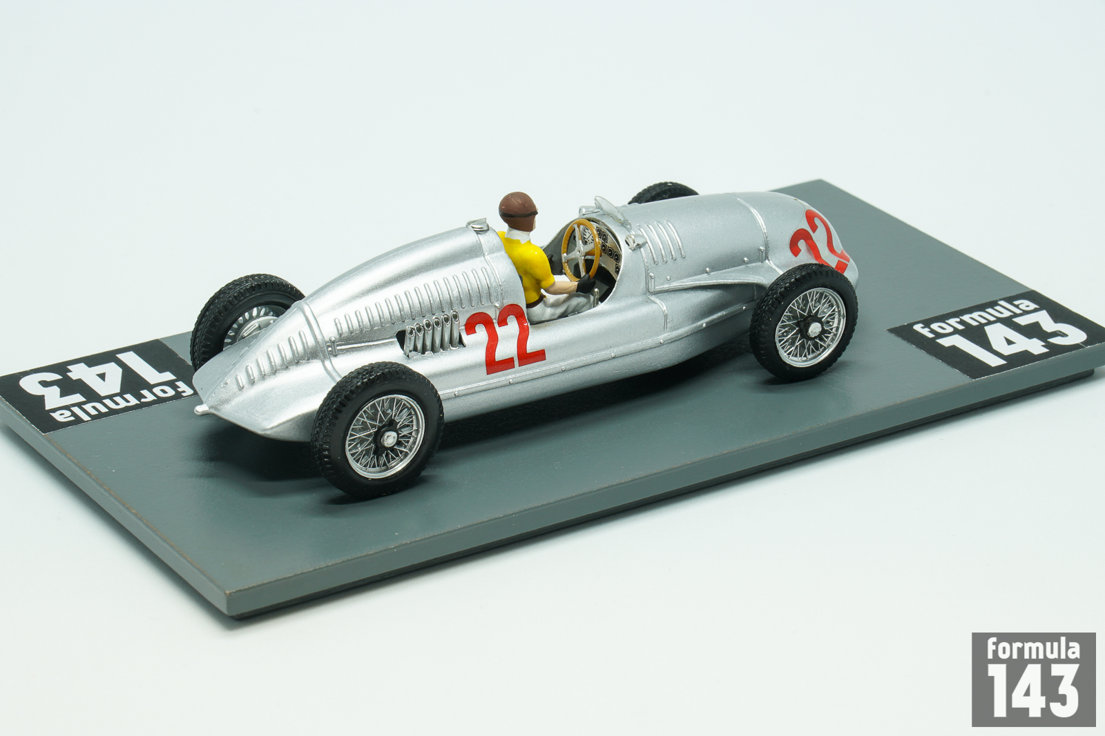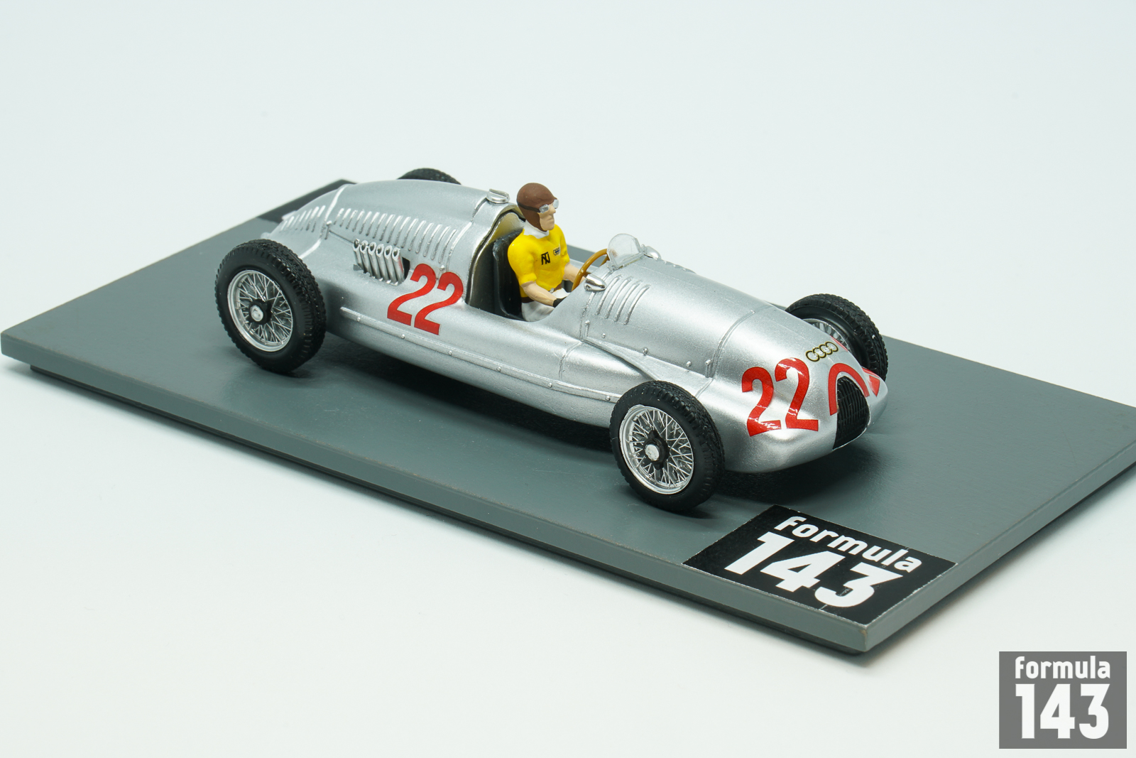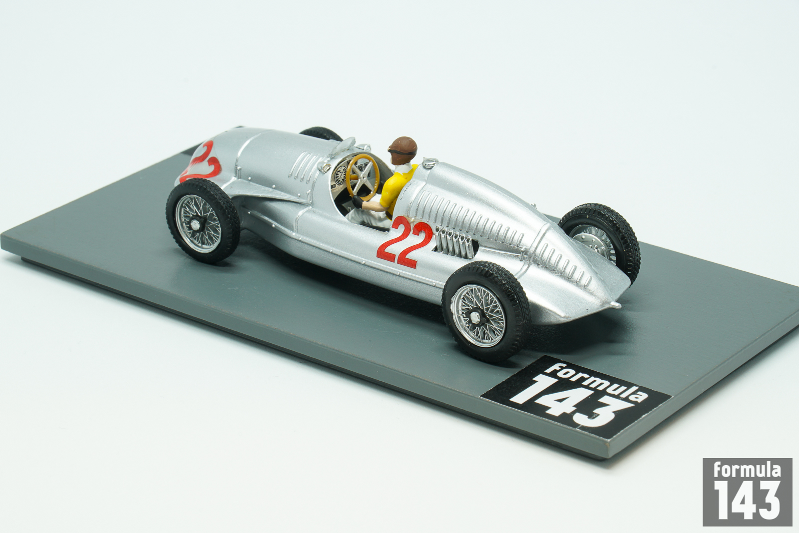 Auto Union Type D was the final Gran Prix model built by the German company. The car, powered by 3 litres supercharged V12 engine, was introduced in 1938 and raced in 1938-39. This model from Brumm Tazio Nuvolari Limited Edition series reproduces the car in which Tazio Nuvolari won the 1938 Italian GP.