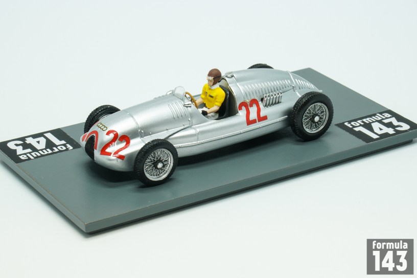 Auto Union Type D was the final Gran Prix model built by the German company. The car, powered by 3 litres supercharged V12 engine, was introduced in 1938 and raced in 1938-39. This model from Brumm Tazio Nuvolari Limited Edition series reproduces the car in which Tazio Nuvolari won the 1938 Italian GP.