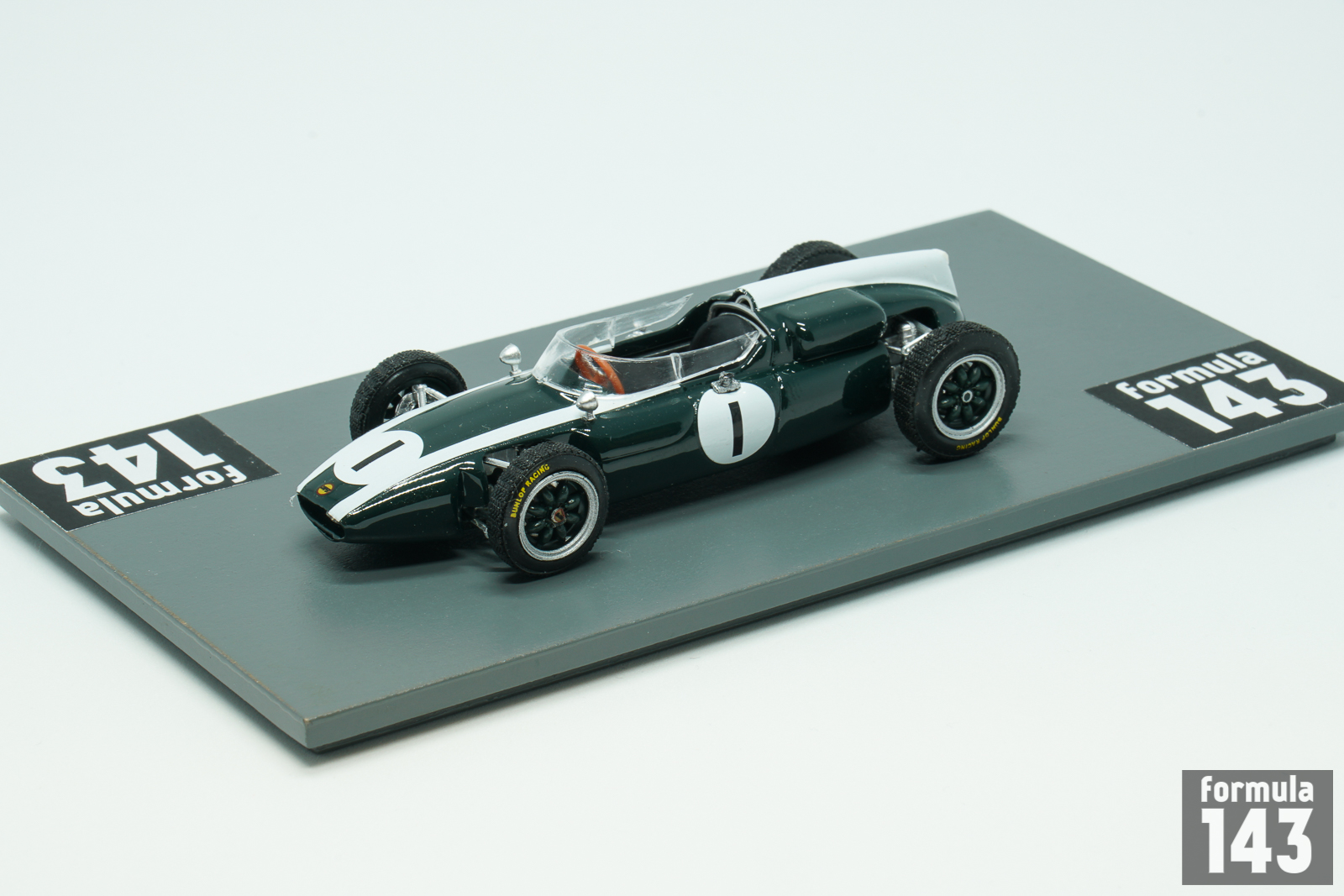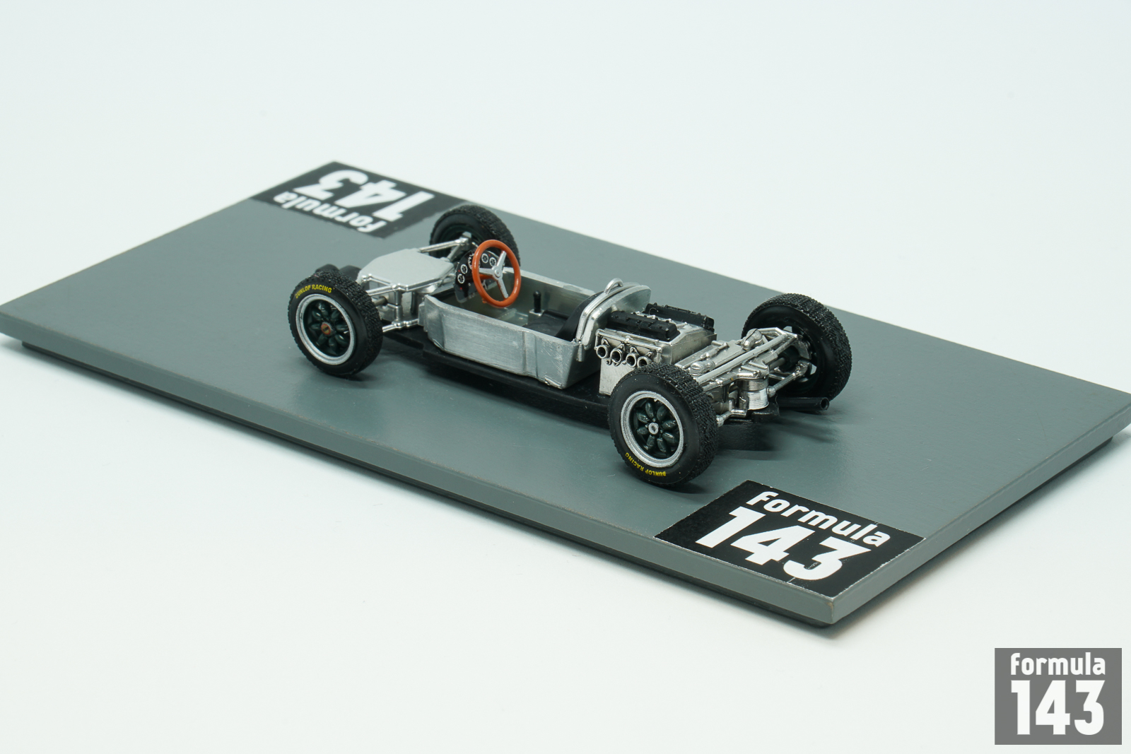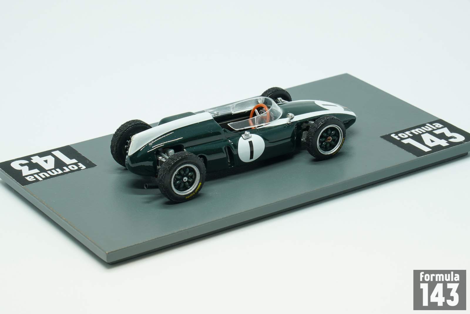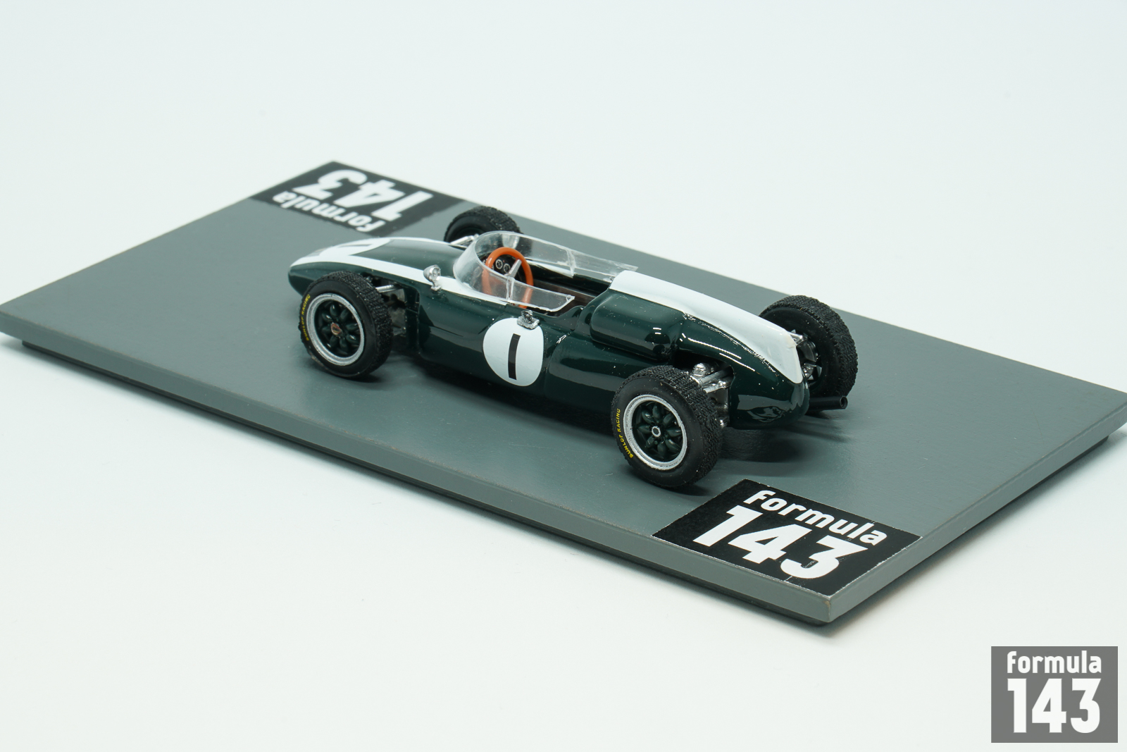 Cooper Car Company started the 1960 season with T51, its successful model of the previous year. But after extraordinary performance of new Lotus 18 at races in Argentina in the beginning of the season, team principal John Cooper and designer Owen Maddock have no option rather than to try redevelop T51 into new chassis copying best Lotus technical solutions in in addition to winning Cooper combination of simplicity and reliability. New T53 was born very quickly and was available for Monaco Grand Prix in May. It was more lighter, lower and aerodynamically effective than T51. Jack Brabham, despite disqualification in Monaco for outside assistance, won four next Championship races and took his second consecutive Drivers’ Championship title. This scale model of Jack’s T53 from victorious British GP at is from Brumm Anteprima series and represents the car in full and as a frame not covered with the panels.
