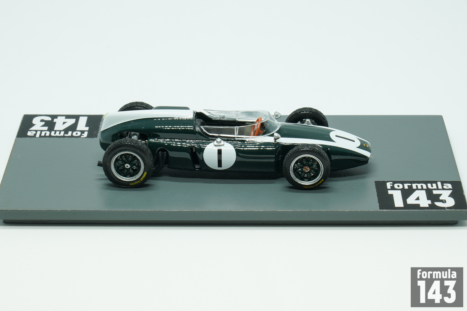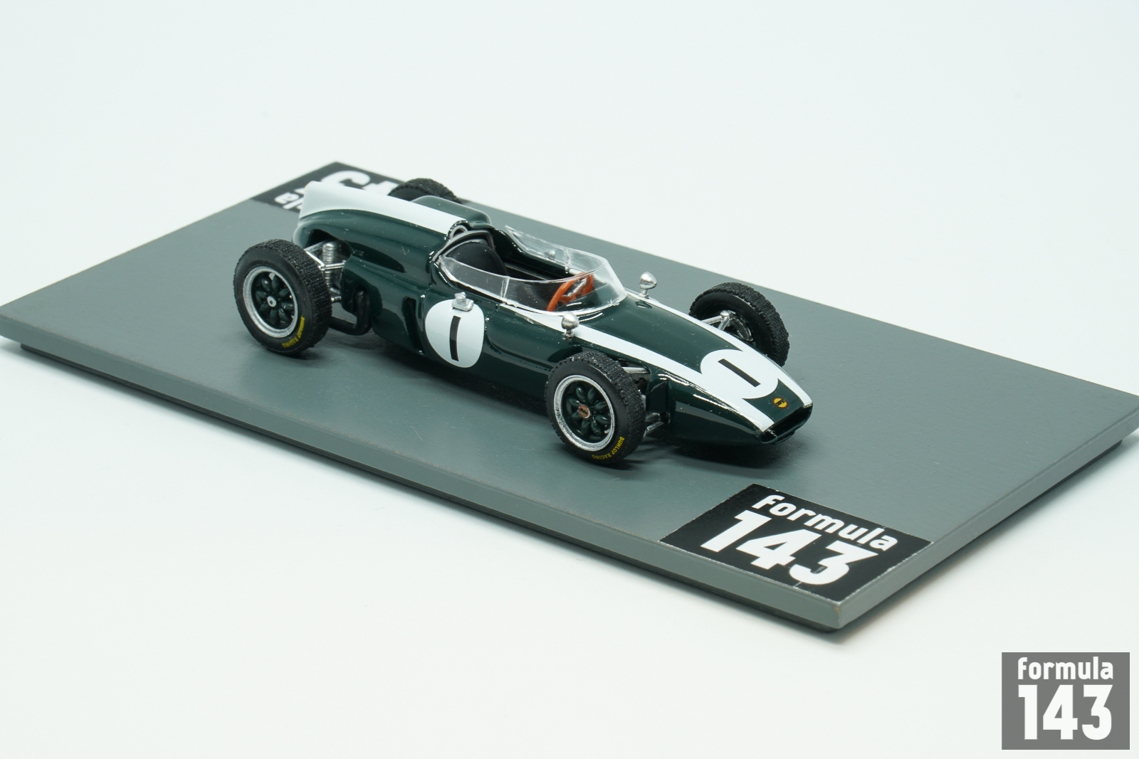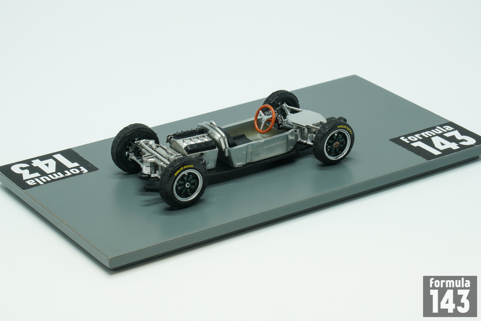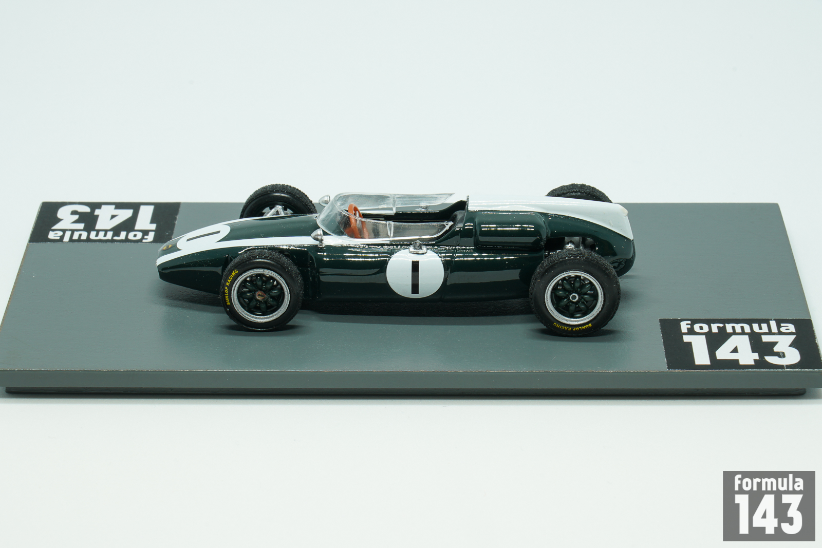 Cooper Car Company started the 1960 season with T51, its successful model of the previous year. But after extraordinary performance of new Lotus 18 at races in Argentina in the beginning of the season, team principal John Cooper and designer Owen Maddock have no option rather than to try redevelop T51 into new chassis copying best Lotus technical solutions in in addition to winning Cooper combination of simplicity and reliability. New T53 was born very quickly and was available for Monaco Grand Prix in May. It was more lighter, lower and aerodynamically effective than T51. Jack Brabham, despite disqualification in Monaco for outside assistance, won four next Championship races and took his second consecutive Drivers’ Championship title. This scale model of Jack’s T53 from victorious British GP at is from Brumm Anteprima series and represents the car in full and as a frame not covered with the panels.