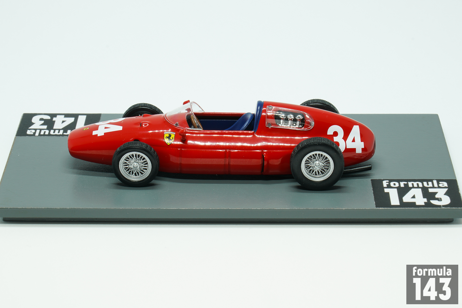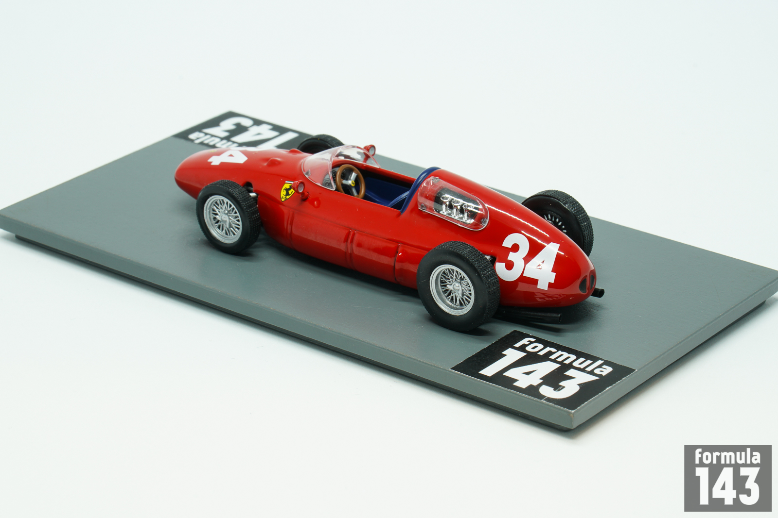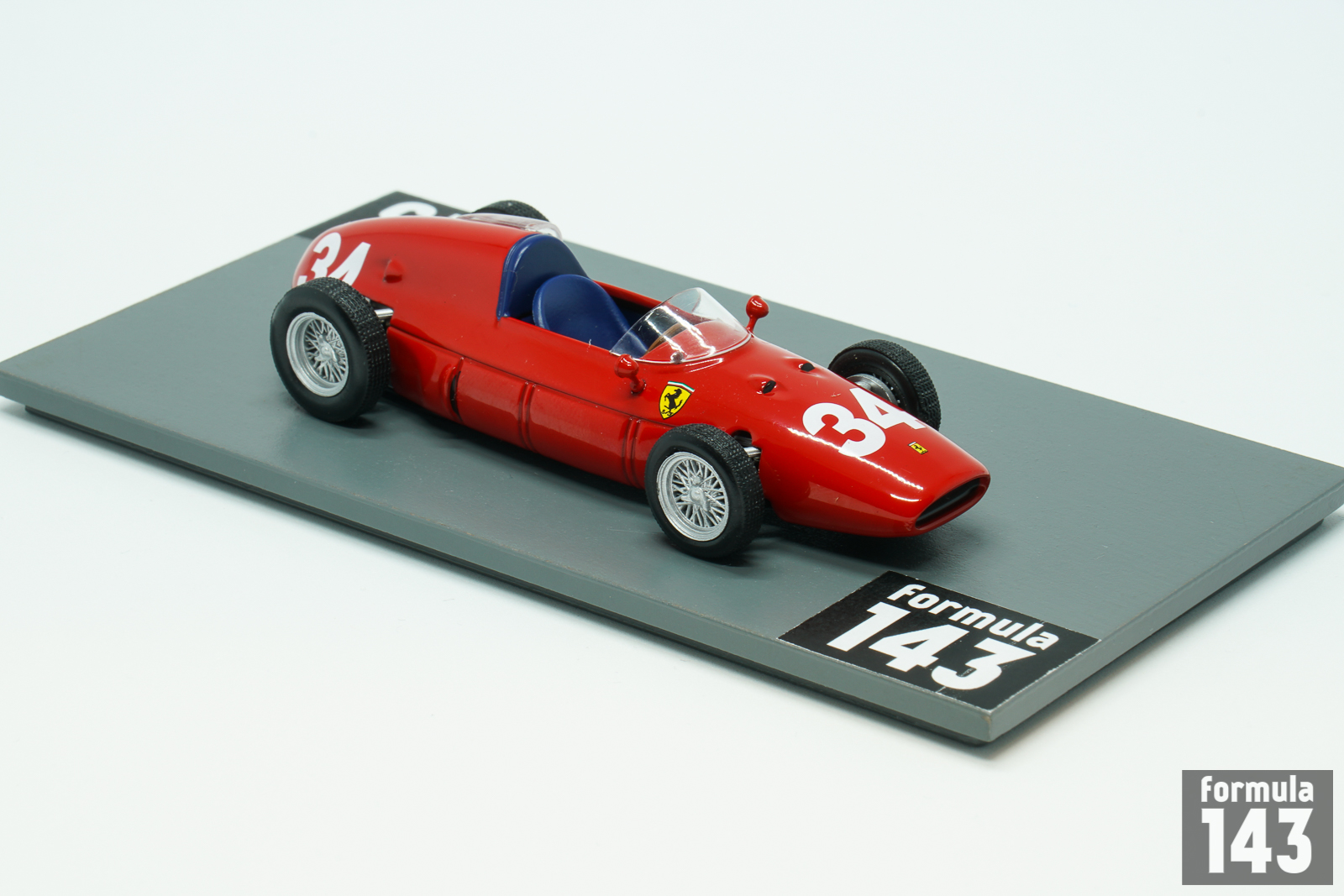 Ferrari 246P is the first Ferrari rear-engined f1 car. It is based on the 246 models which was conventional front-engined single seater, used in 1958-1960. The ‘P’ indicates for ‘Posteriore’ (rear). In fact, 246P was mid-engined, as the engine was in front of the rear axle. The car was powered by Ferrari Dino Type 171 V6 engine of 2,4-litres. The car was used mostly as a prototype for testing rear-engined layout, and was raced just two times in 1960 season. Its debut was in Monaco Grand Prix when 246P driven by Richie Ginther finished in 6th place. Later that year the car in F2 specification (known as Ferrari 156 F2 of 156P) fitted with the 1.5 V6 engine was driven by von Trips to 5th place in Italian Grand Prix.