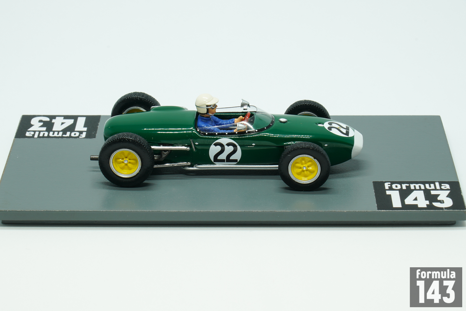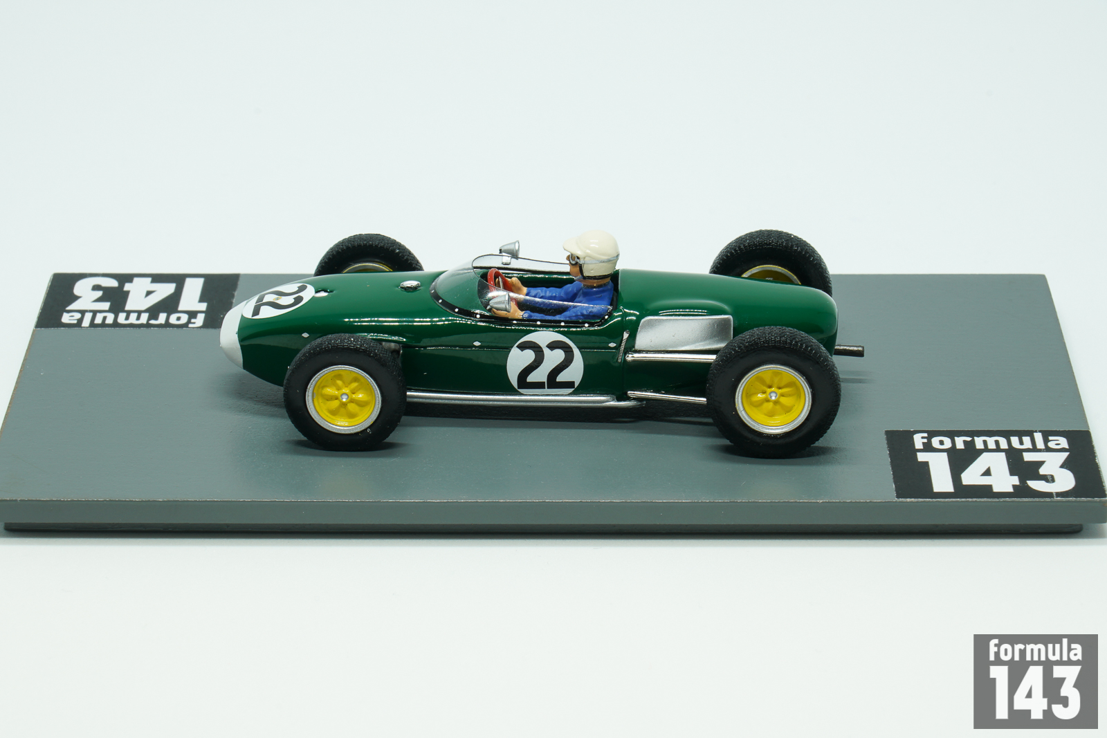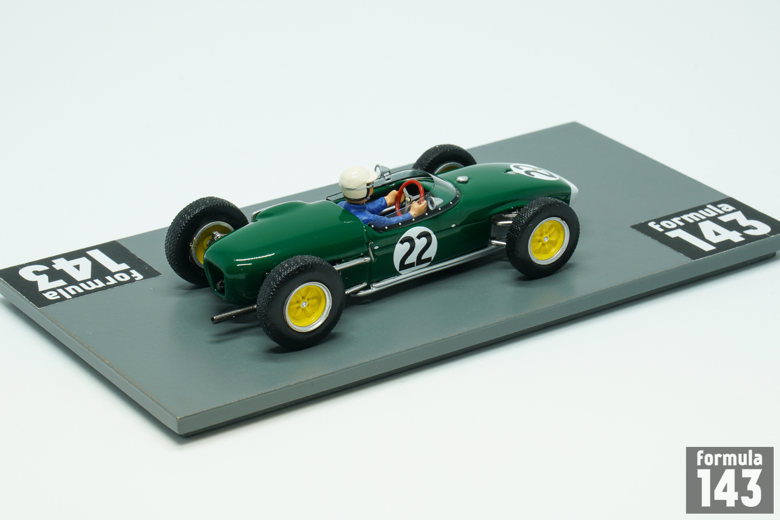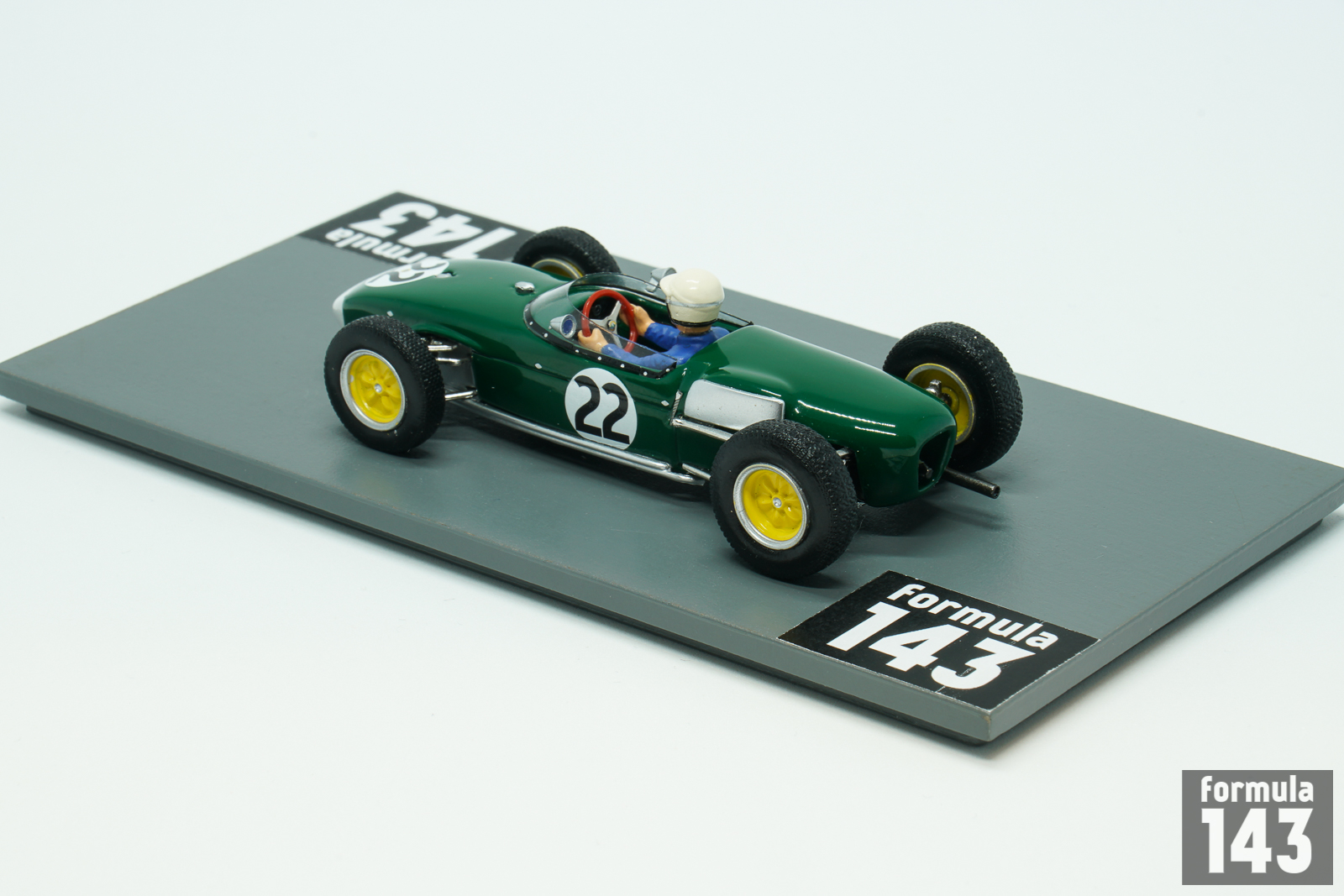 Lotus 18 was first rear-engined car by Team Lotus and third F1 vehicle of the company, after front-engined formula cars, the 12 and 16. The 18, designed by Colin Chapman, was the lightweight, powerful, and simple car which proved to be rather competitive. It was powered by a 2.5 liter Coventry Climax, and later in 1961 the displacement was reduced to 1.5 lirtes according to new Formula 1 regulations. The engine was positioned behind the driver’s seat but in front of the rear axle, so it was mid-engined rather than rear-engined. Many Lotus 18 cars were built for F1, F2 and Formula Junior regulations, all based on the same chassis. Team Lotus used the car in 1960 and occasionally in 1961, while some privateers continued to use it in F1 until 1965. The first Formula One victory for the Lotus 18 came from a private Rob Walker’s team when Stirling Moss won the 1960 Argentinian Grand Prix. Later the season he also took the victory in French Grand Prix while the best result of the works team in the 1960 season was 3rd place achieved by Innes Ireland at Silverstone and by Jim Clarke at Oporto. The scale model by Spark represents the work car driven by Ron Flockhart to 6th place in the 1960 French Grand Prix. It was the only outing of Flockhart in Team Lotus, as well as his last season in Formula One. In 1961-62 Flockhart moved to the field of record flights. United Dominions Trust made plans to break the record for the time taken to fly from Sydney to London in order to gain publicity for its UDT Laystall racing team. A Commonwealth Aircraft Corporation-built Mustang World War Two fighter was purchased in Australia and Flockhart was engaged to make the attempt. He started in February 1961 from Sydney, but the attempt was terminated at Athens because of engine problems. Next year another CAC Mustang was bought to repeat the attempt. But during the test flight in preparation for the record attempt, Flockhart crashed in poor weather near Kallista, Victoria, and was killed.