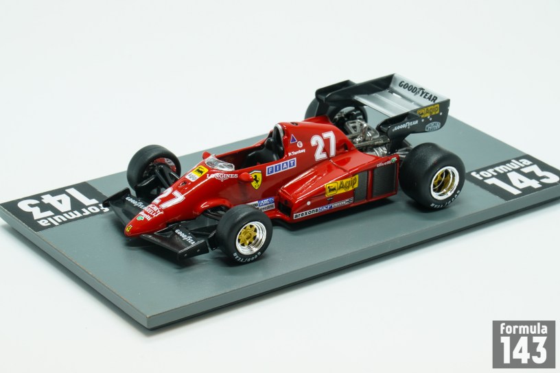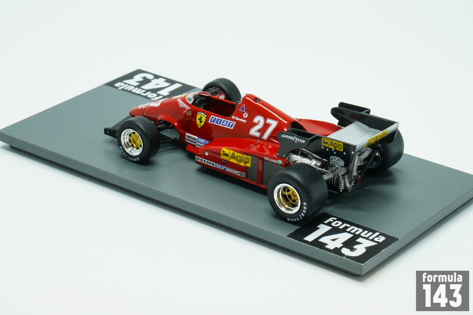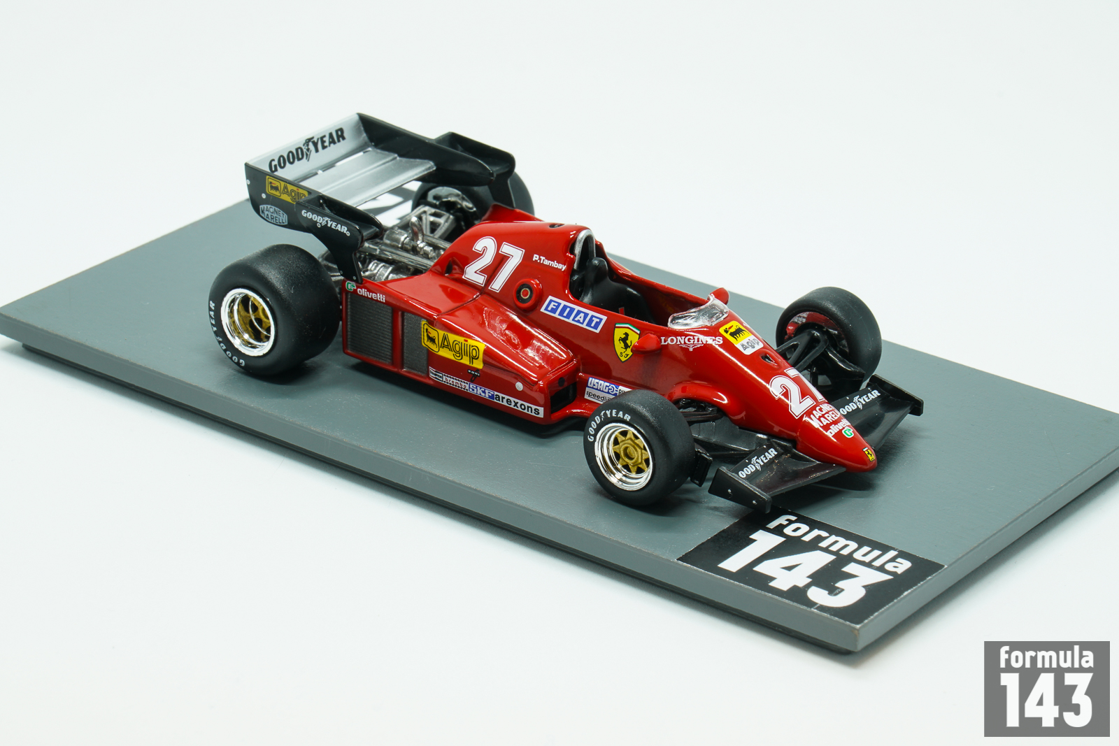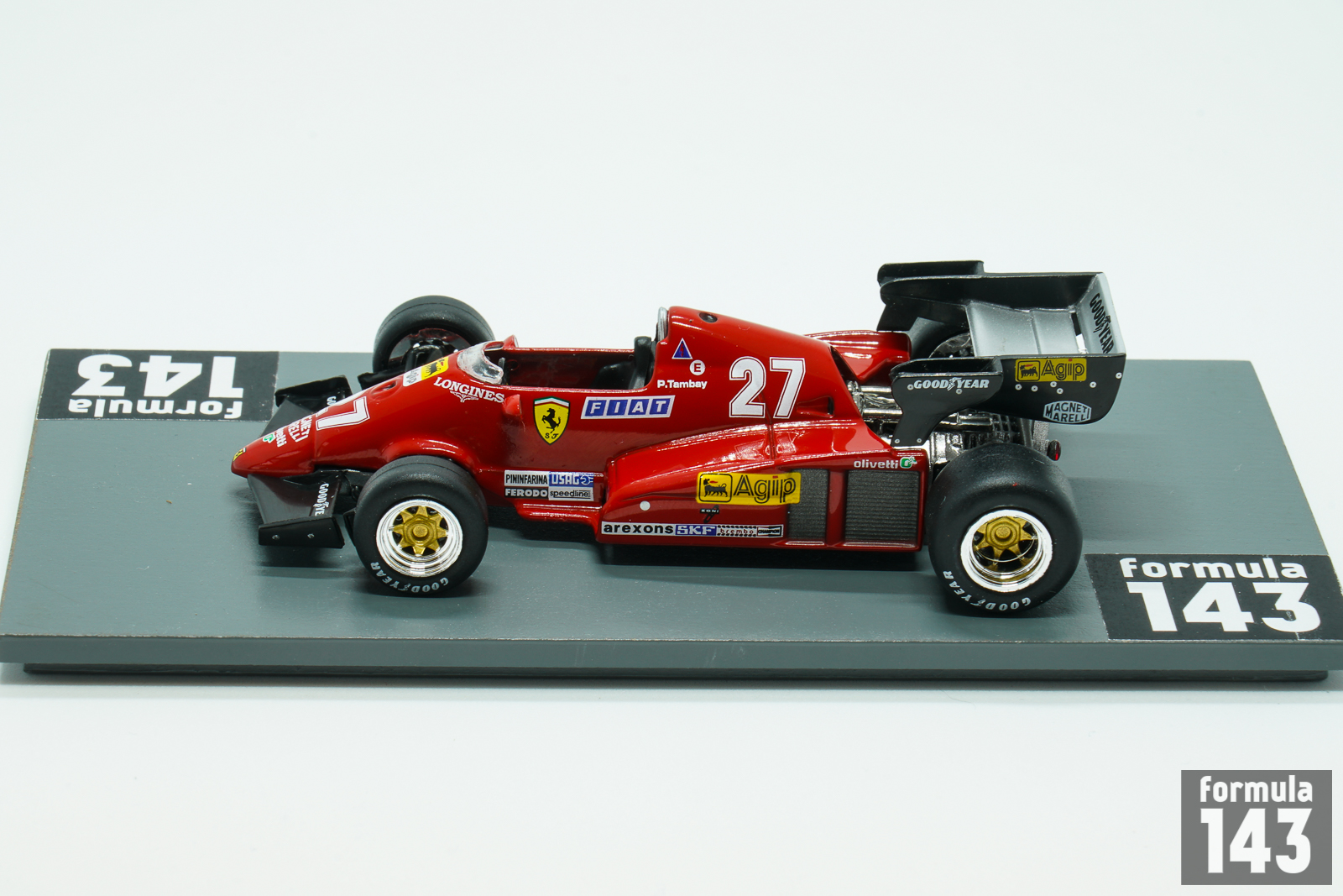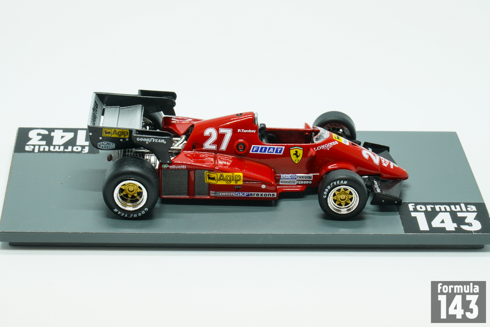 The 126C2B was the further modification s of the 126C2 model raced in 1982. Since the 1983 season FIA banned the ground effect by mandating the use of a flat bottom. In the 126C2B Harvey Postlwetwhaite introduced much larger front and rear wings which along with smaller side-pods generated around 50% of the downforce of the ground-effect aerodynamics. The V6 turbo engine was boosted to around 800 bhp in qualifying and over 650 bhp for race. The C2B were in use in the first half of the season until the 126C3 was introduced, which featured Ferrari’s first carbon-fibre composite monocoque chassis. The C3 debuted in the British GP driven by Patrick Tambay, while Arnoux get the 126C3 at the subsequent race in Germany. Tambay and Arnoux were both in contention for the world championship throughout 1983. They scored one victory each behind the wheel of 126C2B (Tambay in San Marino and Arnoux in Canada). After the introduction of 126C3 Arnoux added two more wins (at German and Dutch Grand Prix), but the car reliability problems put Ferrari drivers out of the Championship run. Arnoux finished the season on 4th position, Tambay was 5th. However, Ferrari took the constructors’ title for the second year in a row.