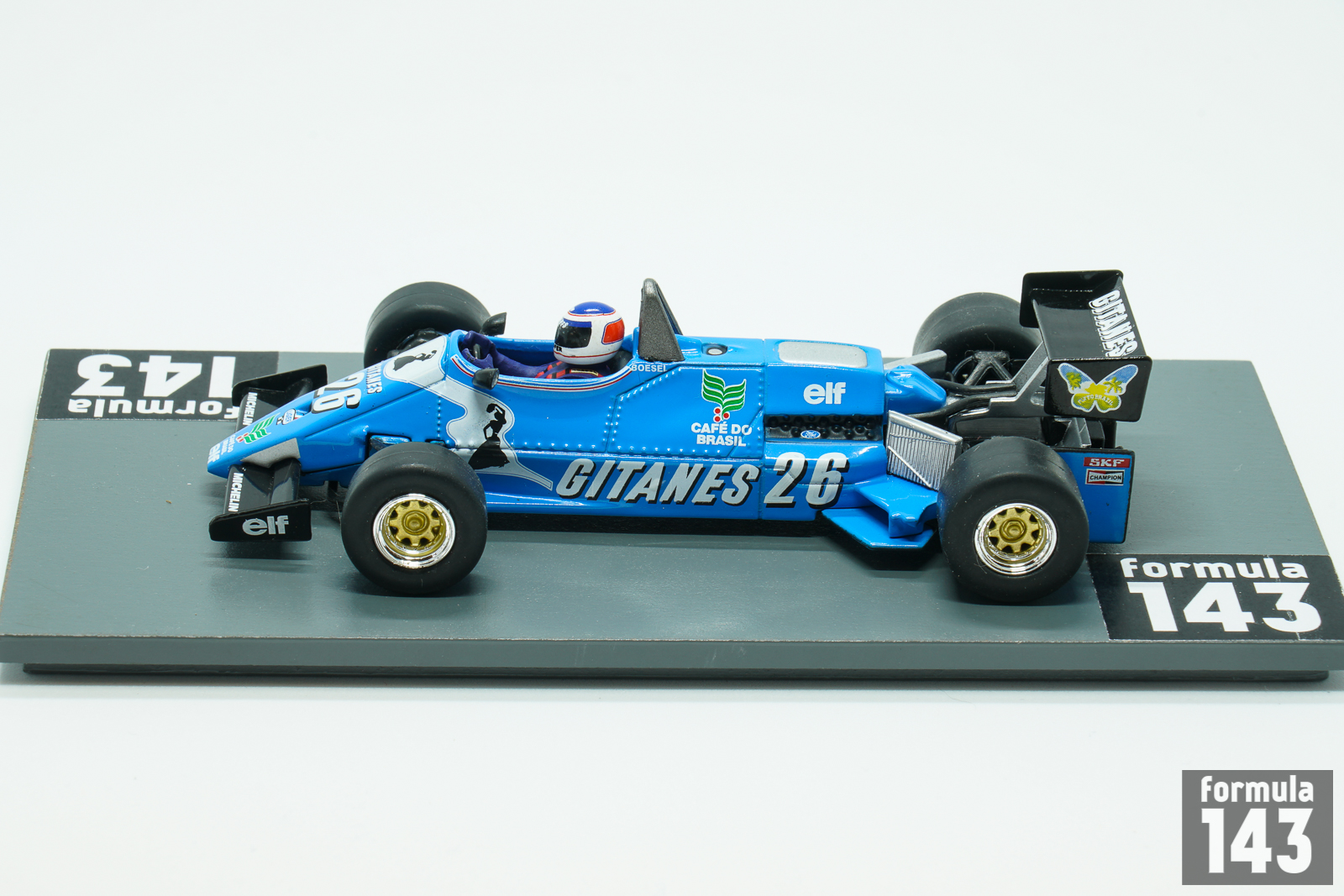 The JS21 created by Claude Galopin featured the aluminium monocoque chassis and Ford Cosworth DFV 3.0 litre normally aspirated engine, while the majority of teams used turbo power. The 1983 season was the first year for Ligier when the team failed to score any points. Two new drivers of the team, veteran Jean-Pierre Jarier and Brazilian novice Raul Boesel scored a lot of retirements with the 7th place as the best result for both of them. Boesel, who generally was outperformed by Jarier, took 7th place in the USA West Grand Prix, and Jarier was 7th in Austria. The scale model from the “Brazilian Legends” Collection represents the Boesel’s car from the Belgian Grand Prix where he was 13th at the finish. The 1983 season was the second and last for the Brazilian driver in Formula 1. Later he moved to Indy Car where he raced during 16 seasons (1985 – 2002), but scored no wins.