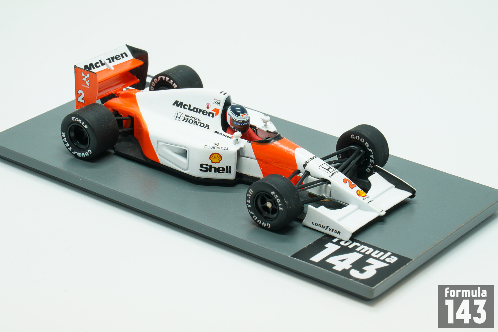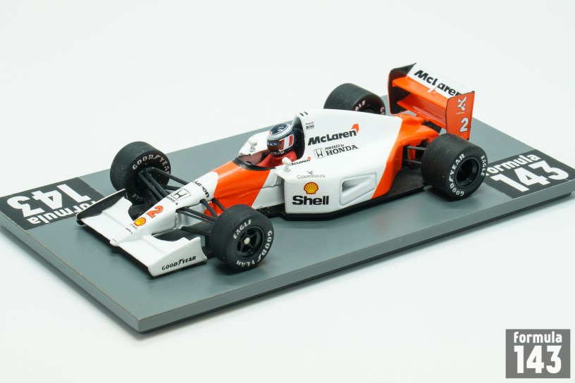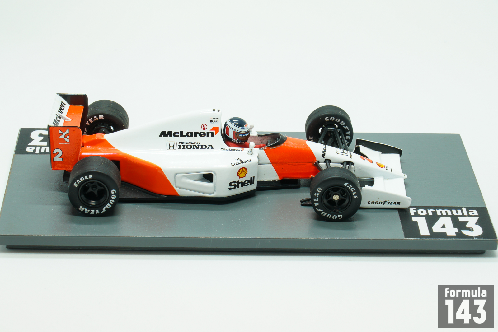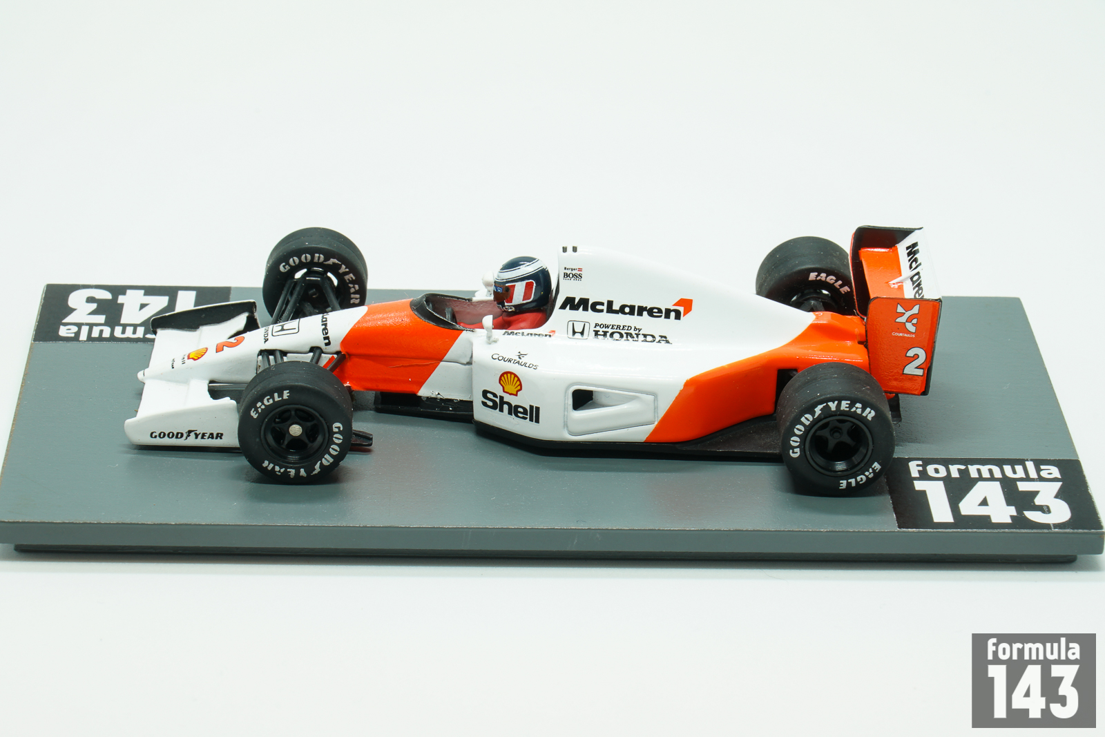 The MP4/7 from 1992 was the last McLaren powered by Honda engine after very successful partnership lasted 5 seasons and resulted in 44 wins and 4 Driver’s Championship and Constructors Championship titles in a row. Honda will return to McLaren many years later, in 2015, but the alliance will not be able to compare with past achievements. The MP4/7 was mainly based on the 1991 winning design featuring carbon fibre monocoque chassis and Honda RA122E V12 engine. The very new feature was the introduction of semi-automatic transmission, developed with the help of the team’s technology partner Techniques d’Avant Garde (TAG). However the Williams-Renault combination proved to be more reliable and faster in 1992 season, leaving McLaren to fight with Ferrari and Benetton for the “best of the rest” title. Ayrton Senna won 3 races (at Monaco, Hungary and Italy) that season and was 4th in the Championship, while Gerhard Berger, who moved to Ferrari after the end of the season, won Canadian and Australian Grand Prix and was placed 5th in the final standing just 1 point behind Senna.