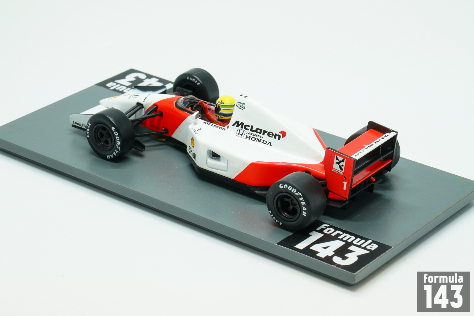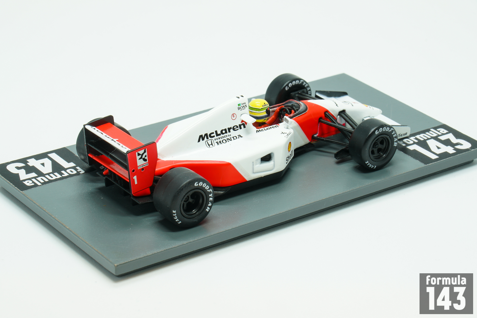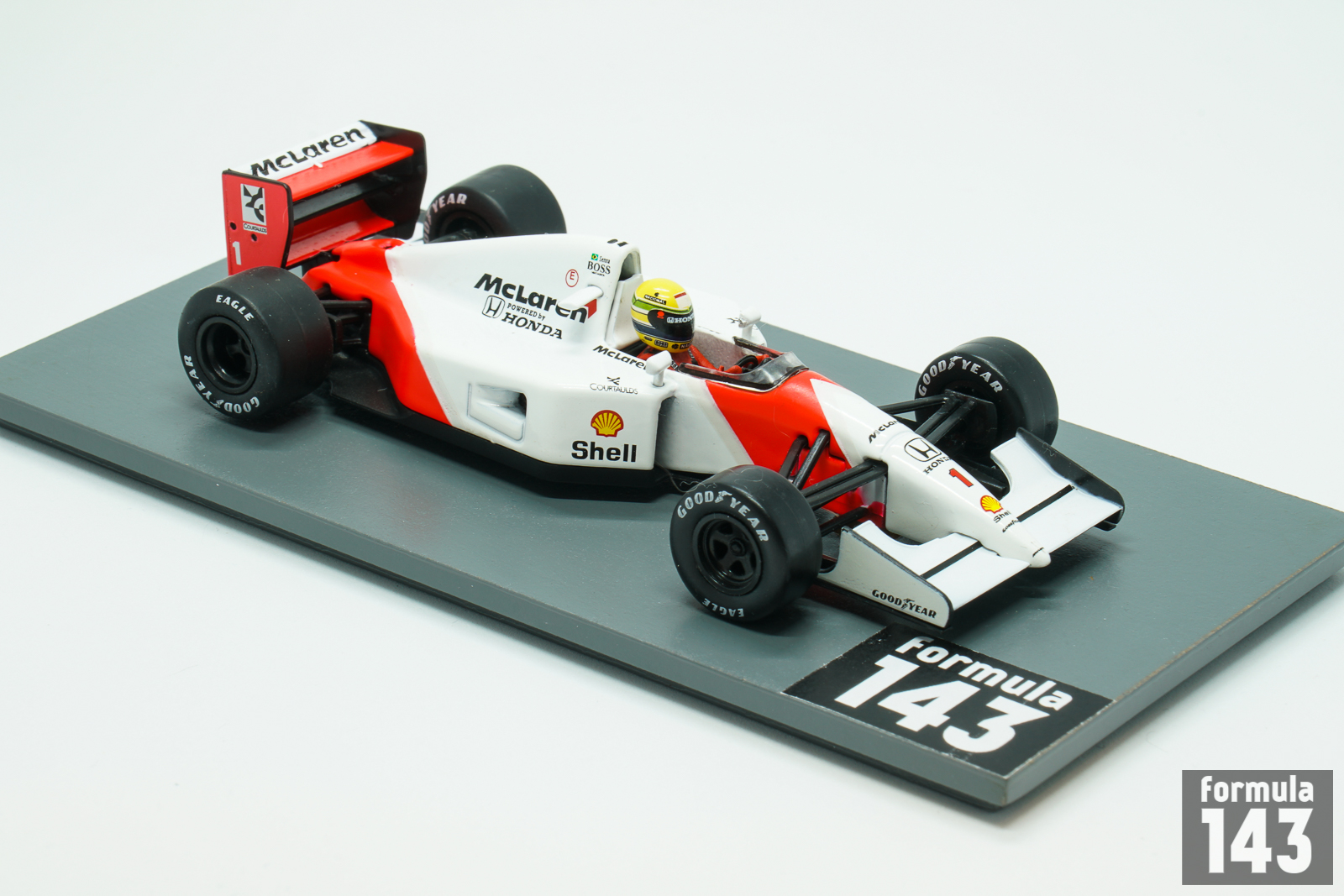 The MP4/7 from 1992 was the last McLaren powered by Honda engine after very successful partnership lasted 5 seasons and resulted in 44 wins and 4 Driver’s Championship and Constructors Championship titles in a row. Honda will return to McLaren many years later, in 2015, but the alliance will not be able to compare with past achievements. The MP4/7 was mainly based on the 1991 winning design featuring carbon fibre monocoque chassis and Honda RA122E V12 engine. The very new feature was the introduction of semi-automatic transmission, developed with the help of the team’s technology partner Techniques d’Avant Garde (TAG). However the Williams-Renault combination proved to be more reliable and faster in 1992 season, leaving McLaren to fight with Ferrari and Benetton for the “best of the rest” title. Ayrton Senna won 3 races that season (at Monaco, Hungary and Italy) and was 4th in the Championship, while Gerhard Berger, who moved to Ferrari after the end of the season, won Canadian and Australian Grand Prix and was placed 5th in the final standing just 1 point behind Senna. This scale model from the “Brazilian Legends” Collection represents Senna’s car from the German Grand Prix where Ayrton finished 2nd behind Nigel Mansell’s Williams.
