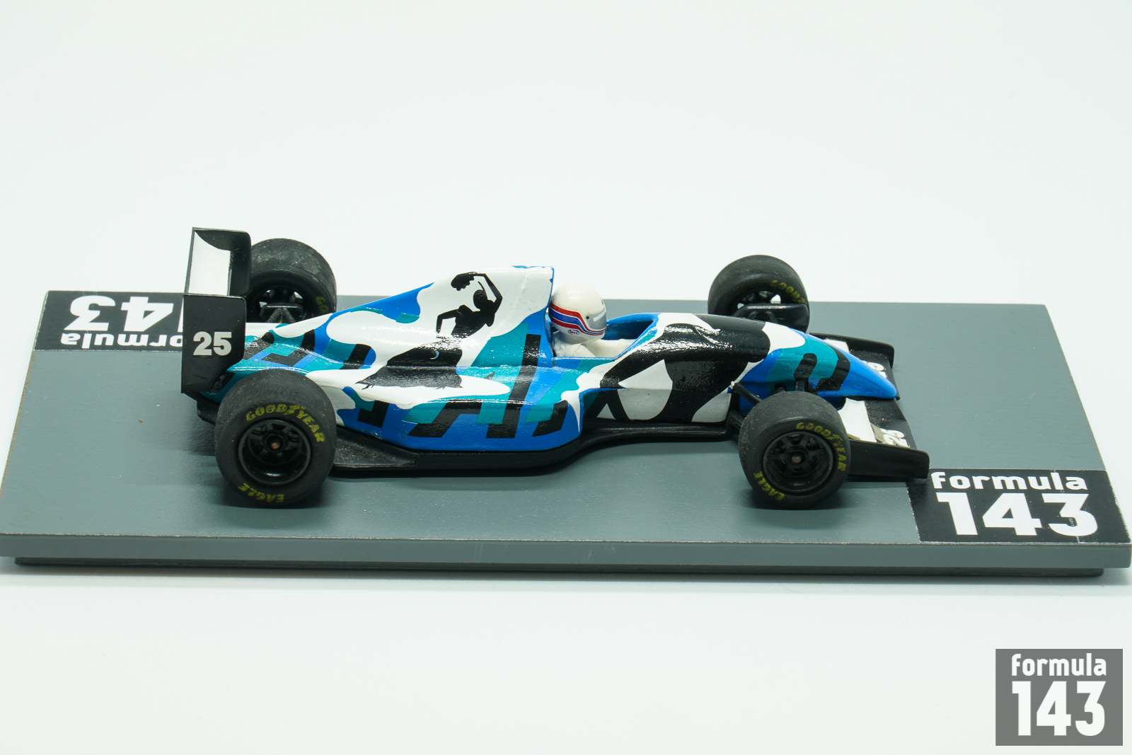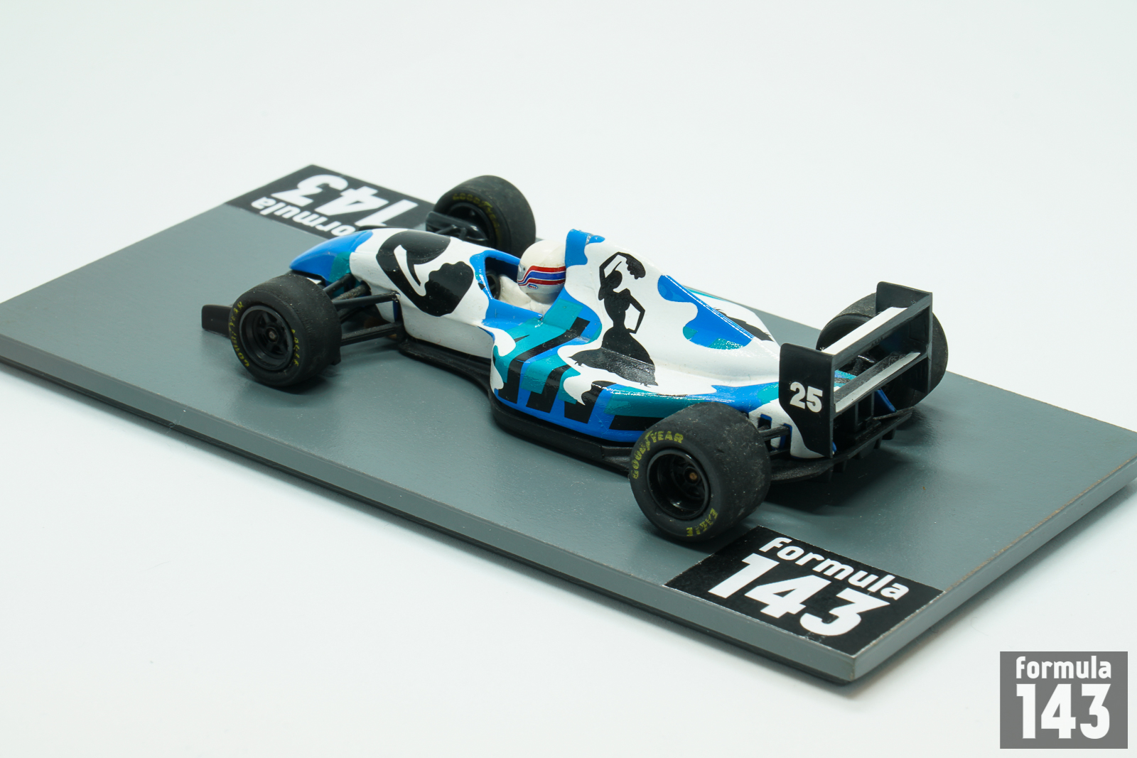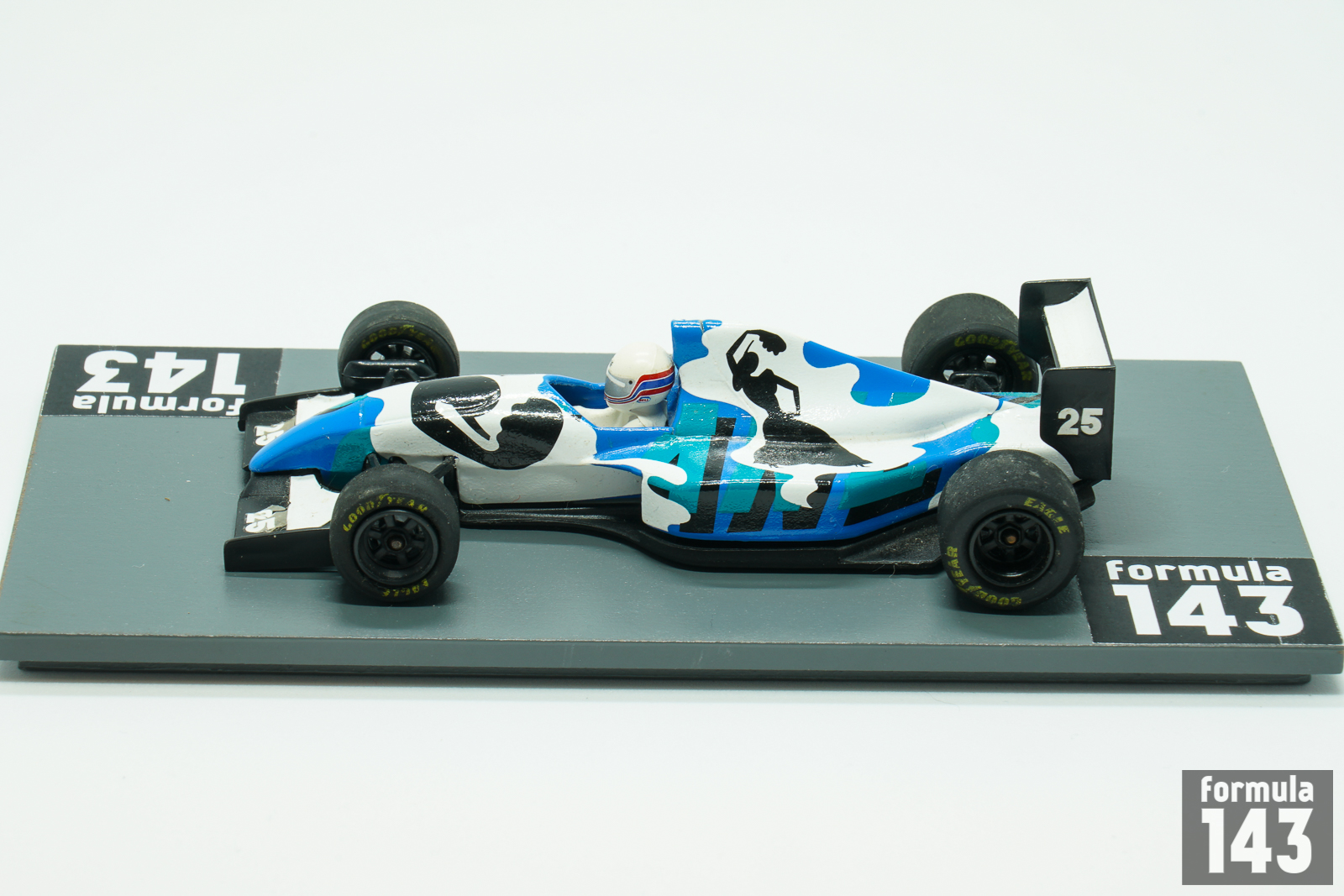 The JS39, designed by Gerard Ducarouge, Paul Crooks and Loic Bigois and driven by Martin Brundle and Mark Blundell, performed quite well. The car fitted with the Renault RS53.5 V10 engine was regular top-6 finisher. Three 3rd place finishes achieved by Brundle in San Marino and by Blundell in South Africa and Germany, together with other good results allowed Ligier to occupy 5th place in the World Constructors’ Championship. Brundle and Blundell were placed 7th and 10th in the Drivers’ standings. The long-term major sponsor of the team, Gitanes cigarettes, continued to support the French team for 20 years providing its well recognizable blue and white livery. For the last two races in 1993, the logo on the sidepod disappeared – at least for one car. That doesn’t mean Gitanes were gone from the livery, though. In fact, they were more present than ever. Italian comics author Hugo Pratt was tasked by the French tobacco manufacturer SEITA – parent company of Gitanes – to create a special livery for Martin Brundle’s #25 car. As with the regular season livery, the car was predominantly blue. All other sponsor logos expect Gitanes were gone. The name of the main sponsor was written in huge letters along the entire chassis. It was partly overlaid by an oversized version of Gitanes’ logo’s white billows of smoke, both on the engine cover and on the rear part of the nose cone. This way, the wording was almost unrecognizable and so was the smoke – making the mix of blue and white appear more like a cow pattern. On top of the smoke sat Gitanes’ trademark silhouette of a woman playing the tambourine.