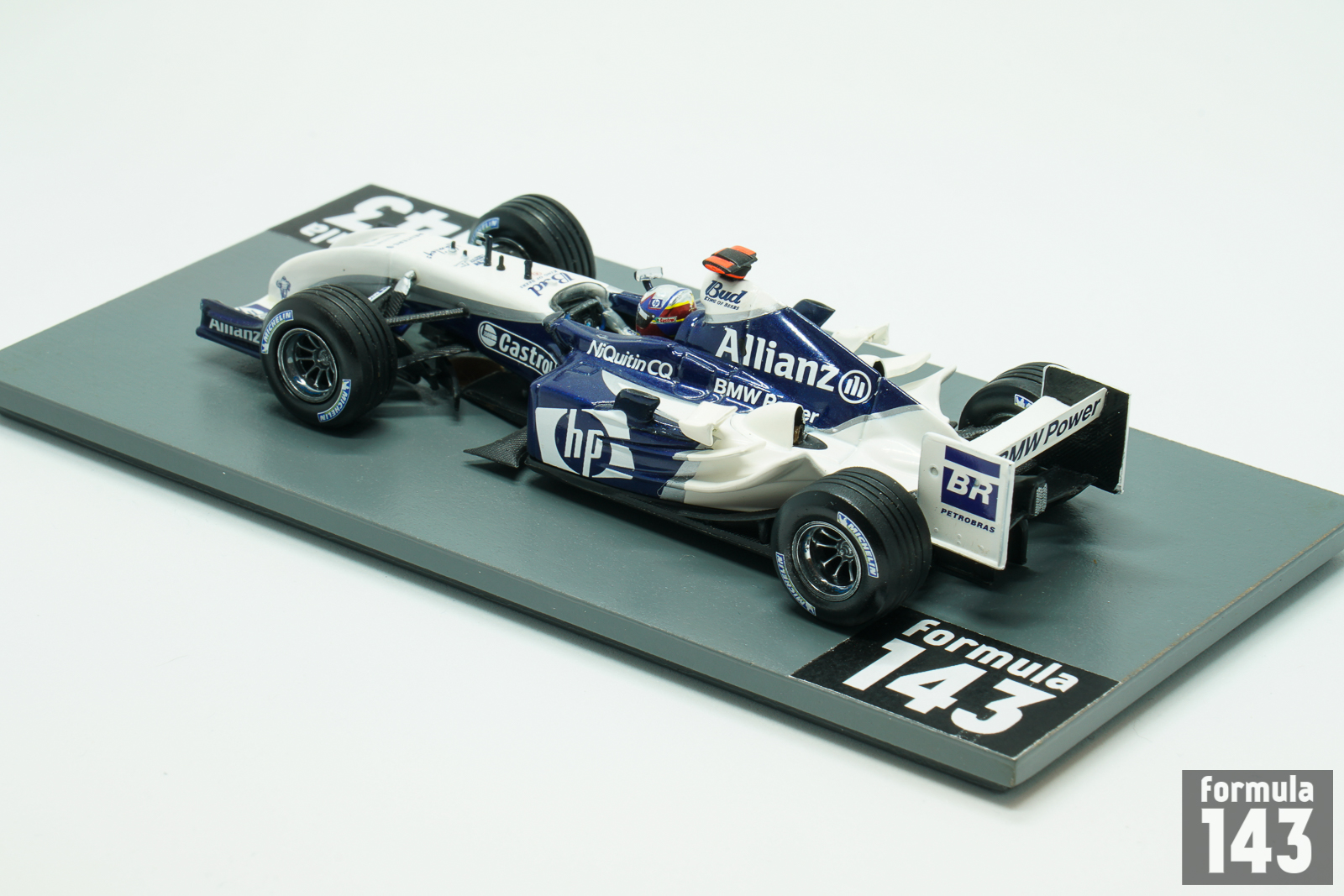 The BMW-powered FW26 for the 2004 season was designed by Patrick Head, Gavin Fisher and Antonia Terzi. The most distinctive feature of the FW26 was short, stubby nosecone connected to the front wing by sloping vertical spars which allowed more airflow to the underside of the car. The radical nose designed by Gavin Fisher was finally replaced with a more conventional one for the final stages of the season. The car driven by Ralf Schumacher and Juan Pablo Montoya was reliable but not the fastest in the peloton. However Montoya was able to take a single Williams victory that season winning the final round of the Championship in Brazil.