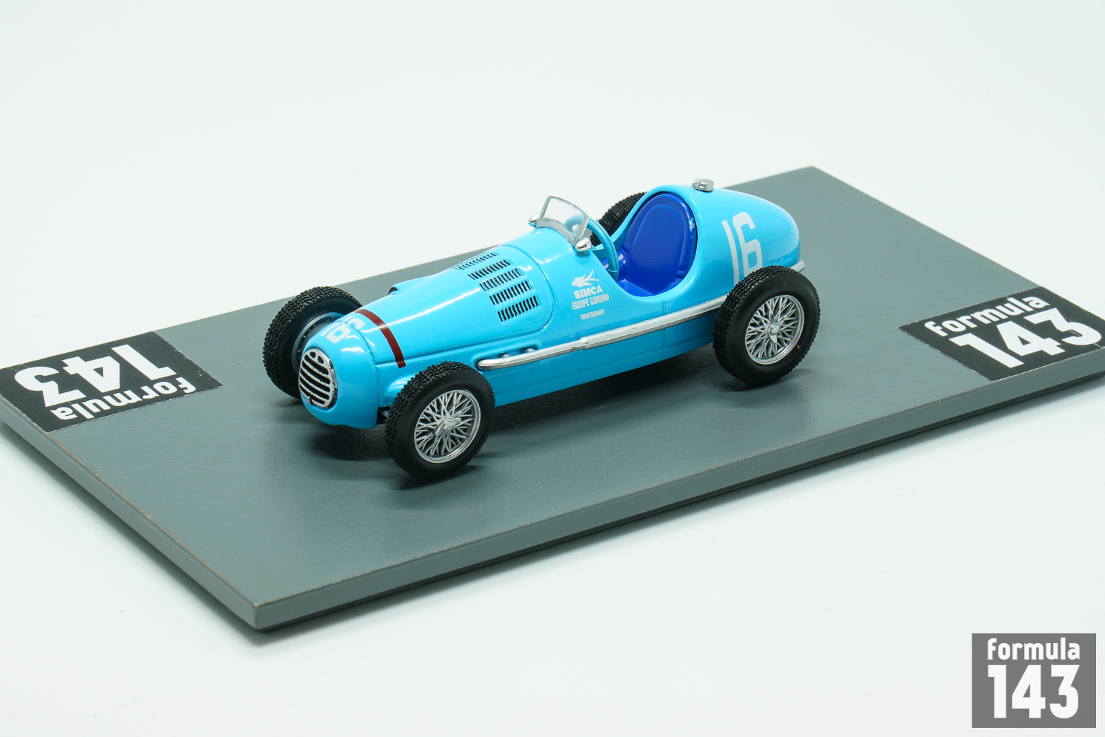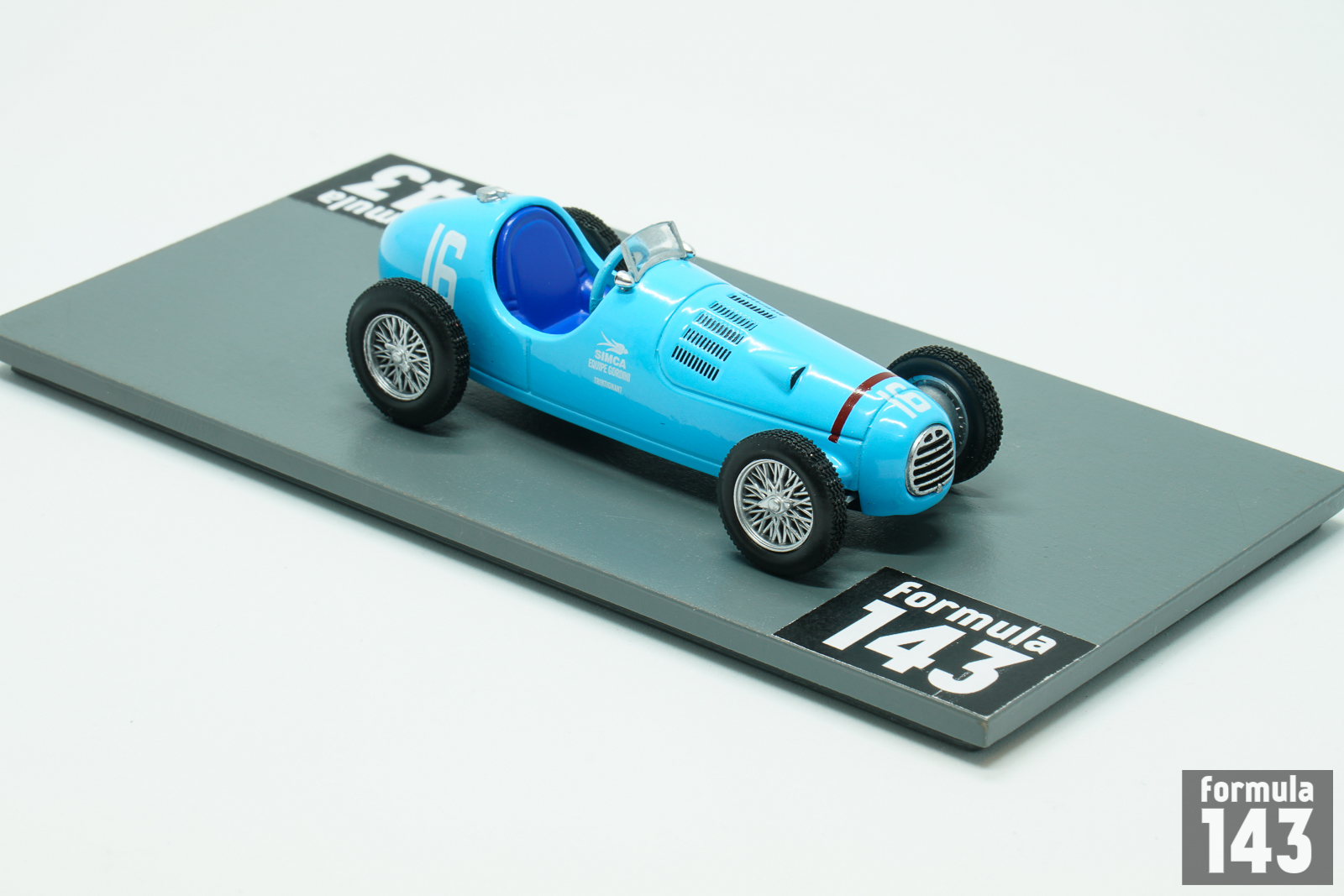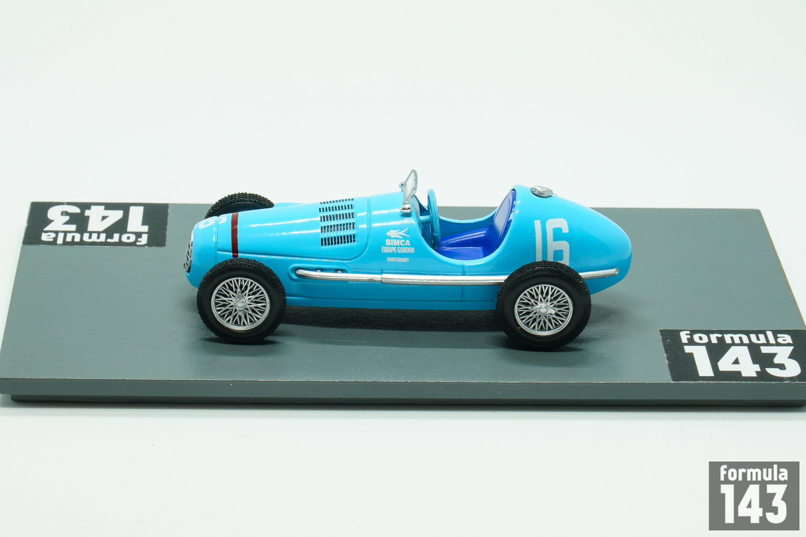 Amedee Gordini, Italian-born racing driver and manufacturer, after World War II was hired by French Simca company to develop single-seater racing car for new Formula B (later Formula 2). In 1947 Gordini built special racing monoposto powered by small-displacement 1100 cc 4-cylinder pushrod engine. The car was christened Simca Gordini T11. In 1948 engine was upgraded to 1460 cc to T15 specification. T15 featured four-speed manual gearbox, independent front suspension with wishbones and coil springs in the front with a rigid rear axle setup with longitudinal torsion bars. Its inaugural race was at 1948 Sweden Grand Prix in Stockholm where Prince Bira drove T15 to victory. This particular model represents Maurice Trintignant’s car from 1949 Pau Grand Prix. The race was won by Fangio on Maserati 4CLT/48 while Trintignant finished 5th. Later Simca Gordini T15 (also known as Gordini T15) raced in many Grand Prix of World Driver’s Championship until 1953 driven by such legendary drivers as Robert Manzon, Johnny Claes, Paul Frere, Andre Simon and others. The model is from in La Saga Gordini Collection published by Atlas. It was the reissue of the model appeared earlier in Les Belles Annees Simca Collection by Altaya.