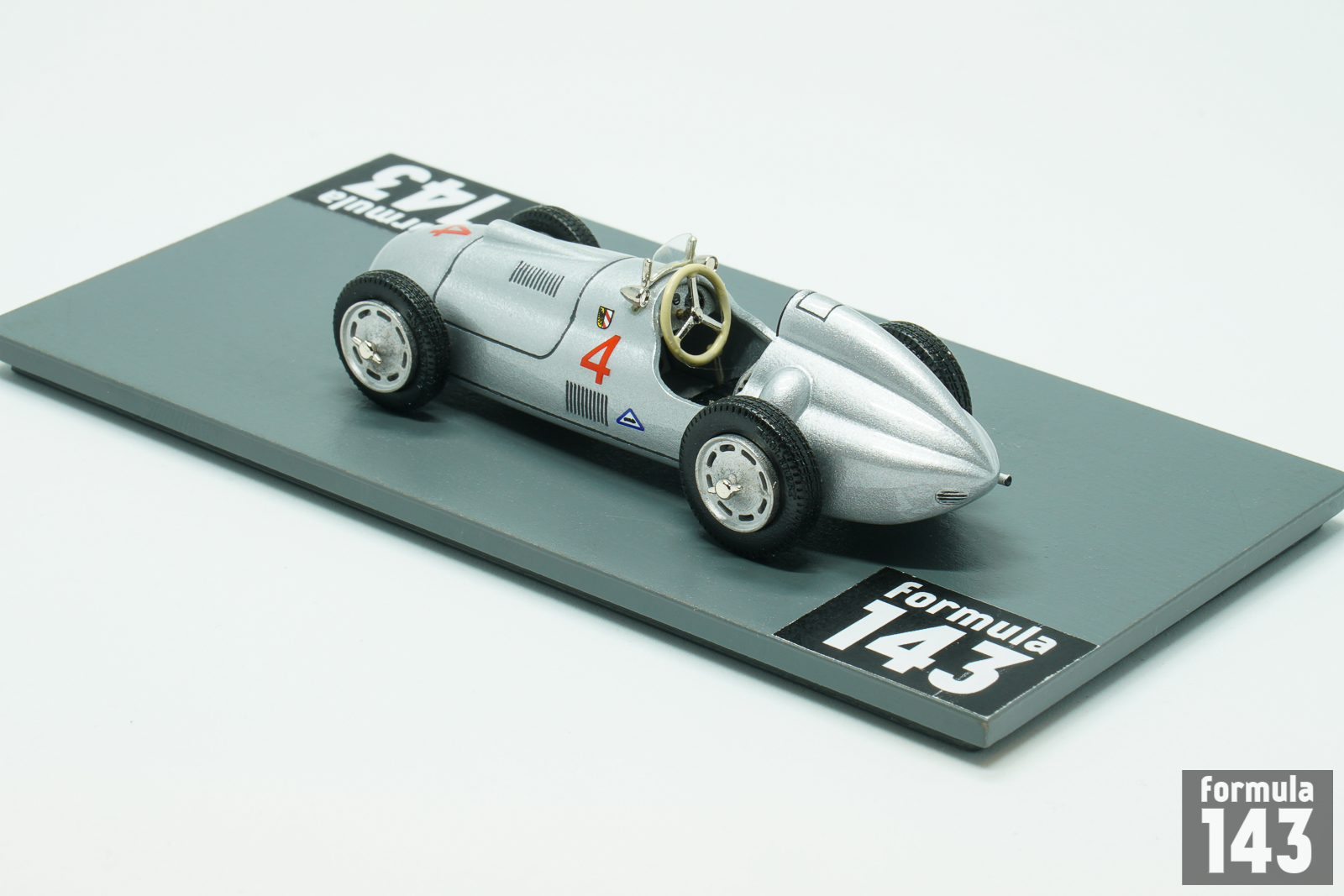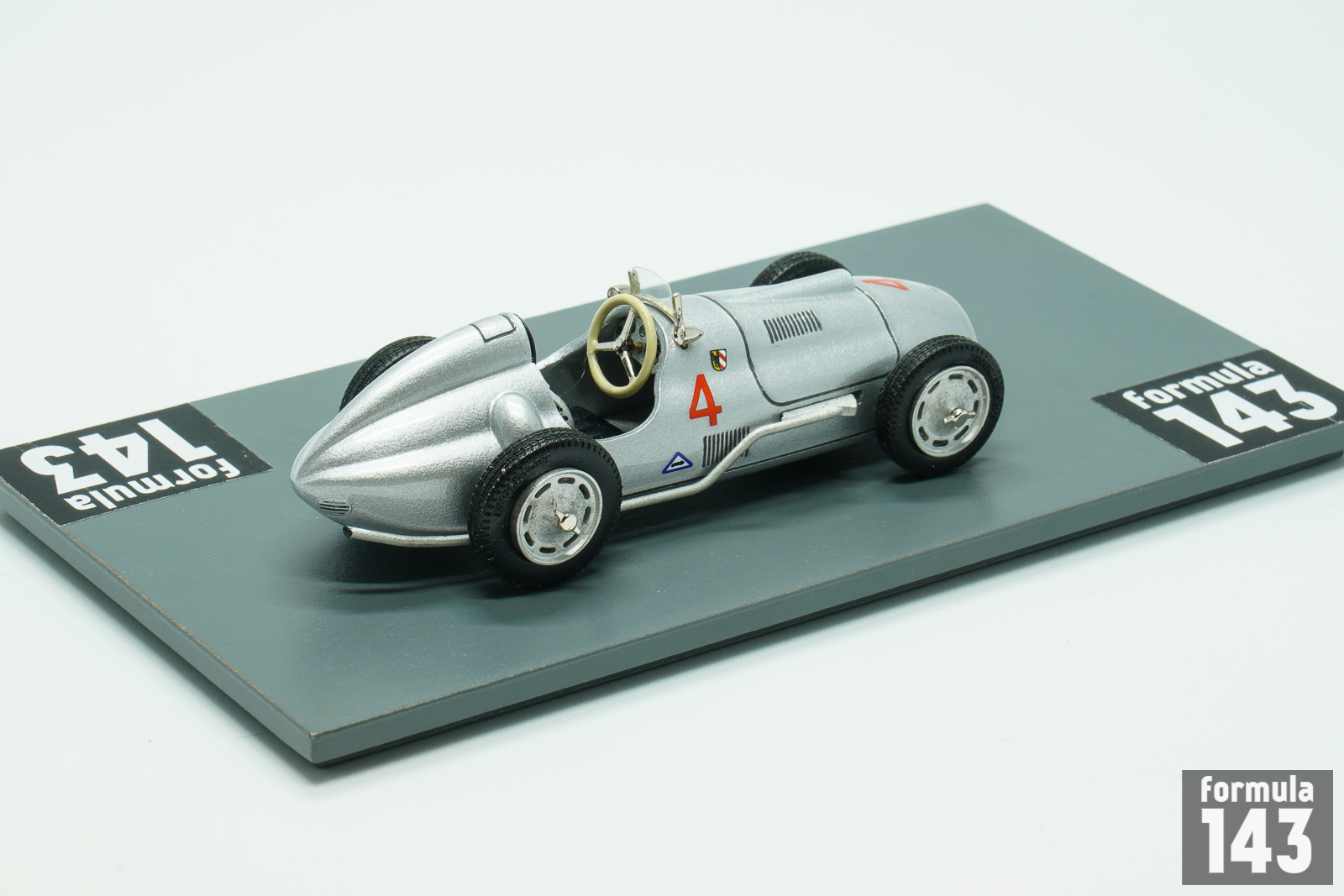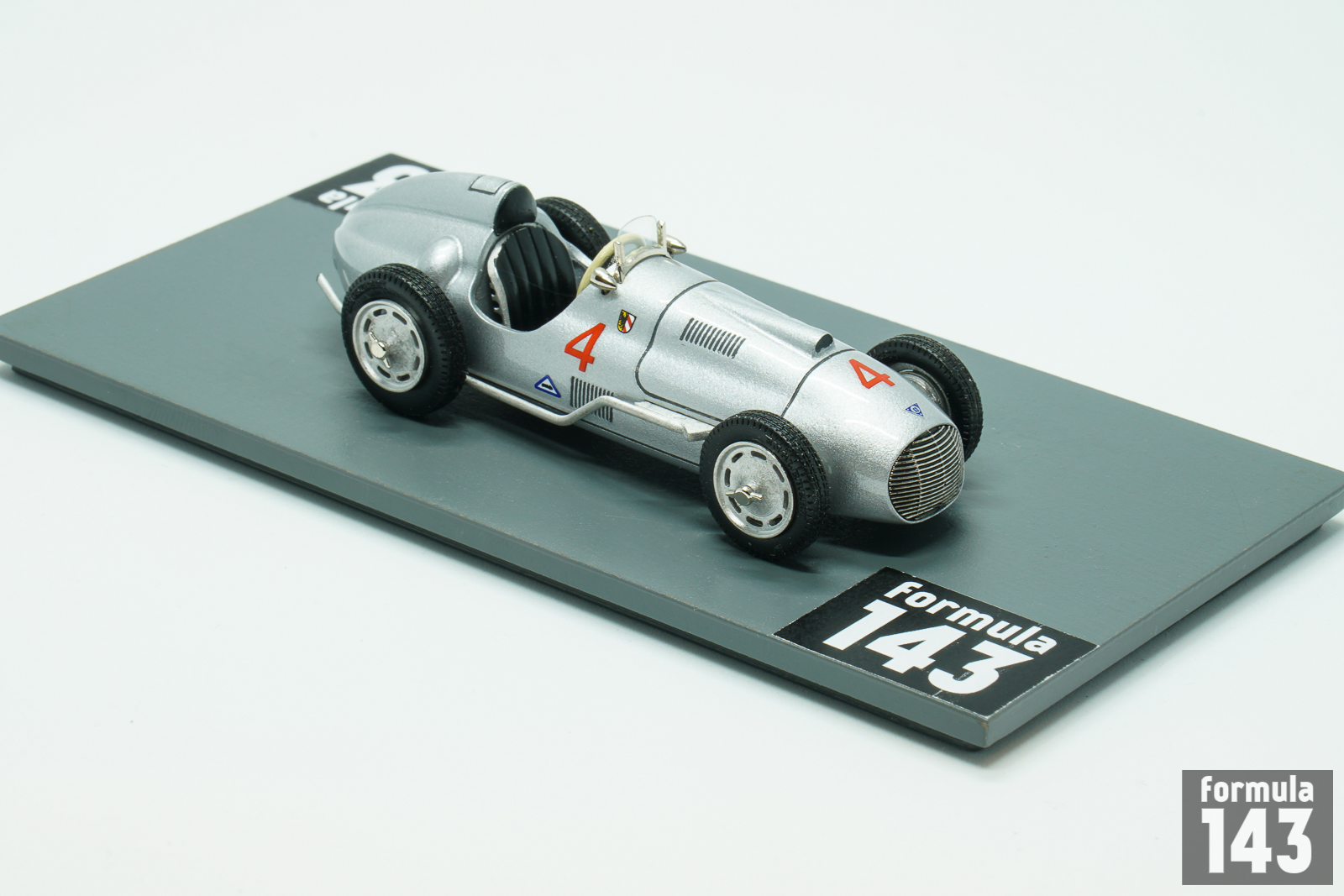 Alex von Falkenhausen Motorenbau (AFM) was founded by former BMW 328 designer in Munich after the World War II. Falkenhausen started with 328 tuning and conversions to single-seaters, and in 1949 first his own car, Formula 2 AFM powered by BMW 328 engine, appeared. In 1950 the car was upgraded and raced by pre-war stars Hans Stuck, Manfred von Brauchitsch, as well as by some younger German drivers. The model relates to the car driven by Fritz Riess in Prix de Berne, Formula 2 race preceded the Swiss Grand Prix. The race was won by Raymond Sommer in Ferrari 166, while Riess finished 7th.