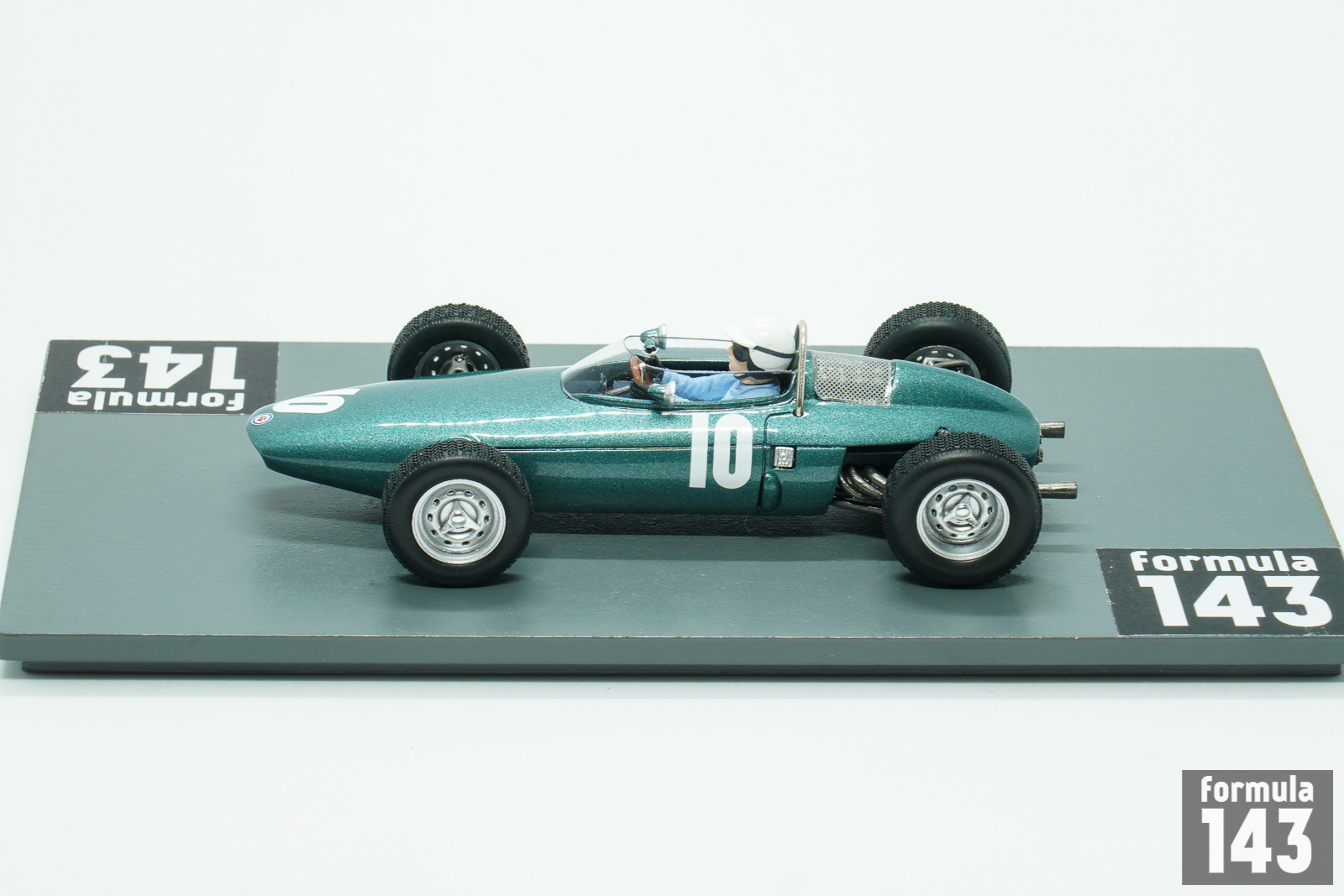 The P57 was used in two first seasons of 1.5-liter Formula 1. Designed by Tony Rudd, P57 in 1961 (referred as P48/57) was powered by custom Coventry-Climax Straight 4 engine while own BRM 1.5-lirtre motor was still in development. For 1962 new BRM V8 producing 190 horsepower was ready, while tubular spaceframe and suspension remained unchanged. The new car proved to be very competitive. Owen Racing Organization drivers for 1961 were Gram Hill and Richie Ginther. Hill started the season with the victory in Monaco, and continued at the high note winning three more rounds (in Germany, Italy and South Africa) and secured his first Driver’s title, as well as the Constructor’s Championship for BRM. Richie Ginther was not able to win, but scored two podiums – in French and Italian Grand Prix and was 8th in the championship.