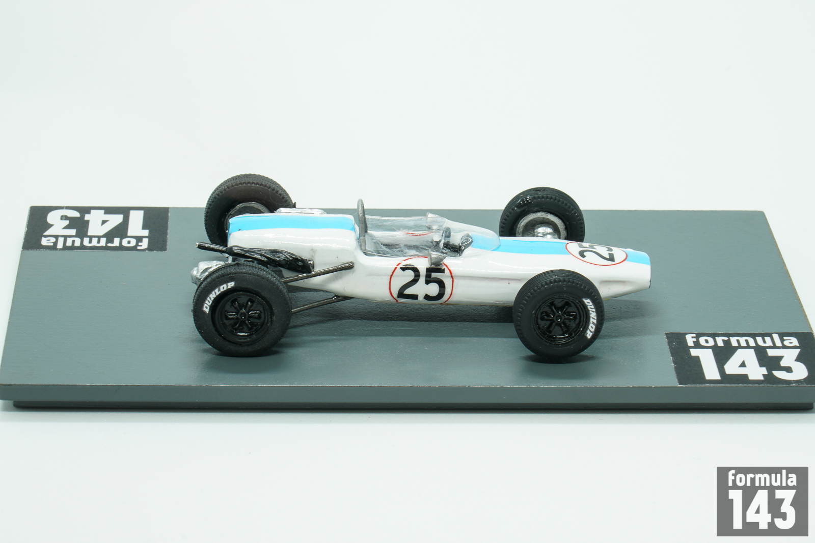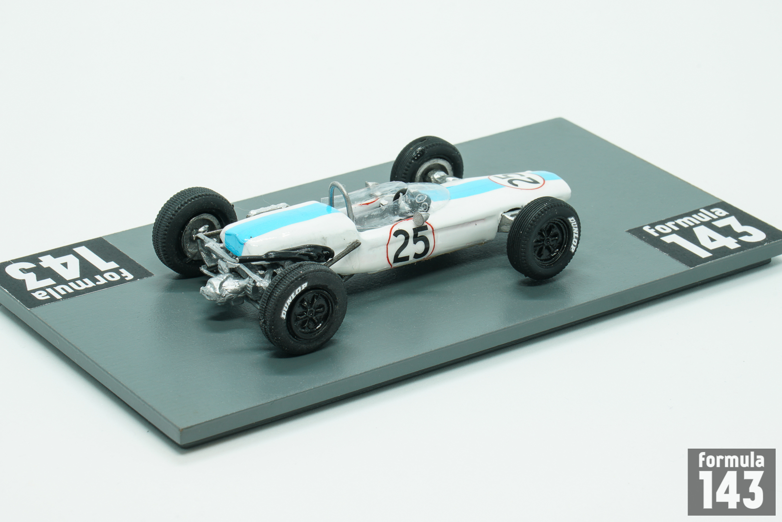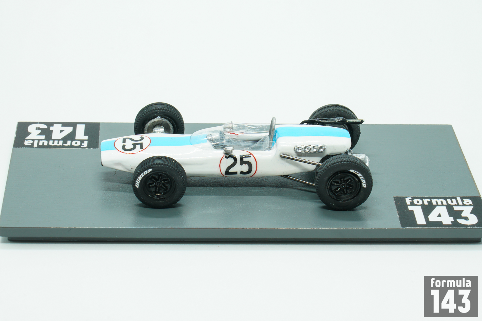 Cooper T59 was designed as a Formula Junior car for 1962 season. Similar in layout to the T56, the T59 was a little bit narrower and lower than its predecessor. One of the Cooper clients was Anglo-American Equipe team owned by Louise Bryden-Browne. The team decided to modify FJ Cooper to enter Formula 1 scene. The task was entrusted to Hugh Aiden-Jones, chief mechanic of the team. The car, sometimes referred as Aiden-Cooper featured 1.5-litre Coventry Climax FPF engine and Cooper 5-speed gearbox. Anglo-American Aiden-Cooper was driven by Ian Burgess, who started several non-Championship races, as well as 3 Grand Prix (British, German, and Italian) in 1962. Three years later, in 1965, the Aiden-Cooper powered by Ford 109E 1.5 L4 engine was entered by South African Trevor Blokdyk in his home Grand Prix, but failed to qualify for the race.