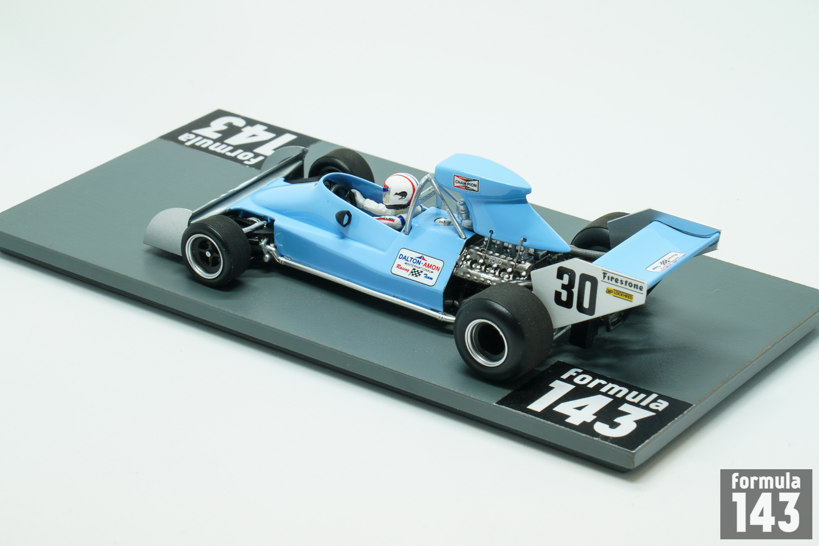 Amon AF1 was the only car produced by Chris Amon Racing, team founded by New Zeeland driver. The AF101 (also referred as AF1) designation deriving from A for Amon and F for Gordon Fowell, team co-founder. The car was a typical F1 design, developed by Fowell and Tom Boyce, featuring alumimium monococque and Ford-Coswotrth DFV engine. The unusual feature of the AF1 was that the fuel tank was located between the driver’s cockpit and the engine. The car driven by Amon himself debuted at the Spanish Grand Prix where Chris qualified 23rd but retired due to disc brakes problems. Then the car appeared at Monaco Grand Prix, but after qualifying 23rd Amon was unable to start the race because of mechanical problems. The scale model by Spark represents Amon AF1 from this race. Then after a couple of DNQ by Amon and his Australian fellow driver Larry Perkins the Amon F1 project was closed.