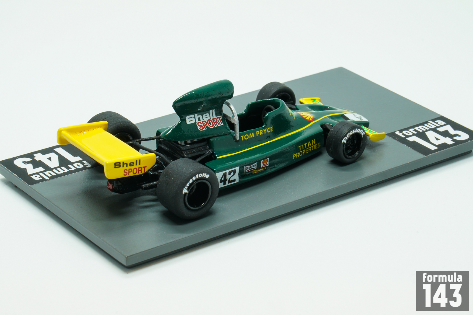 The Token Racing was based on Ron Dennis and Neil Trundle Rondel Racing, a successful Formula Two team sponsored by Tony Vlassopulos and his friend Ken Grob. In 1973 they decided to enter F1. Ray Jessop designed the car, while backing was to come from the French oil company Motul, which had sponsored the team for the previous two years in addition to Vlassopulos and Grob. The team and car was named Token, the “To” and the “Ken” coming from the backer’s first names and the RJ02 in honour of Jessop. The team made its F1 debut in April 1974 at the non-Championship International Trophy race at Silverstone, with Welshman Tom Pryce at the wheel. Its first Championship race came the following month, at the Belgian Grand Prix, where Pryce qualified 20th but retired at three-quarter distance following a collision with Jody Scheckter’s Tyrrell. David Purlay and Ian Ashley drove the car in 3 other GP of the season, but the team run out of money and was closed. The car was sold to Safir Engineering company and reappeared as Safir in few non-championship races in 1975.