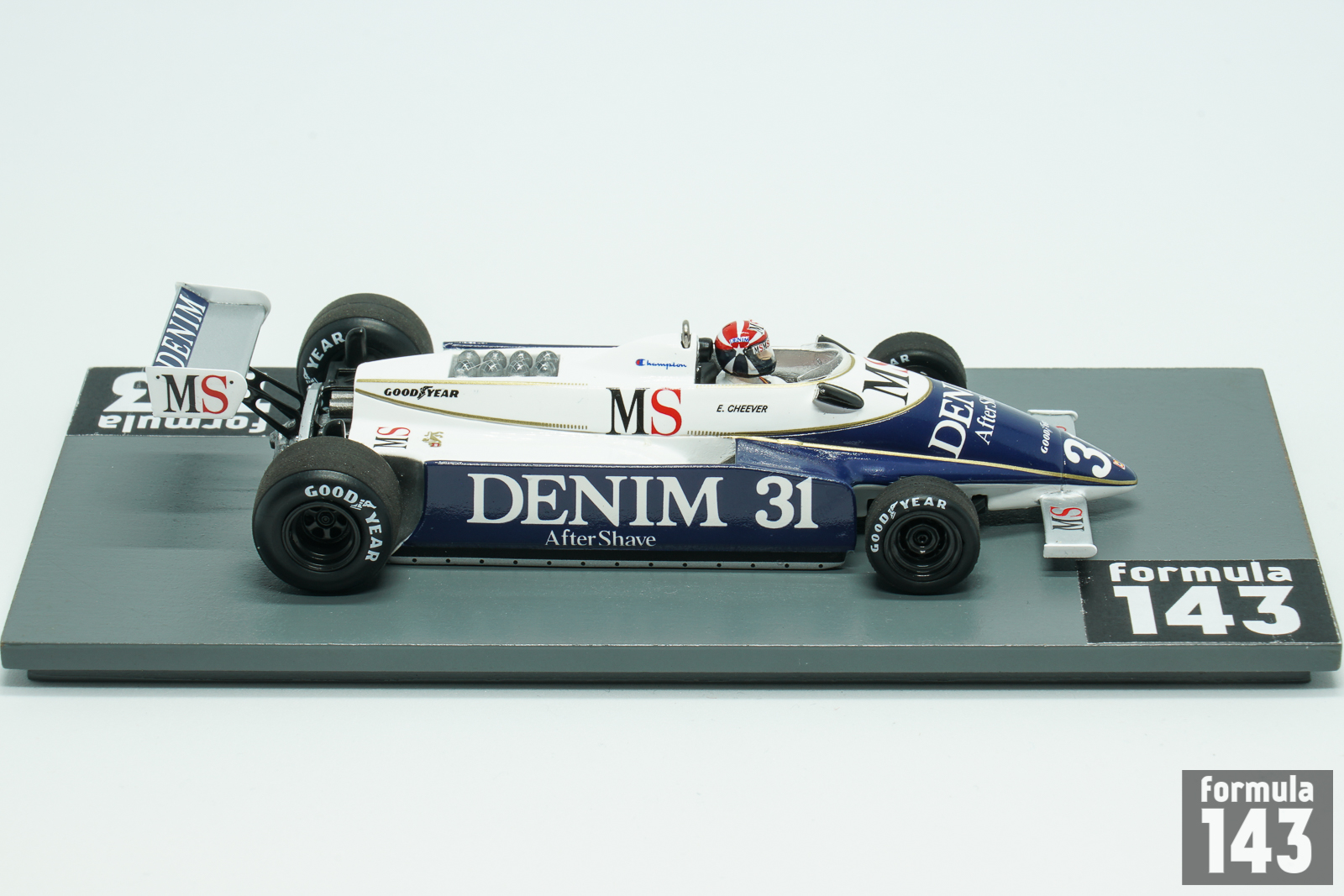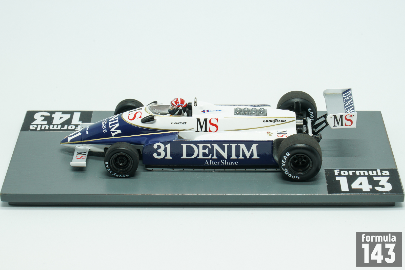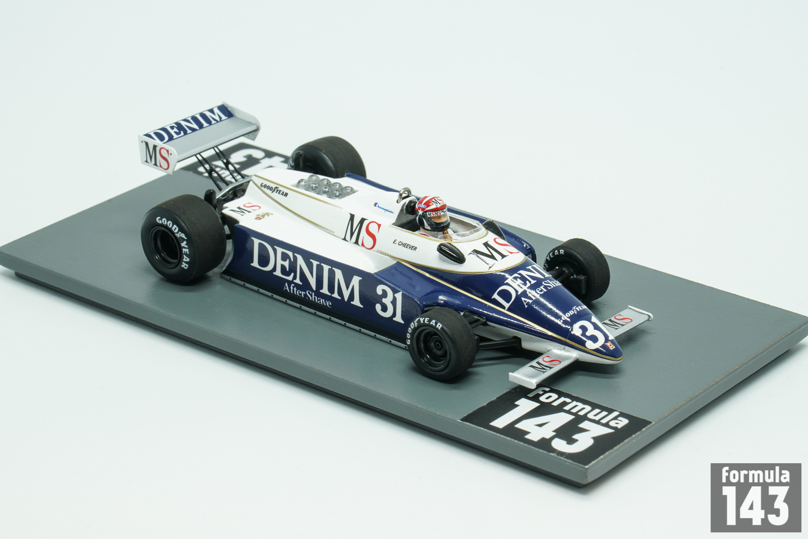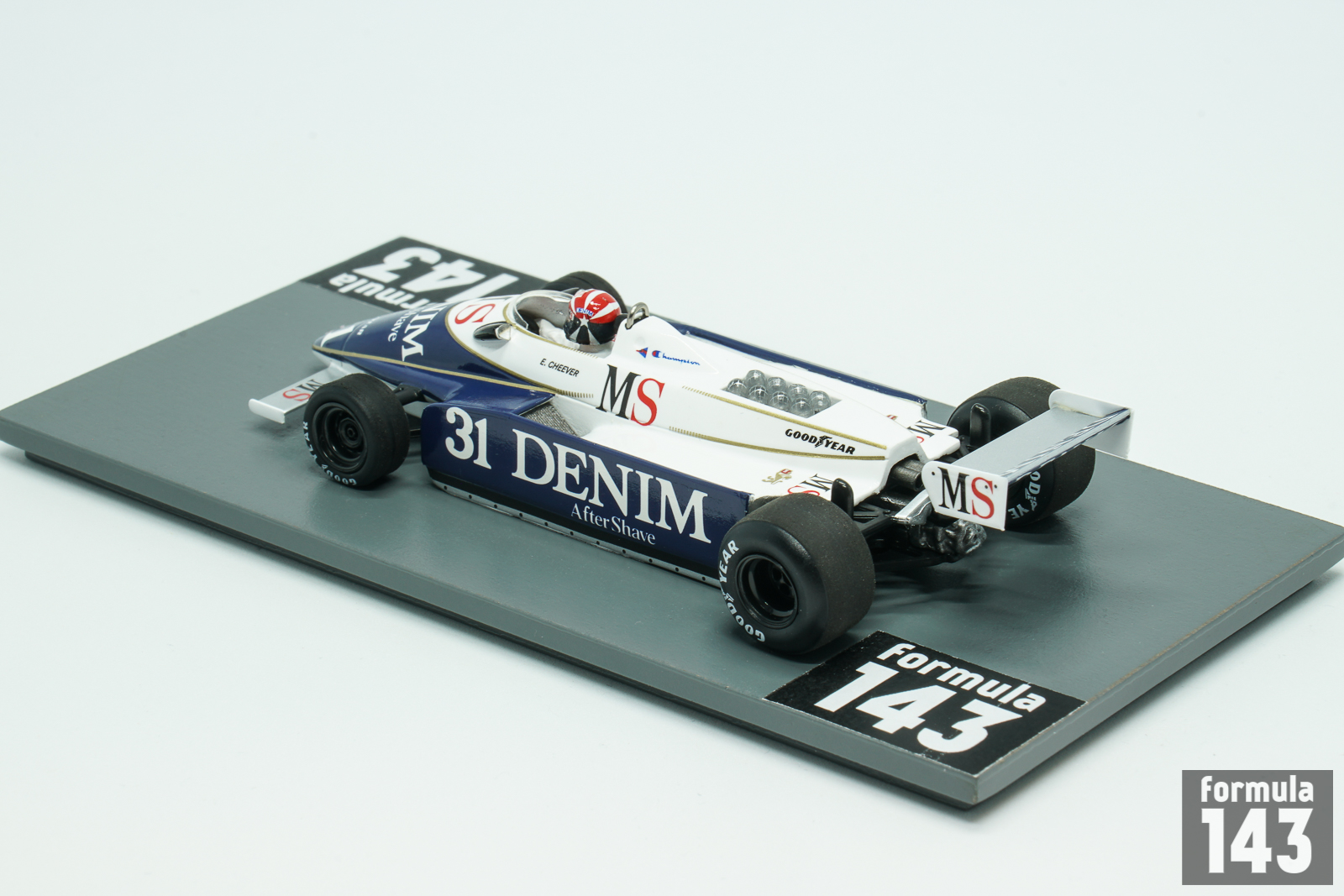 The tacing team by Enzo Osella debuted in Formula 1 1980 with theFA1 car designed by Giorgio Stirano. Beautiful blue and white car with sponsors logos of Denim After Shave and MS cigarettes was driven by Eddie Cheever. After long series of DNQ and retirements in Cheever achieved the only finish for FA1 for the entire season at the Italian Grand Prix, driving his car to 12th position.