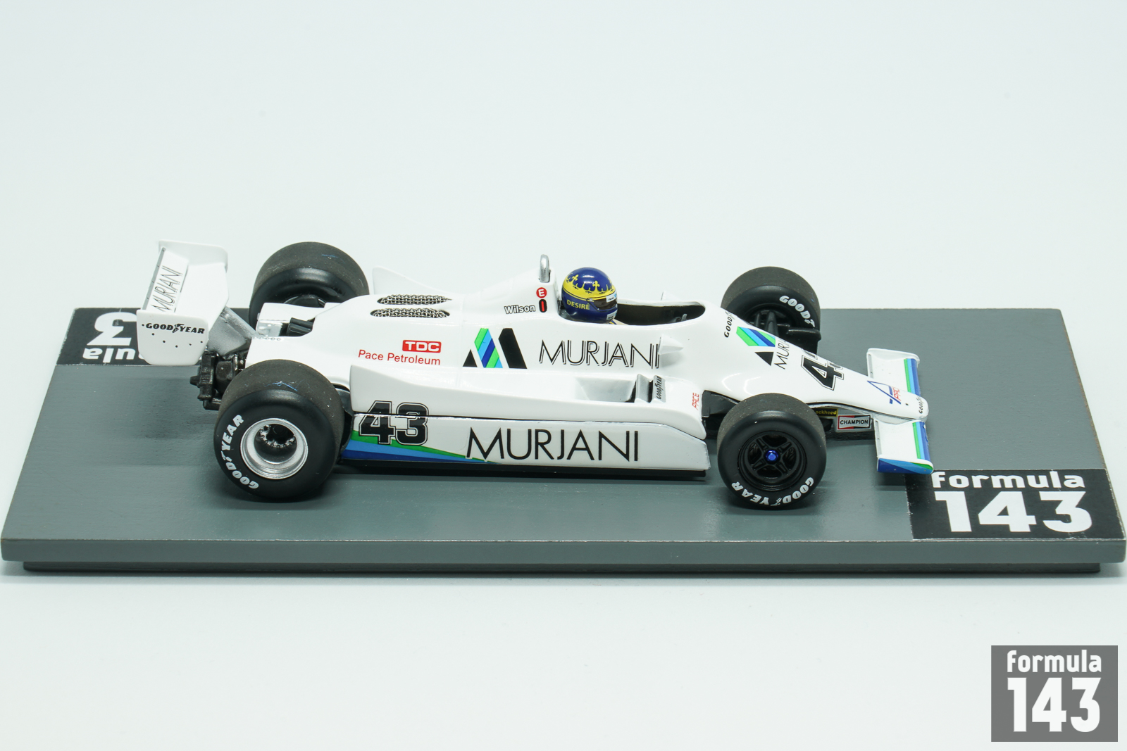 The FW07 in the 07B specification brought 1980 drivers’ (with Alan Jones) and constructors’ titles to Williams team. Meanwhile the car in its original variant presented in 1979 (FW07) was also available for RAM and Brands Hatch Racing private teams. Brands Hatch racing entered Desire Wilson for the 1980 British Grand Prix. Wilson, born in South Africa, in 1978-80 drove in Aurora AFX British F1 Championship. In 1980 she won Evening News Trophy at Brands Hatch, became the first and so far the only woman to win an F1 race. Her success in British F1 drew the attention of John McDonald from RAM racing F1 team. He entered Wilson for the British GP under the banner of Brands Hatch Racing team. Desire failed to qualify for the race. Next year she took part in South African GP which was downgraded as non-championship event due to FISA – FOCA controversy.