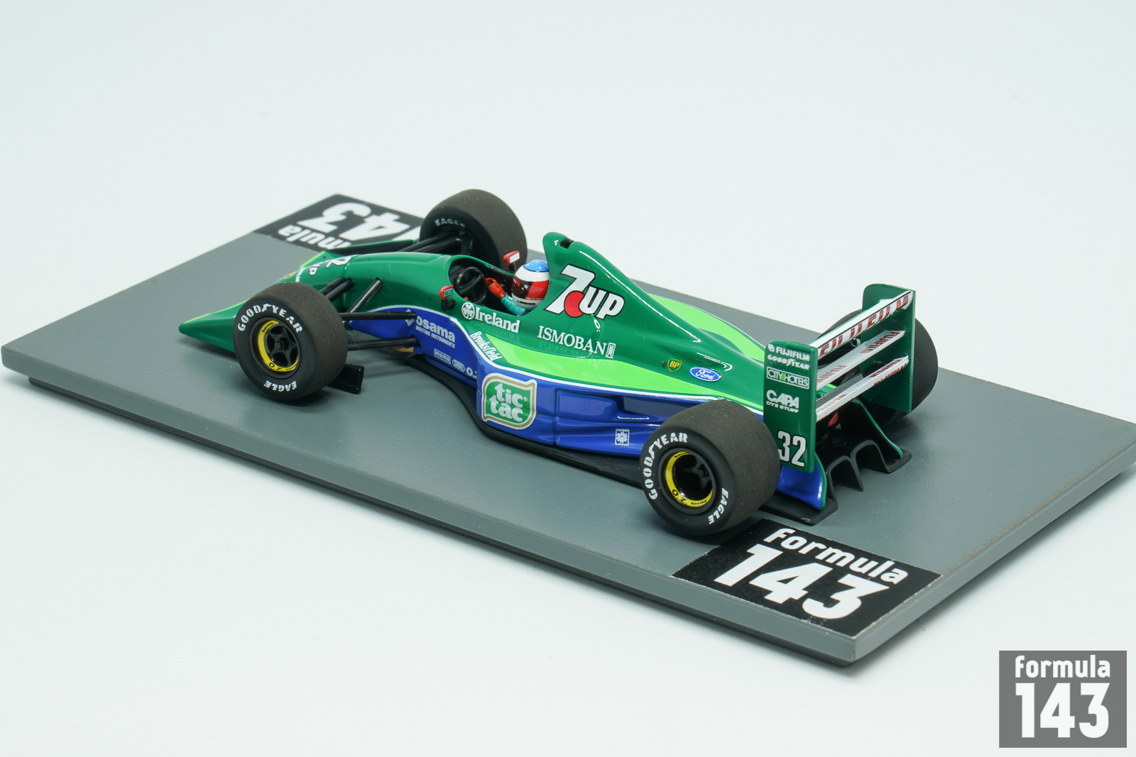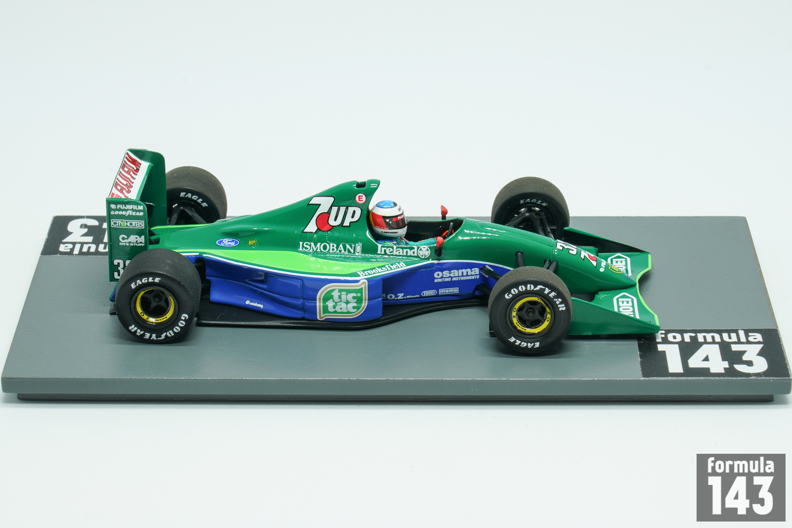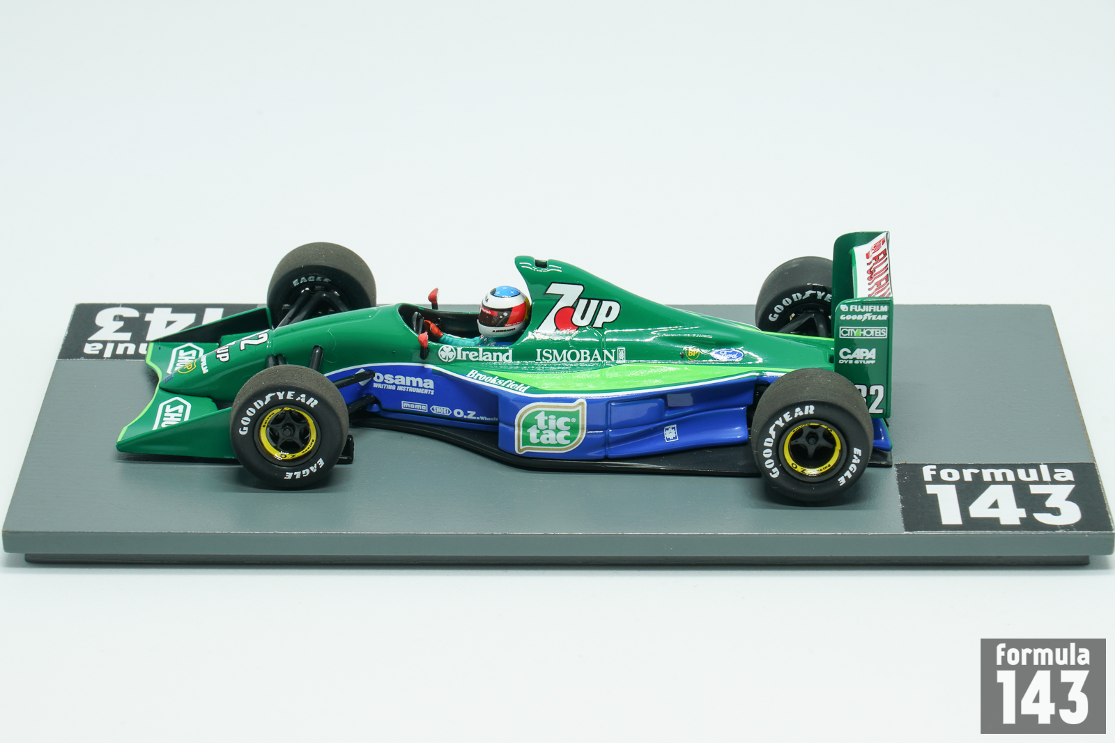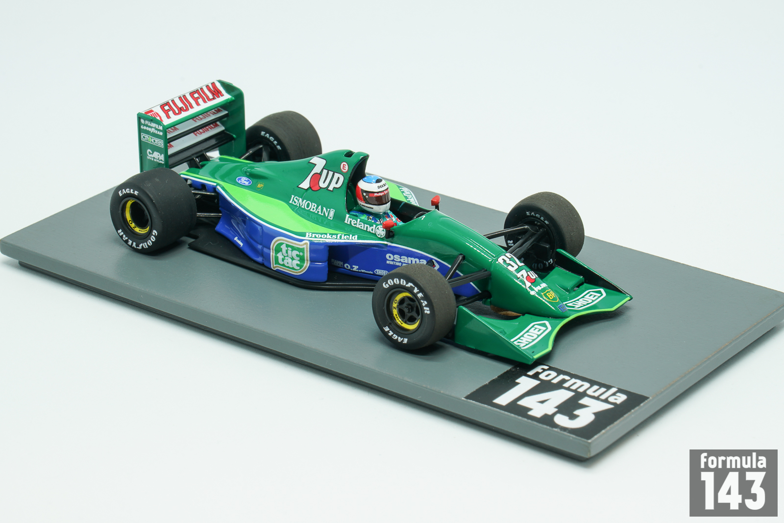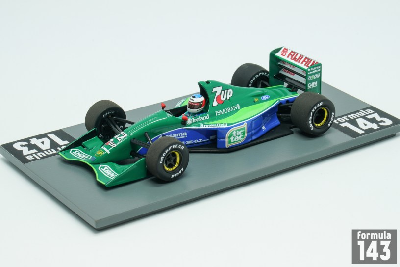 1991 was the debut season for Jordan Grand Prix. Team’s first cat, the 191, was designed by Gary Anderson and was powered by Ford HBA3 3.5-litre V8 engine. Anderson, who had previously worked for Reynard and had designed that manufacturer’s F3000 cars, built a nice looking car with a raised nose and a drooping rear diffuser. The team’s drivers for the inaugural season were experienced Andrea de Cesaris and Belgian Bertrand Gachot. The 191 was consisted runner which allowed de Cesaris and Gachot regularly score small points. At Hungaroring Gachot even managed to set fastest race lap. After the Hungarian race, Gachot’s season was curtailed by a two-month prison sentence, for spraying CS gas at a taxi driver in London. Over the final six races, three drivers filled in for Belgian – Michael Schumacher, Roberto Moreno and Alessandro Zanardi. Schumacher at Belgian Grand Prix, his first F1 appearance and only race for Jordan, qualified a superb seventh on the grid (Jordan’s best at that time). However, the clutch failed within the first mile of the race. After his brilliant debut Schumacher was quickly engaged by Flavio Briatore and joined the Benetton team. This scale model is made by Minichamps. See also Gachot’s car by Onyx and Moreno’s by IXO from Lendas Brasileiros do Automobilismo Collection.