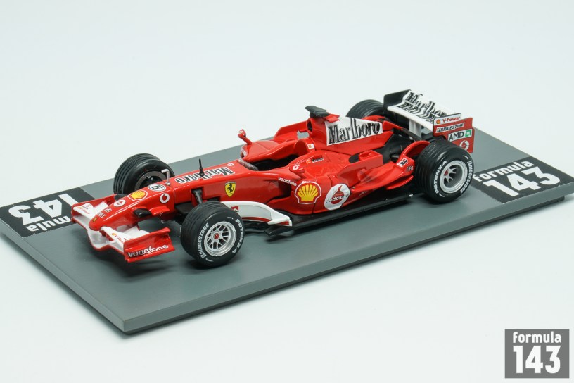The 248F1 was the Ferrari car for the 2006 Formula One Championship. The car was an update of the previous year’s F2005. The chief designer of the models was Aldo Costa with Rory Byrne acting as a consultant. Technical director of the team Ross Brawn and head of aerodynamics John Illey were also involved. The 2006 season was the last for Michael Schumacher in the Scuderia. Scoreing 7 victories and taking 2nd place in the Drivers’ championship Schumacher had retired after the end of the season. His teammate in 2006 was Brazilian Felipe Massa hired by Scuderia to replace Rubens Barichello. Massa spent 3 previous seasons in Sauber, and in 2006 he achieved his maiden win in Turkey and has added a victory at his home Brazilian Grand Prix, the last race of the season. The Brazilian was placed 3rd in he final Championship standings. This scale model by IXO is from the Spanish version of the “Formula 1. The Car Collection”. The model was not present in the original Italian “Formula 1 Auto Collection”. See also the same model from “Ferrari F1 Collection”.