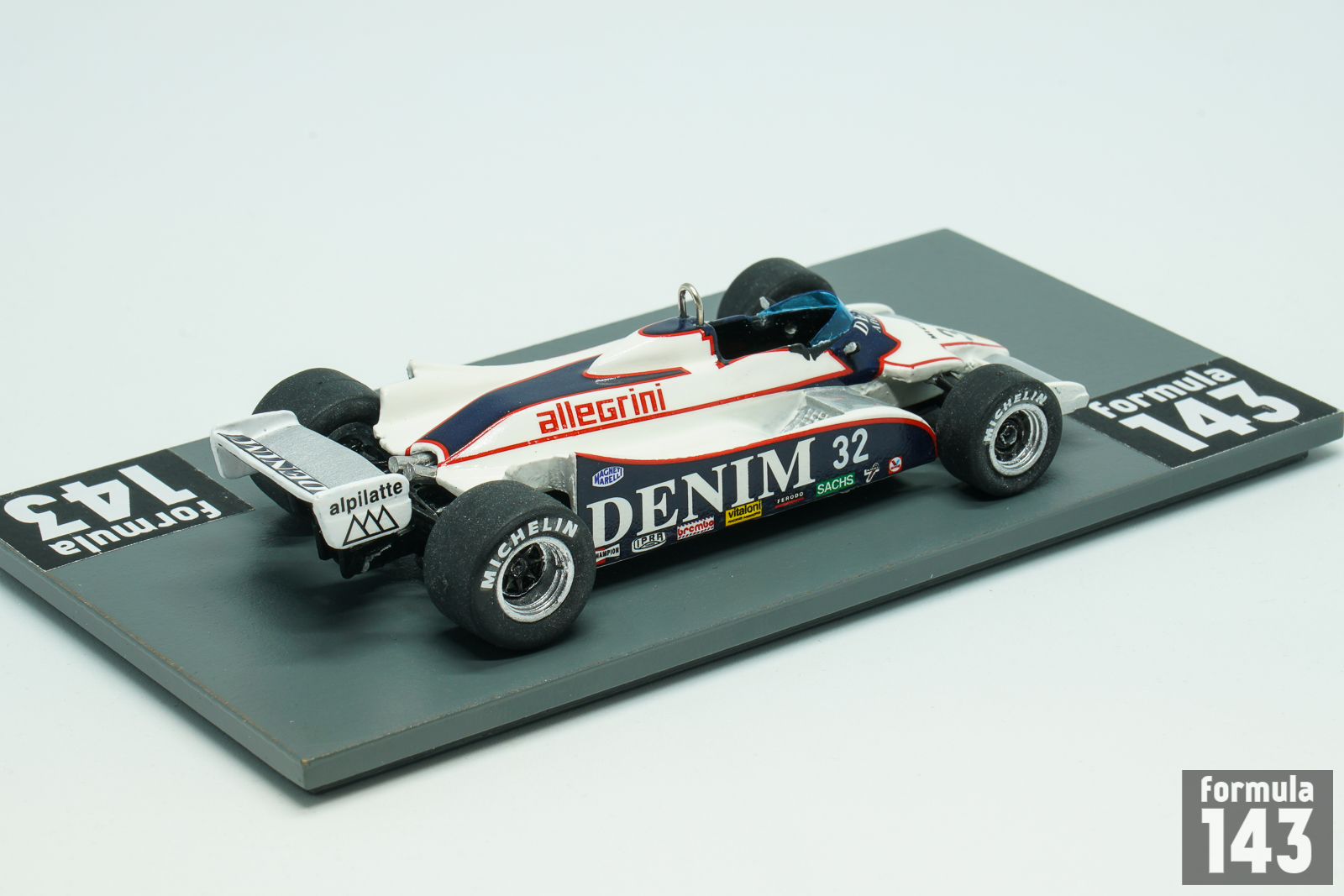 The FA1B, second Osella F1 car, was the further development of 1980’ FA1. Although the design and construction were very much the same as the original FA1, the new “interim” FA1B was both narrower and lighter. In 1981 Osella expanded to a two-car team with the wealthy Italian F2 driver Beppe Gabbiani in the lead car. The second was driven by Argentinian Miguel Ángel Guerra in first four rounds of the season, then Piercarlo Ghinzani and Giorgio Francia took the car for a couple of races, and finally arrival of experienced Jean-Pierre Jarier put some stability to the team. Denim remained as main sponsor but Monopolio Tabacchi, the Italian state-owned tobacco company, withdrew their MS funding. Jarier, who joined the team at German GP, was regular starter and more or less regular finisher, while Gabbiani mostly has been stopped by qualifying barrier. The Italian failed to qualify in 12 out of 15 races of the season, and retired in all 3 rounds when he did participate. In 1982 he went back to Formula 2 when he achieved 3 wins and 3rd place in the European Championship in 1983. In the 1990s Gabbiani raced a lot in Italian national sports car events and as well as in the International Sports Racing Series.