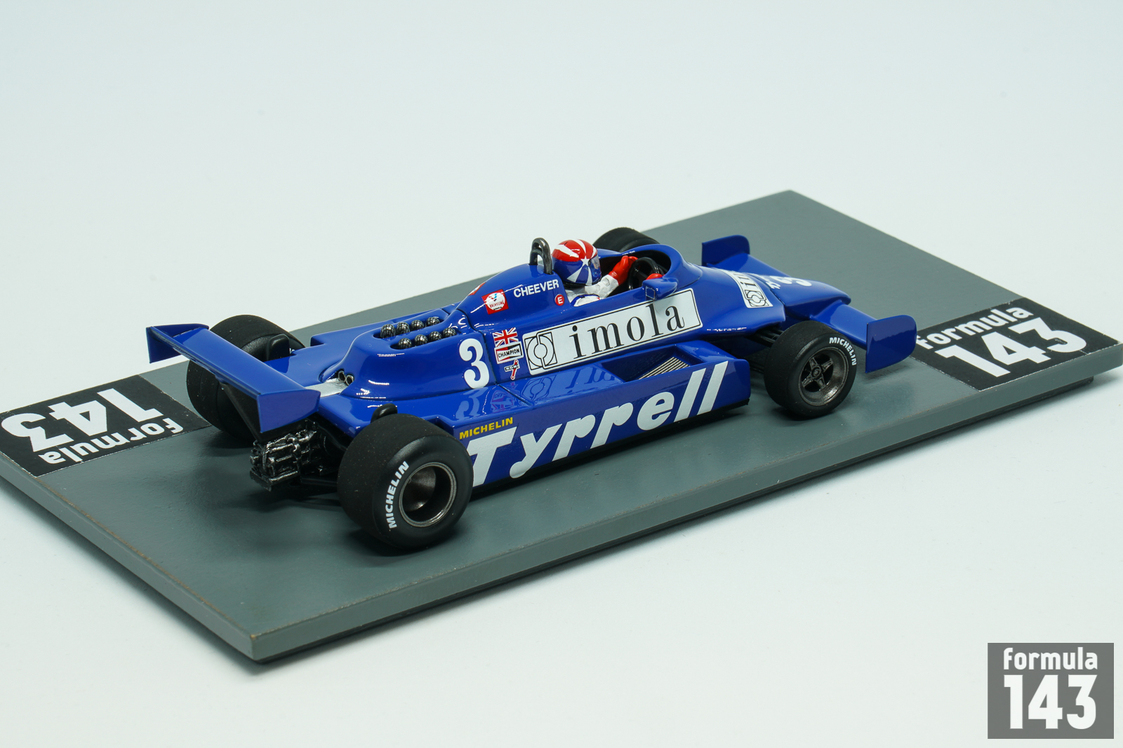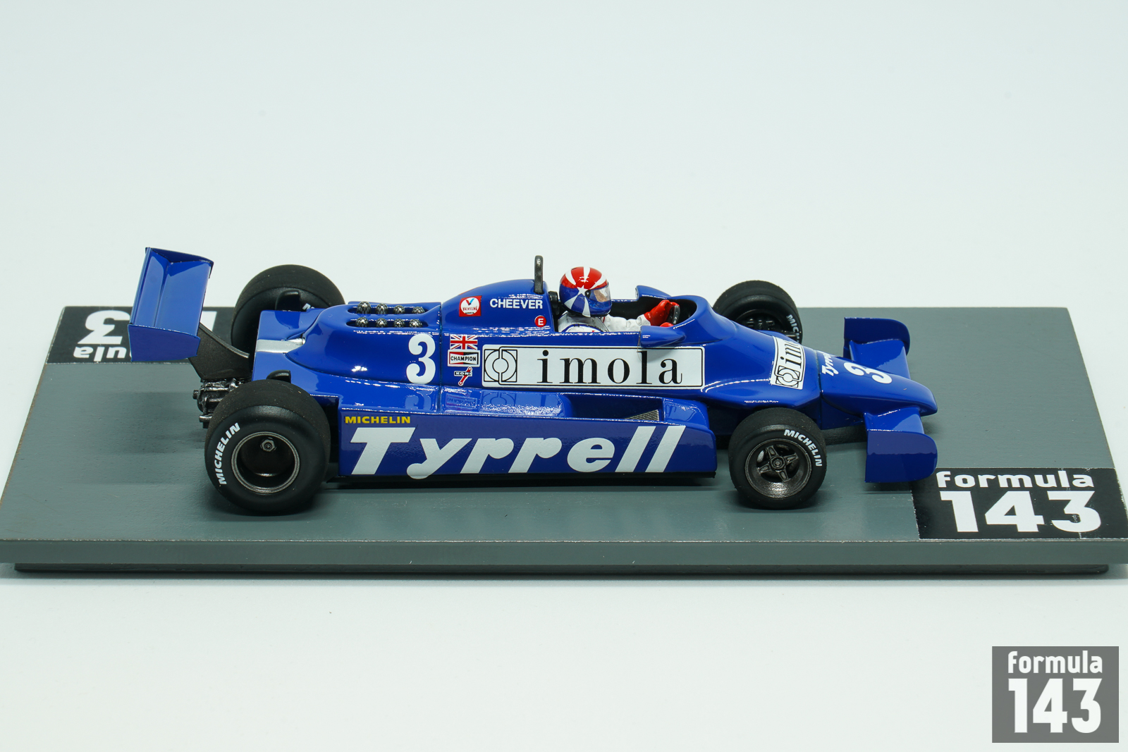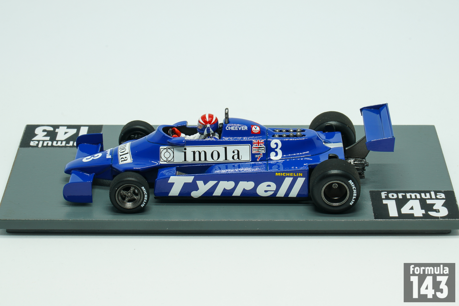 Tyrrell 010 designed by Maurice Philippe was run by team Tyrrell in 1980 and in first half of the 1981 Formula One season. The carbon fibre monococque chassis and Ford-Cosworth DFV engine were conventional car features. Team Tyrrell in 1981 was significantly underfunded through withdrawal of Candy sponsorship. The drivers’ roster was also changed – 1980 drivers Jean-Pierre Jarier and Derek Daly left, and young American Eddie Cheever was hired from Osella. Second car was driven by Kevin Cogan and Riccardo Zununo in first three races until Italian F1 debutant and European F3 champion Michele Alboreto joined the team starting from San Marino Grand Prix. Alboreto did not score points in 1981 while Cheever has gathered few points regularly. His best finish was 4th place at the British Grand Prix. The scale model represents Cheveer’s 010 from Monaco Grand Prix where American was 5th.