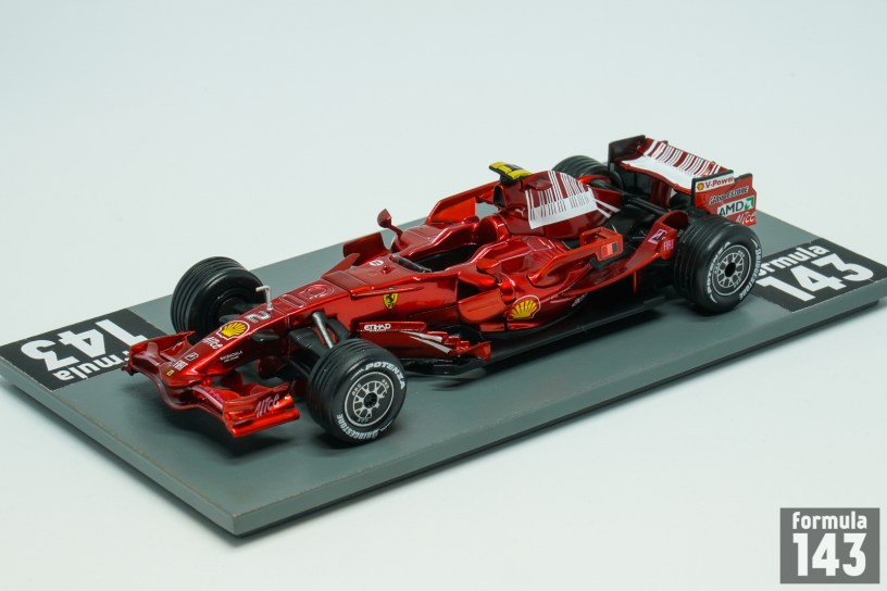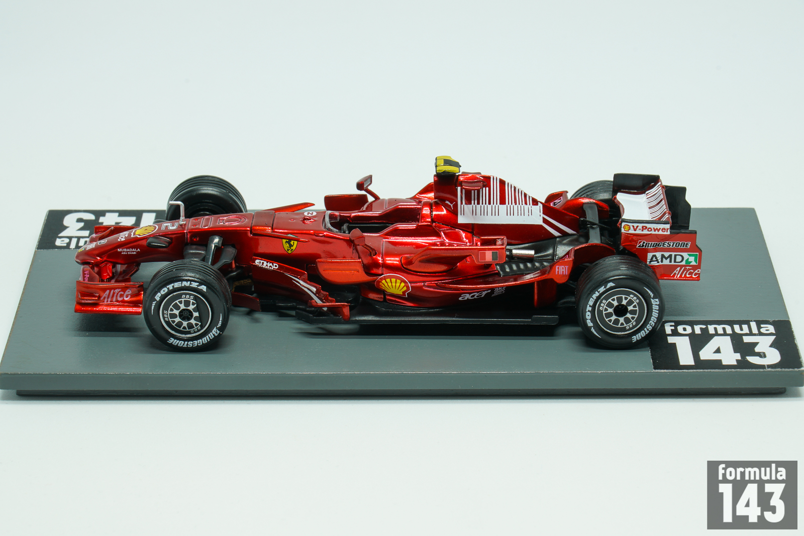 The F2008 was the car which almost won the second consecutive World Championship for Ferrari without Michael Schumacher. Felipe Massa lost the title to Lewis Hamilton in McLaren only by 1 point, while the 2007 champion Kimi Raikkonen was 3rd. The car painted in Corsa Rosso red scored 8 victories (6 by Massa and 2 by Raikkonen), 7 pole positions (6/2) and 13 fastest laps (3/10). For Massa, who will race 10 more seasons in F1, the 2008 was the pinnacle of his racing career.
