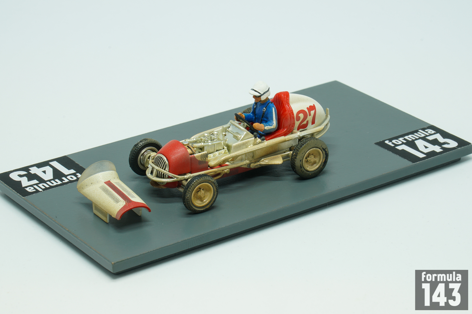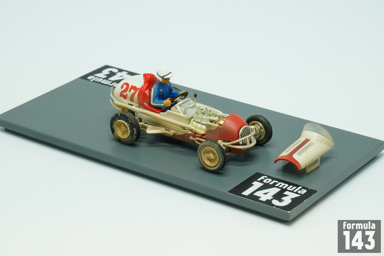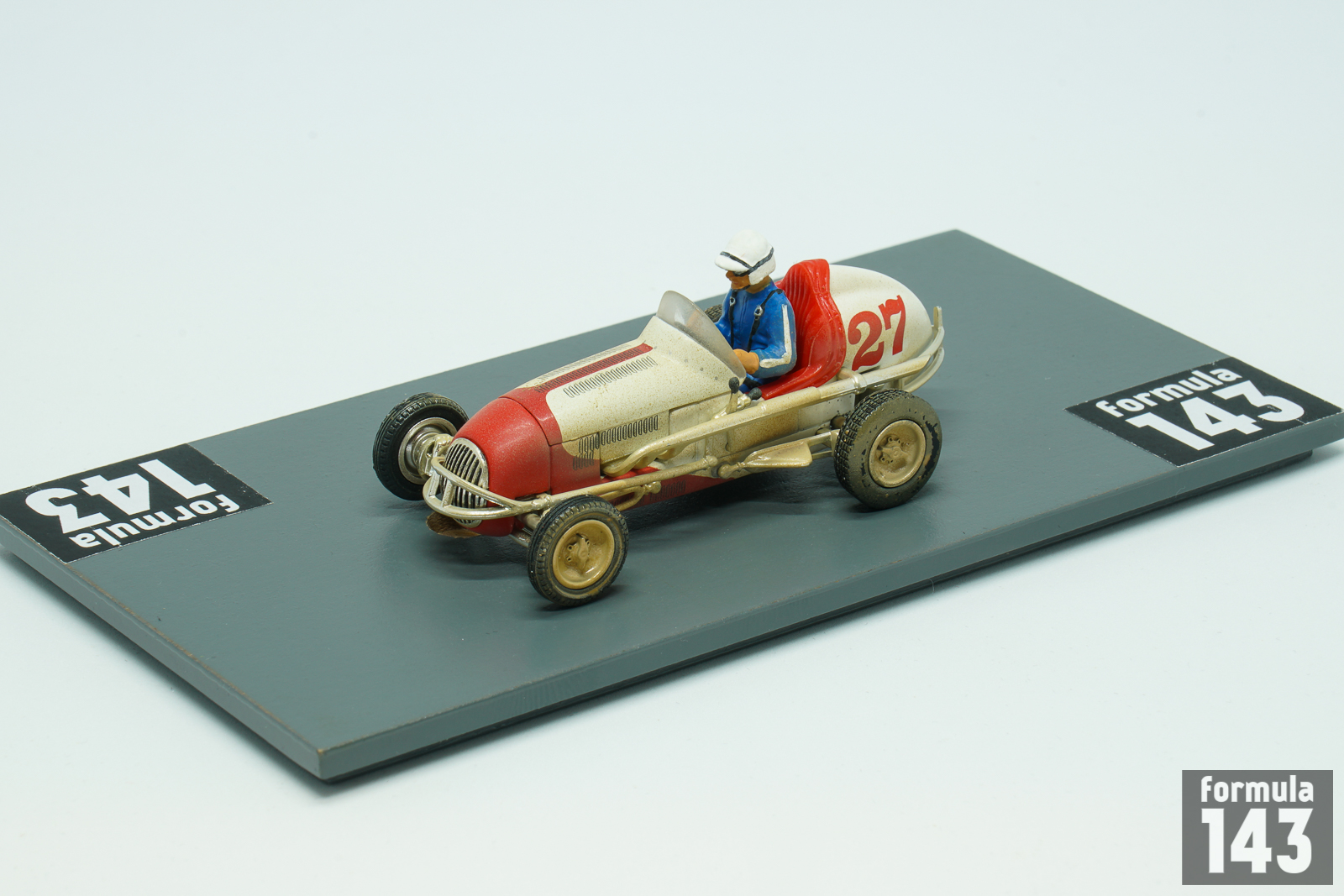 The diecast brand GMP (Georgia Marketing and Products) in the beginning of 2000s have produced the “Gilmore Stadium Midget Series” set of models in 1/43 scale to commemorate the 50th anniversary of the Stadium demolishing. The set included a stadium diorama and 5 midget cars of Roger Ward, Danny Oakes, Perry Grimm, Bill Vukovich, and Walt Faulkner, all were sold separately. Ward’s midget is the first in the series.