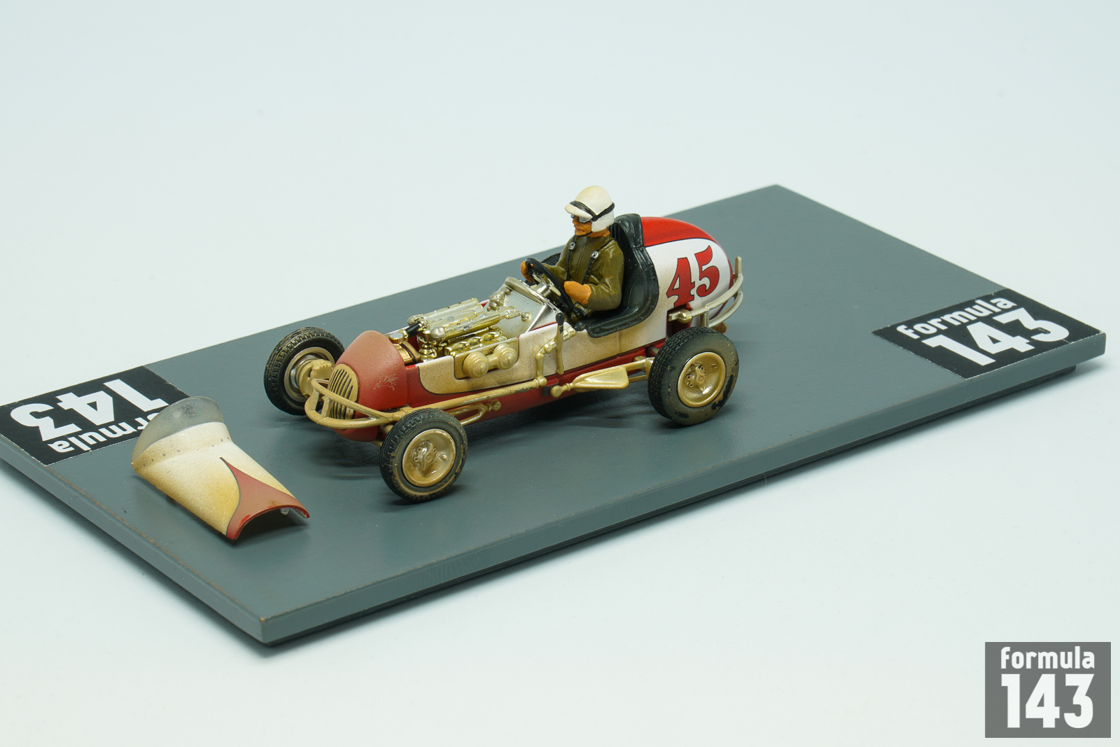 The diecast brand GMP (Georgia Marketing and Products) in the beginning of 2000s have produced the “Gilmore Stadium Midget Series” set of models in 1/43 scale to commemorate the 50th anniversary of the Stadium demolishing. The set included a stadium diorama and 5 midget cars of Roger Ward, Danny Oakes, Perry Grimm, Bill Vukovich, and Walt Faulkner, all were sold separately. Vukovich Offy midget is the fourth model in the GMP set.
