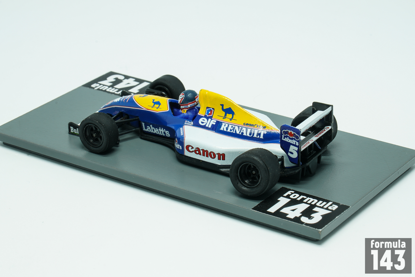 The FW14 was designed by Adrian Newey and was used by the Williams team in the 1991 and 1992 Formula One seasons. It was first Williams car by Newey who came from March in the mid-1990. Based on much larger budget he was able fully develop his ideas and FW14 has become a masterpiece in terms of aerodynamics and technical superiority. The car featured semi-automatic transmission, active suspension, traction control and, for a brief period, anti-lock brakes. In 1991 team’s number 1 Nigel Mansell was runner-up in the championship, winning 4 races of the season. Riccardo Patrese added two more wins and was in third place in the overall standings. But the real triumph of the car took place the next year when Mansell won 9 races and the Champшon title driving slightly modified FW14B specification of the car. The FW14B was so successful that its successor (the FW15), which was available mid-season in 1992, was never used.