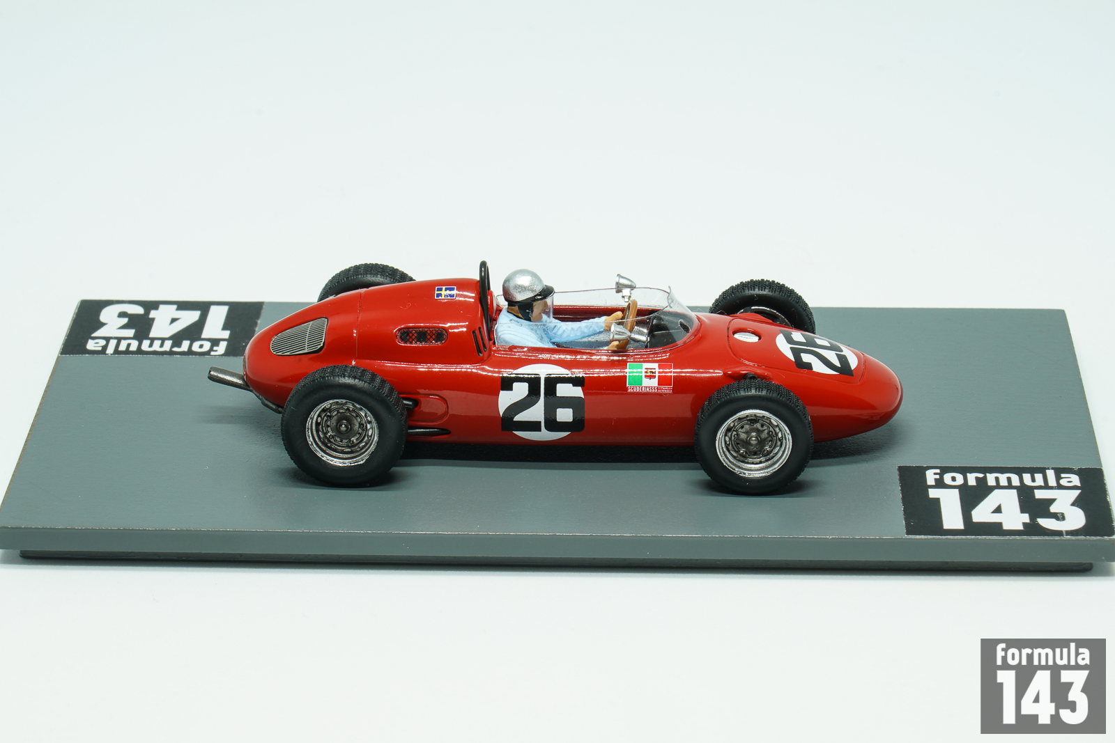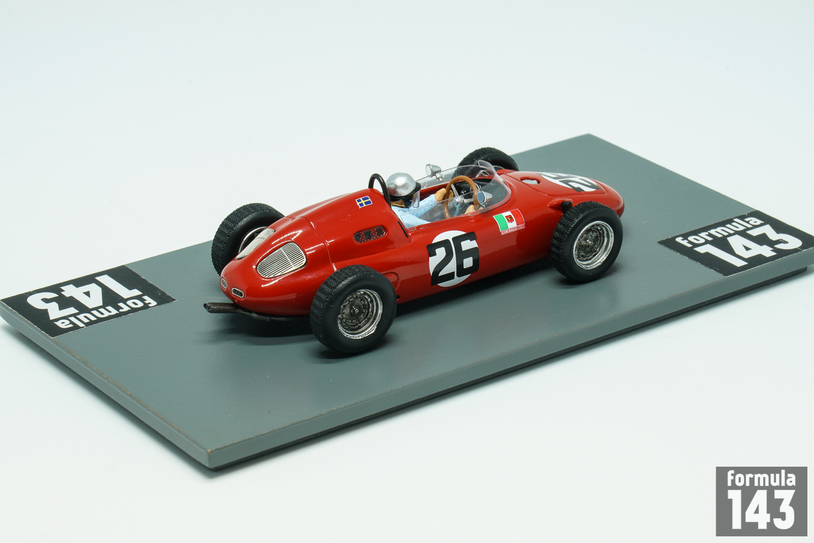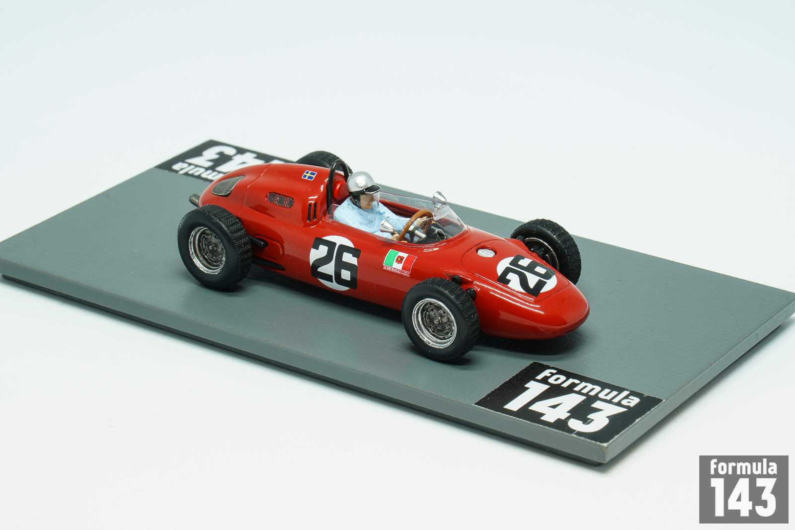 Porsche 718 was based on former Formula 2 car of the late fifties when Porsche moved up to Formula One in 1961. Powered by Porsche 547/3 1.5 F4 engine the 718 was slightly outdated even in the first 1.5-litre F1 season when it was raced by Porsche works team. For 1962 Porsche built a newly developed flat-eight powered and sleek Porsche 804 which brought Porsche’s only win as a constructor in a championship race, claimed by Dan Gurney at the 1962 French Grand Prix. The 718 model continued to be used in 1962 by several private teams including Ecurie Maarsbergen by Dutch Carel Godin de Beaufort; Swiss Ecurie Filipinetti; and Italian Scuderia Serenissima. The latter, known in 1962 as Scuderia SSS Republica di Venezia, was founded by Giovanni Volpi to ran his own formula and sports cars. In 1961, Scuderia Serenissima entered the Formula One World Championship with Cooper and De Tomaso cars. In 1962, now called Scuderia SSS Republica di Venezia, the team entered Lotus and Porsche cars for Nino Vaccarella. The Italian from Palermo debuted in F1 in 1961 driving Scuderia Serenissima De Tomaso in Italian Grand Prix. In 1962 he did not qualify in Monaco driving Lotus 21, was 15th in Germany in Porsche 718, and 9th in Italy in Lotus 24.