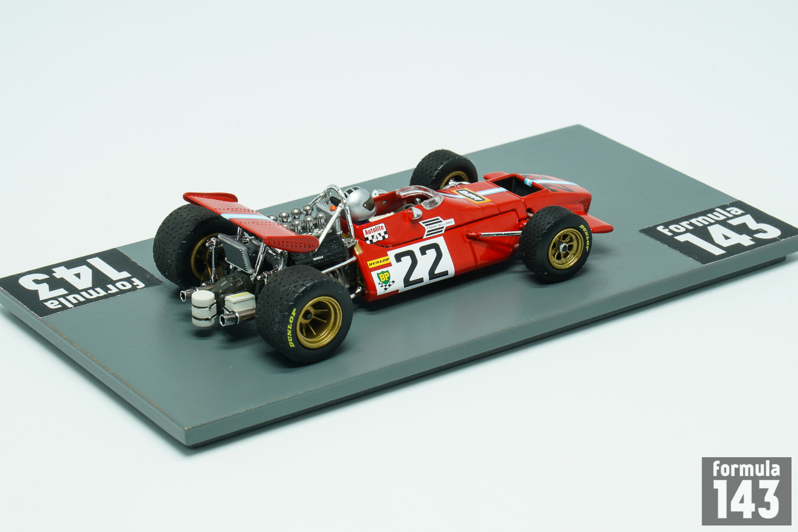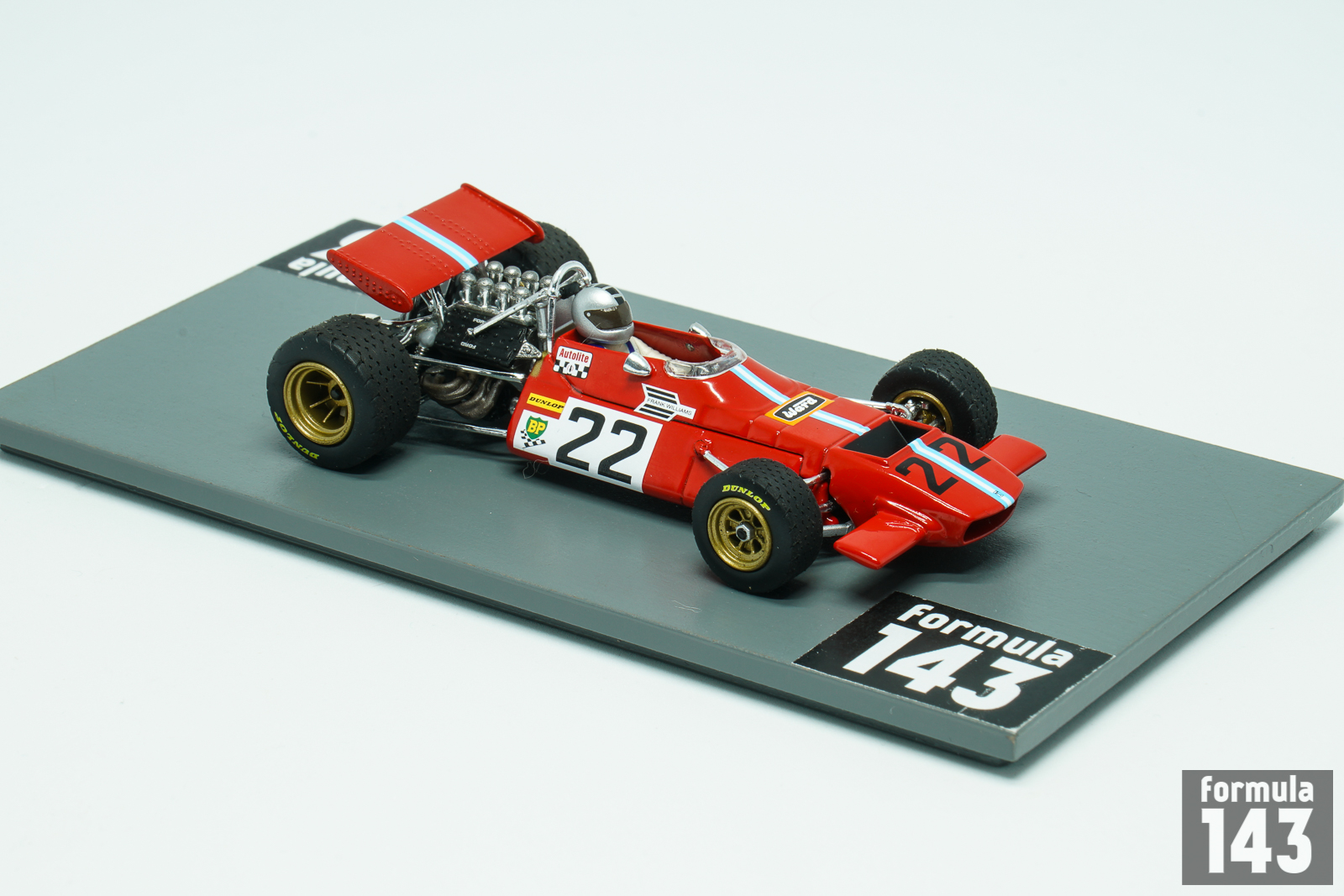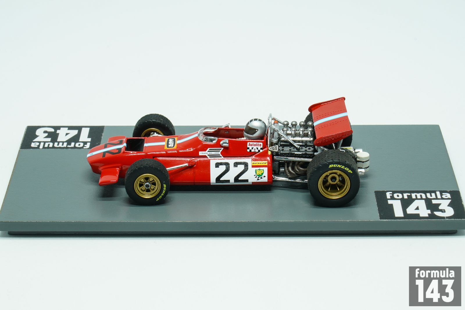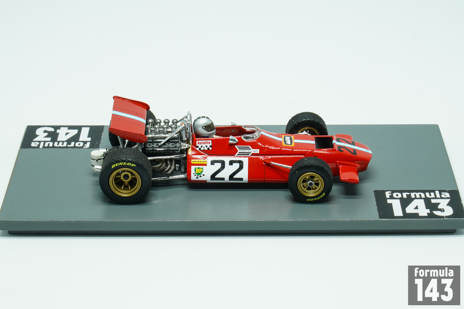The car was designed by Gianpaolo Dallara for Italian car-manufacturer De Tomaso and raced during the 1970 Formula One season by Frank Williams Racing Cars. Car featured aluminium monococque and was powered by Ford Cosworth DFV. Frank Williams’ team started the season with talented British driver Piers Courage who took several podiums in 1969 driving Brabham BT26A entered by Williams. New De Tomaso turned out to be a complete disappointment. The car was uncompetitive, overweight and unreliable, failing to finish or be classified the first four championship races of the year. The third place by Courage in the non-championship International Trophy gave some hope to the team, but during the fifth round of the Championship, the Dutch Grand Prix at Zandvoort, Courage was fatally crashed after the De Tomaso’s front suspension or steering broke, the car was crashed into embankment and burst into flames.