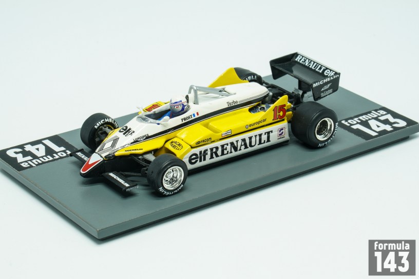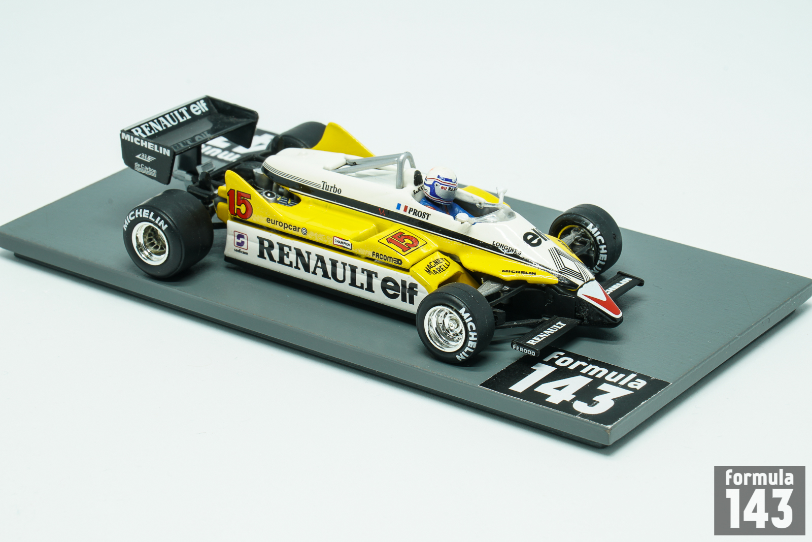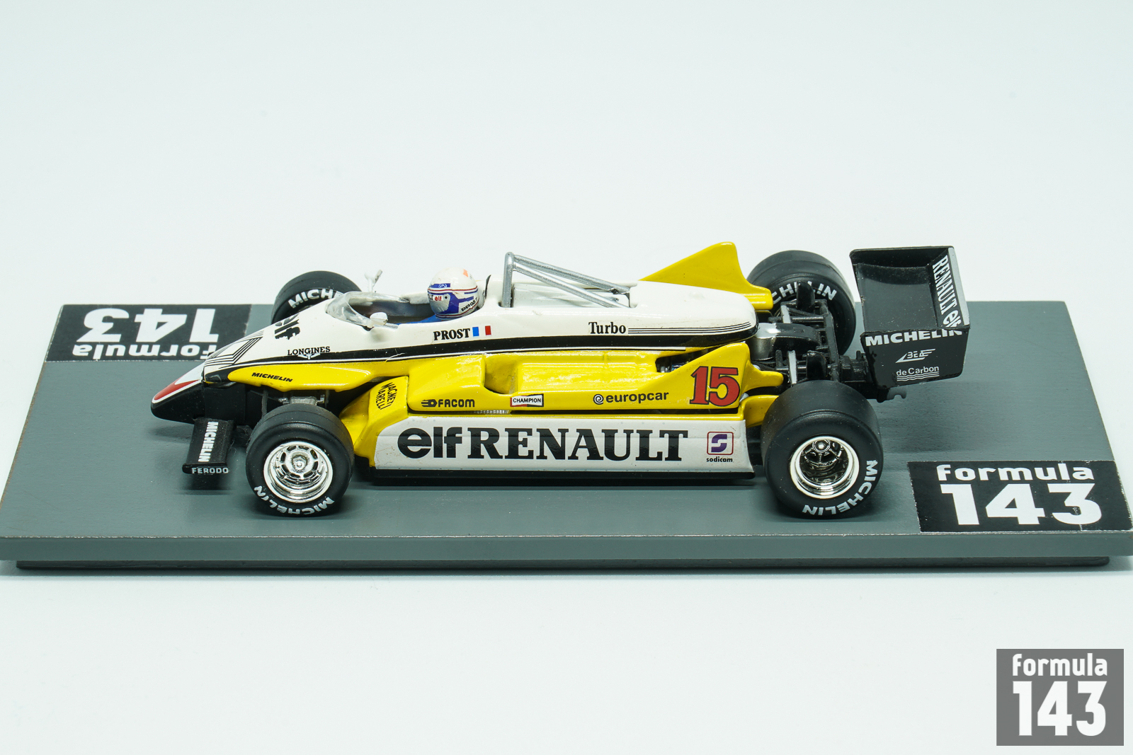 The Renault RE30 was designed by Bernard Dudot and Michel Tétu for the Renault team for the 1981 Formula One season. An updated version, the RE30B, was used in the 1982 season. The B specification had a redesigned nose section that featured separate left and right front wings, and new rear wing. The Renault Gordini EF1 engine was further developed to give around 590 bhp. The season for Renault drivers Alain Prost and Rene Arnoux started with success at the opening round of the championship in Kyalami. Prost won the South African Grand Prix, and Arnoux finished third. Then Alain repeated his winning performance in Brazil. Further the season the RE30B proved to be one of the most competitive cars that year. Prost was in sight of victory at Monaco, Austria and Dijon but had problems during the final laps of all three races. He was 4th in the final championship standings. Arnoux collected many retirements but in the second part of the season won in France and Italy and moved to 6th place in the championship. With 4 wins Renault became the most winning (together with McLaren) team of the season, but in the constructors’ standing French team took only 3rd place.