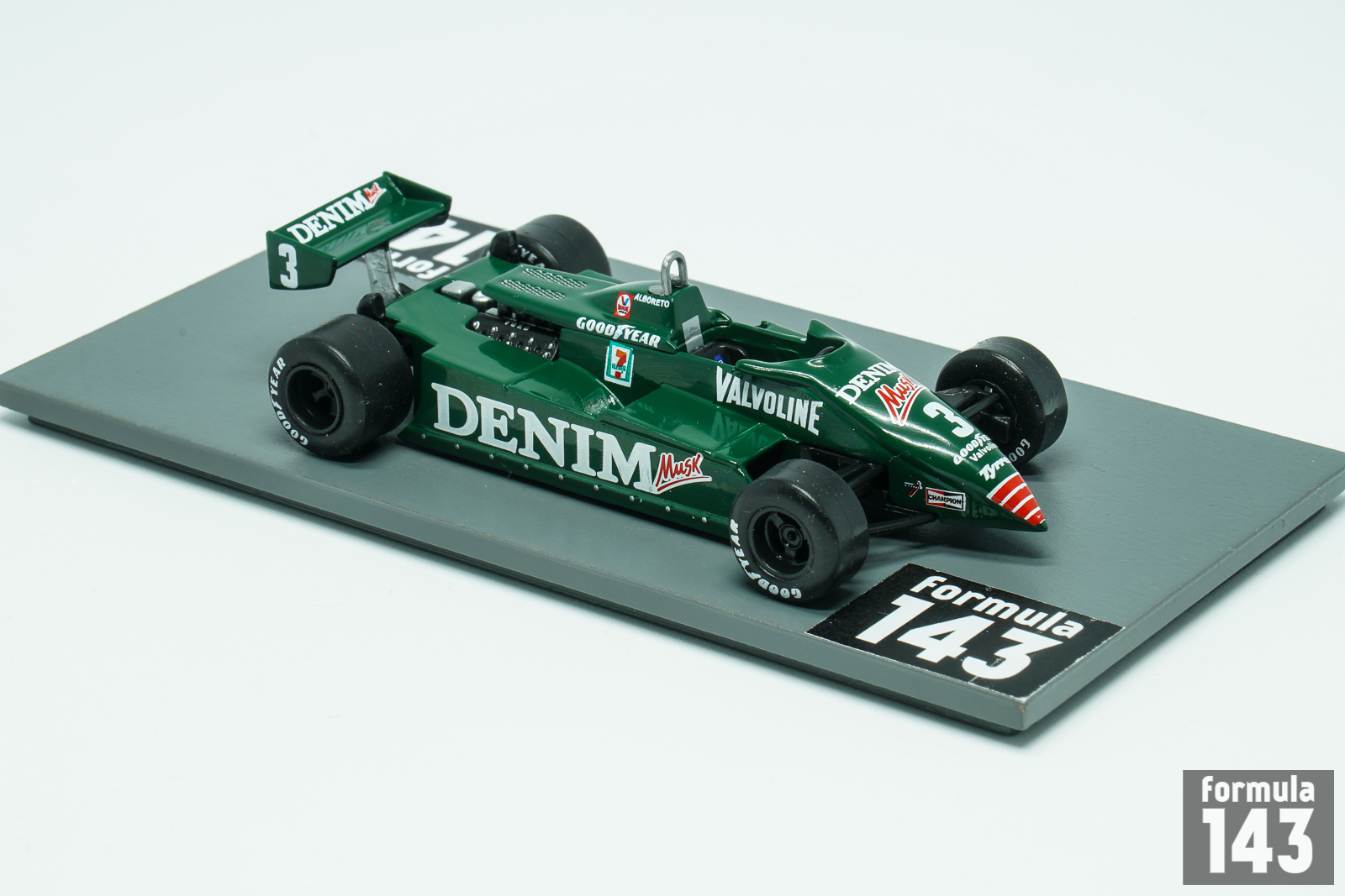 The Tyrrell 011 designed by Maurice Philippe for the Tyrrell Racing Organisation made its debut in the hands of American Eddie Cheever at the 1981 German Grand Prix. The car featured the aluminium monocoque and Cosworth DFV 2,993 cc engine. In 1982 the 011 was used full season driven by Michele Alboreto as the driver number 1. The second car was provided to Swede pay driver Slim Borgudd who was replaced by British Brian Henton after three first races when Borgudd’s money ran out. The car proved to be very reliable and performed surprisingly well. Alboreto was able to score points regularly, taking 3rd place at San Marino Grand Prix. But the culmination of the season for Tyrrell was the last round of the championship, Caesars Palace Grand Prix held in Las Vegas. Alboreto took the comfortable win, his first ever and the first for Tyrrell in four years. Alboreto became the 11th different victor that year.