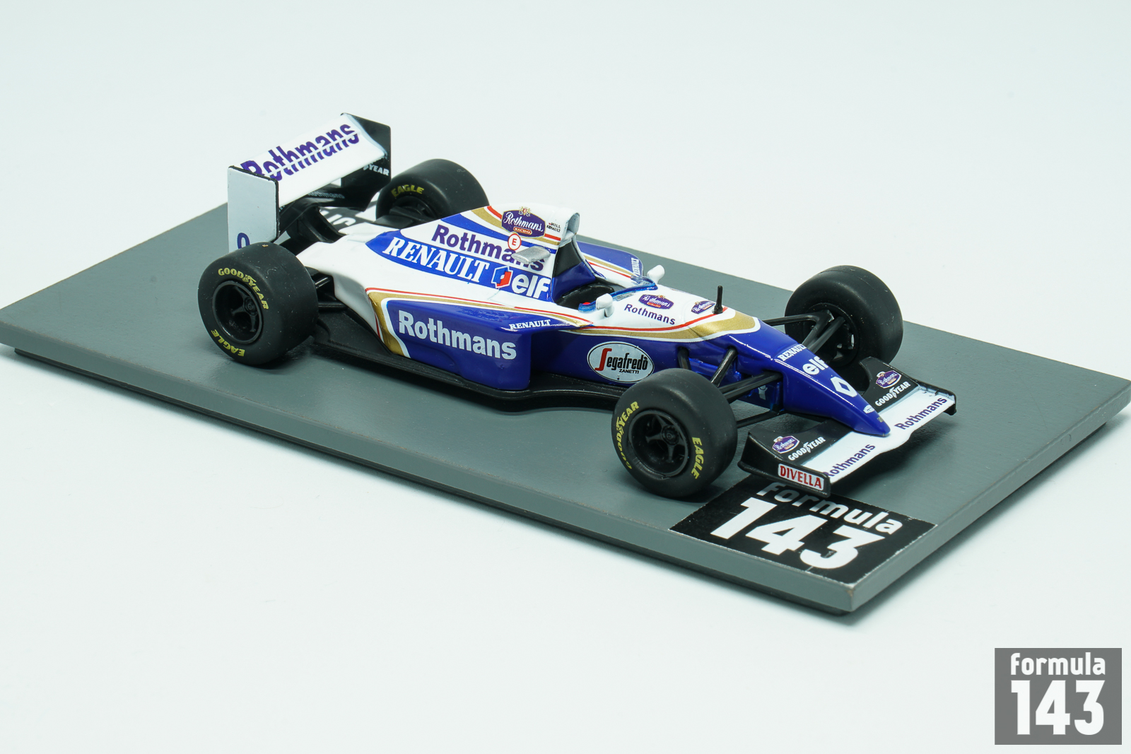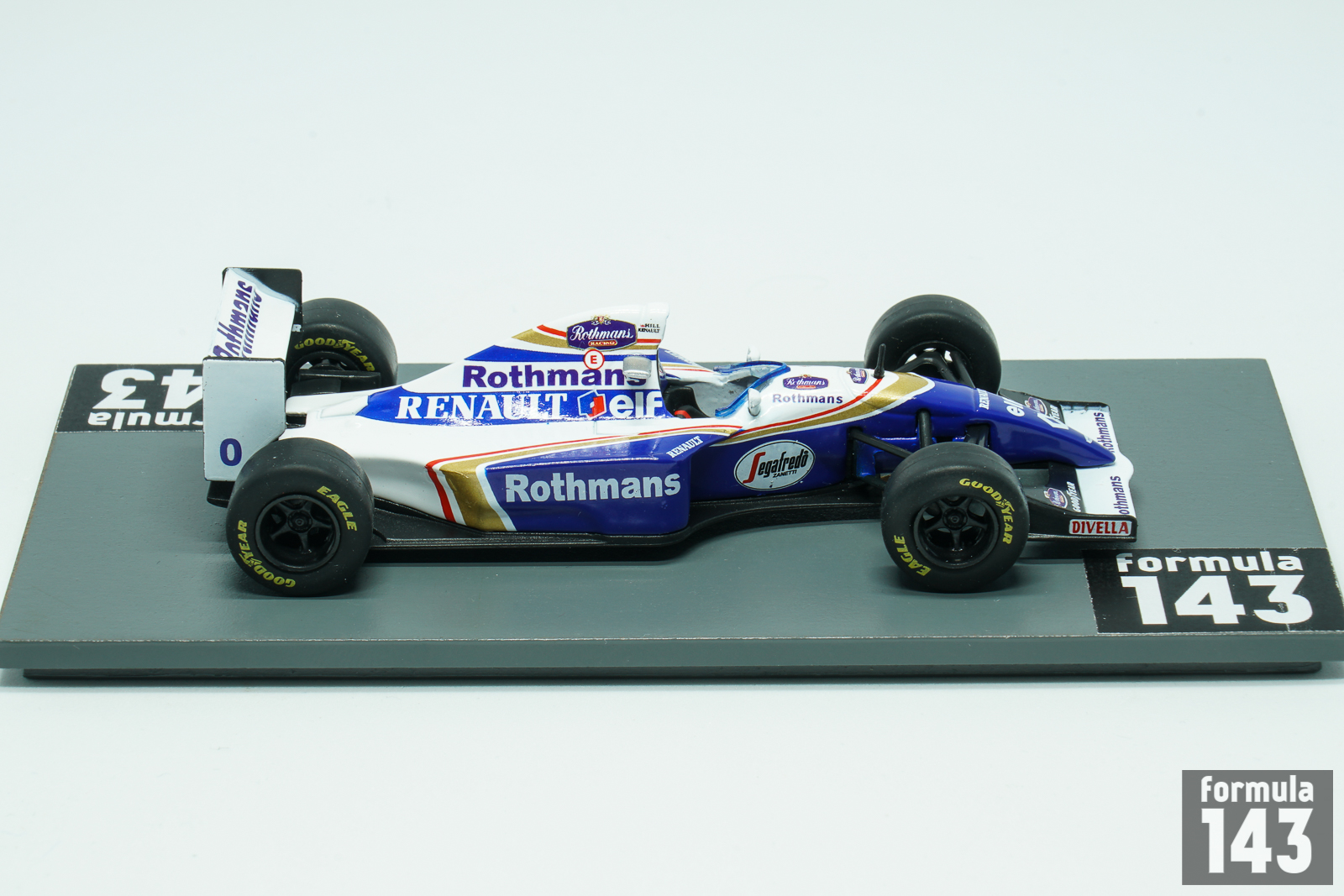 After tragic death of Ayrton Senna at the San Marino Grand Prix, Damon Hill remained the only hope of the Williams team for the 1994 season’s title. Hill was assigned with the starting number 0 because reigning World Champion Alain Prost left the team before the season. Mister “from zero to hero” has fought like a lion, but despite his 6 Grand Prix victories lost the title to Michael Schumacher by one point after a collision between them at the final round of the championship in Adelaide. See also the model of the same car by Onyx.