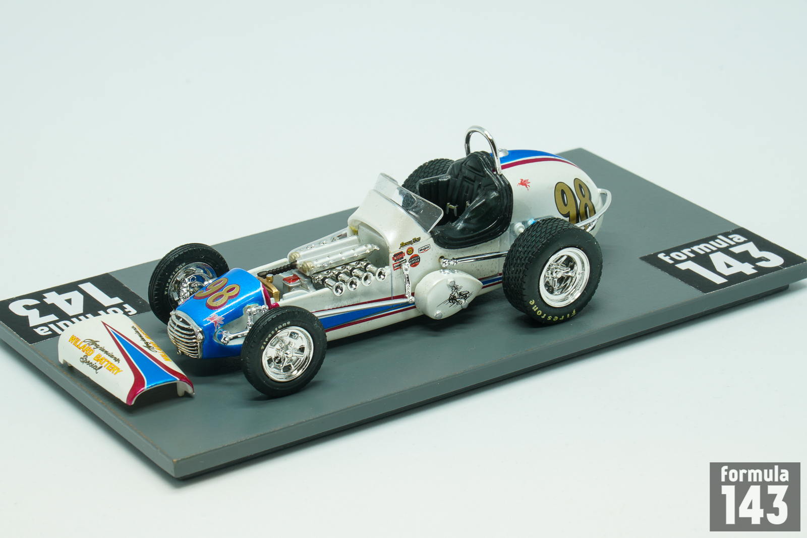 The 1961 USAC National Championship included 12 races. Five of them were held on paved ovals, and 7 on dirt tracks. J.C. Agajanian’s team used Watson-Offy roadsters for paved superspeedways at Indianapolis 500 and Milwaukie 200, and Lesovsky – Offy big car for shorter (usually, 100-miles) races on short dirt or paved ovals. Both cars were officially named Willard Battery Special. The dirt car was manufactured by Los Angeles based car builder Ludwig “Lujie” Lesovsky. Of Czechoslovakian blood, he ran his L.A. Lesovsky Race Car Engineering garage which mostly dealt with modifying Kuzmas, Kurtis Krafts, Epperlys, and Watsons, than in constructing his own vehicles. Lesovsky build just 5 Indy-500 roadsters and some dirt big cars. The owner of the car was Joshua (J.C.) Agjanian, a businessman of Armenian origin, one of most influenced and famous persons in US motor racing of the 1950s – 60s. He ran his family’s refuse collection and hog ranching businesses in California, but promoting of motor races and his own cars was actually his main and most loved activity. The money for his team came from Willard Storage Battery Corporation, an early leader in the development and manufacture of automobile batteries, founded by Theodore A. Willard in Cleveland. In 1961 its factory in Cleveland shuts down and the company goes bankrupt. In his Willard Battery Specials Parnelli Jones was not very successful on paved ovals, but showed much better performance on dirt tracks. He drove his Lesovsky – Offy dirt car to 2nd places at Langhorne 100, and Golden State 100 at Sacramento before taking his first championship race win at the final round of the 1961 season, Bobby Ball Memorial at Arizona State Fairgrounds in Phoenix. In the final 1961 USAC National Championship standings Jones was 9th. The Champion was A.J. Foyt, who lost the Sprint Car title to Parnelli, but excelled in the most prestigious and most money-earning series.