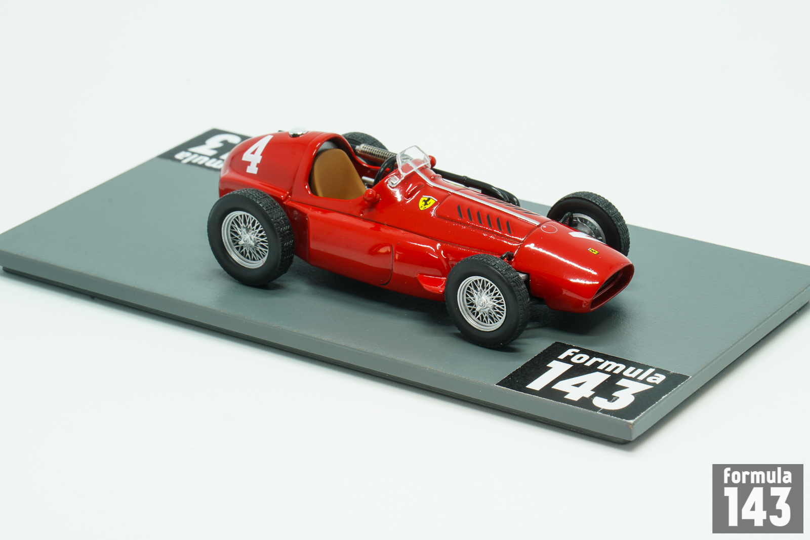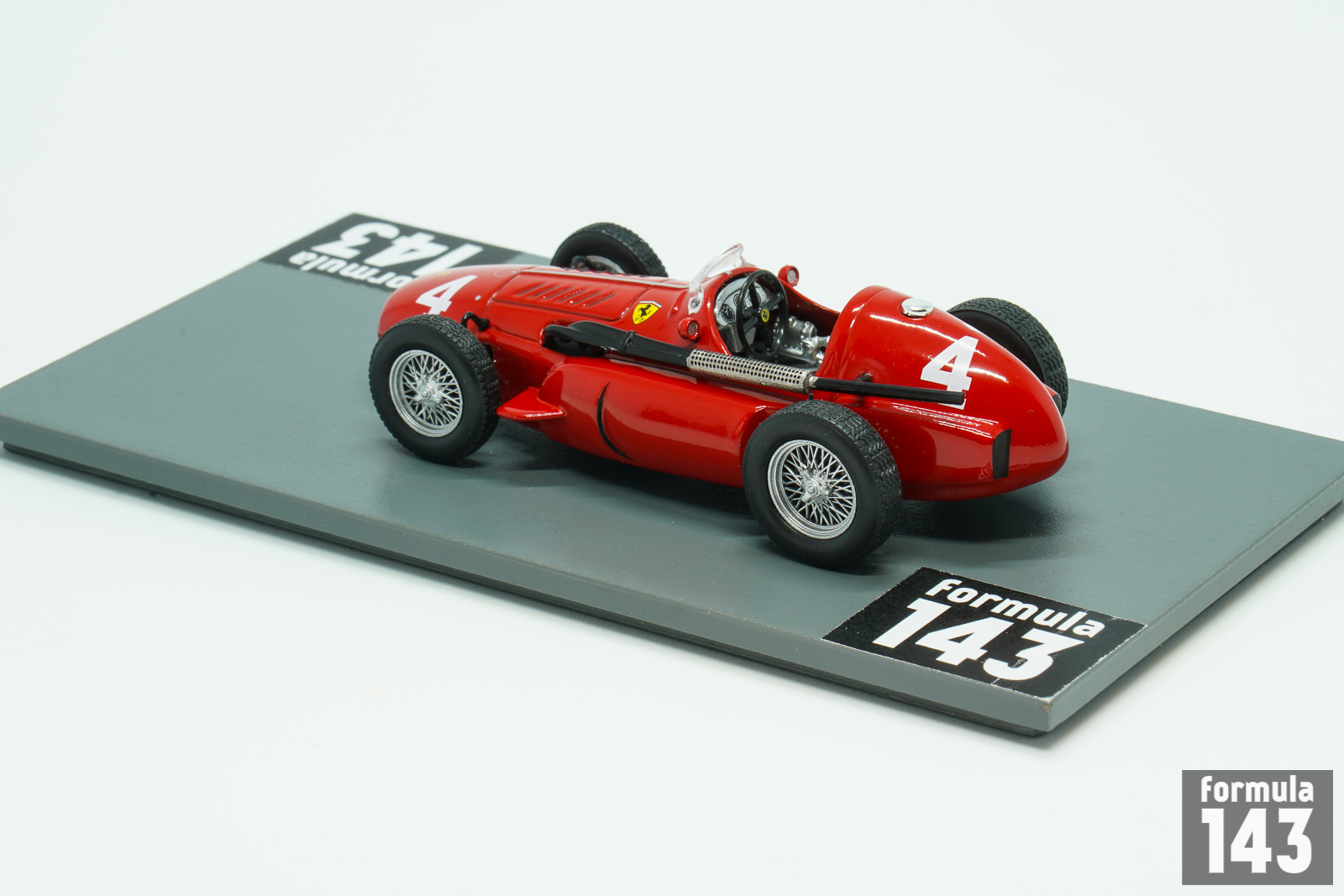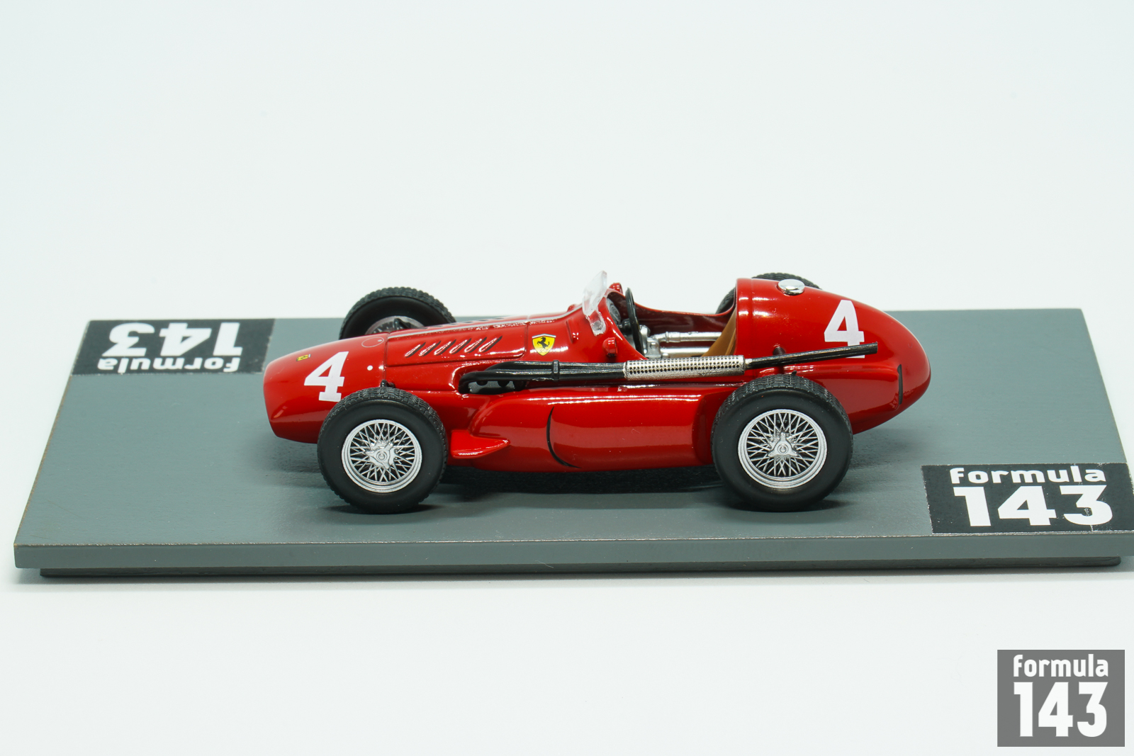 The 555 has its roots in the Ferrari 553 F2 model designed and built in 1953. In formula 1 specification used in 1954 the 553 was fitted with inline-four engine designed by Aurelio Lampredi, producing 260 PS from 2497.56 cc of total capacity. Because of the distinctive rounded bodywork and air-intake it was nicknames ‘squalo’, meaning ‘shark’ in Italian. In 1955 the 553 chassis were updated by extended, rounded bodywork, because of which the 555 was nicknamed as s ‘super shark’ or ‘supersqualo’. It also featured new front suspension with helical springs instead of the transverse leaf-springs; and new five-speed gearbox instead of a four-speed. Despite the improvements, Ferrari was still far behind Mercedes, and Lampredi has left the company after serious disagreement. The only win of Ferrari in 1955 was thanks to Maurice Trintignant in the Ferrari 625 in Monte Carlo, in a race marred by Ascari’s accident in the Lancia, which ended up in the sea. Ascari’s teammate young Eugenio Castellotti in Lancia D50 finished second in that race. After his move to Scuderia Ferrari Castellotti demonstrated spectacular performance in a couple of races, best of which was Italian Grand Prix in Monza where Castellotti finished 3rd in the 555. In the final championship standings Castellotti was 3rd, best of Ferrari drivers in the 1955 season.