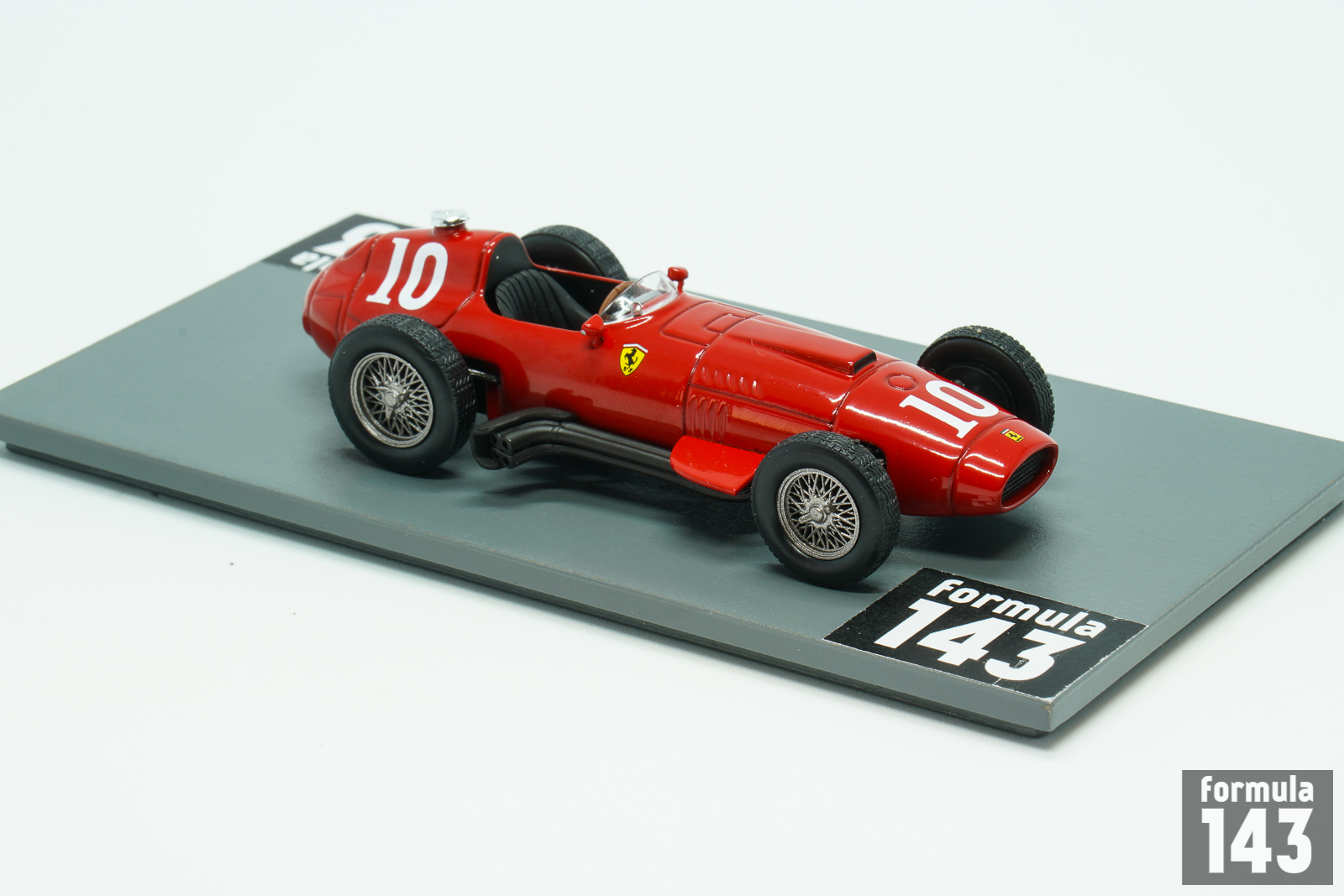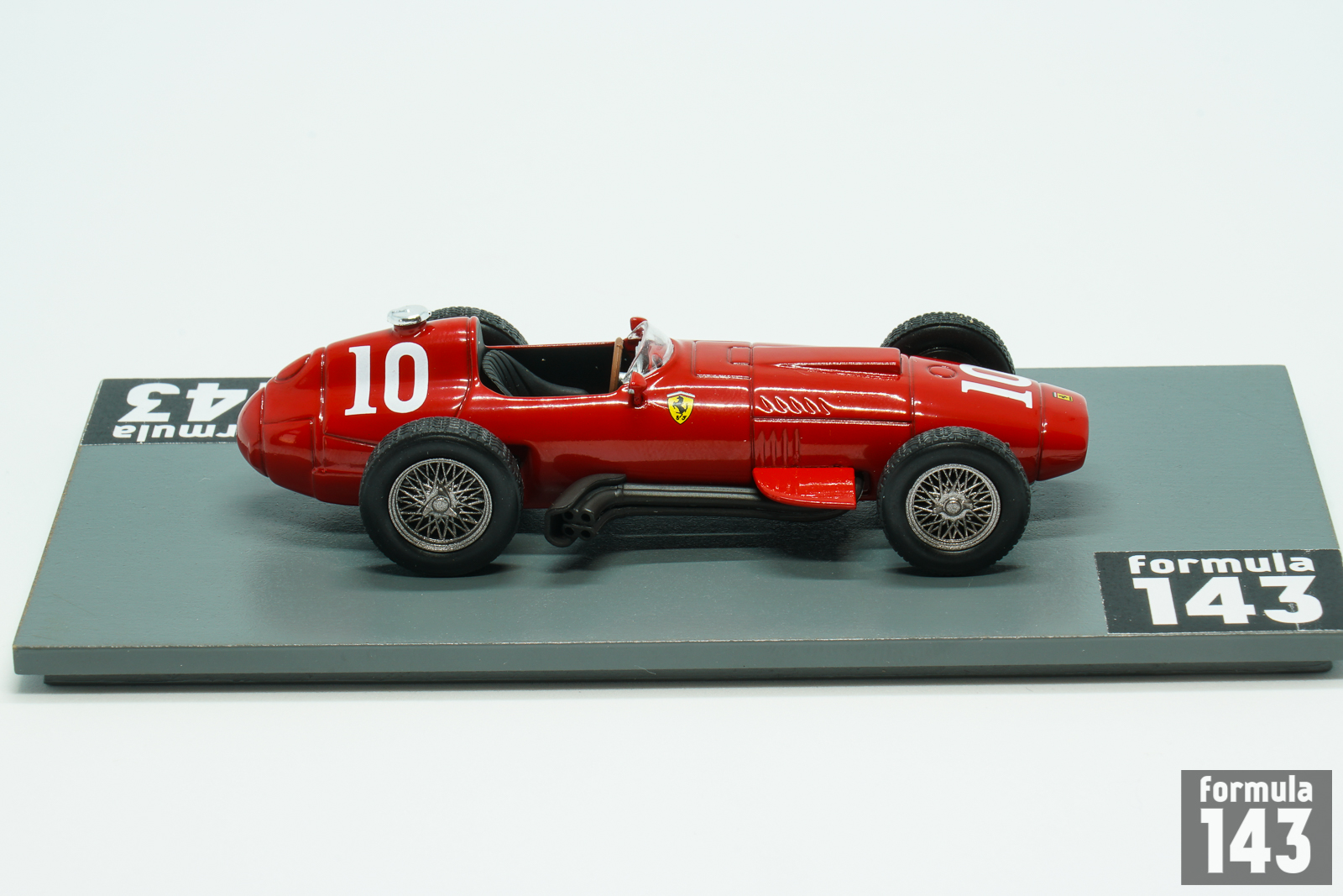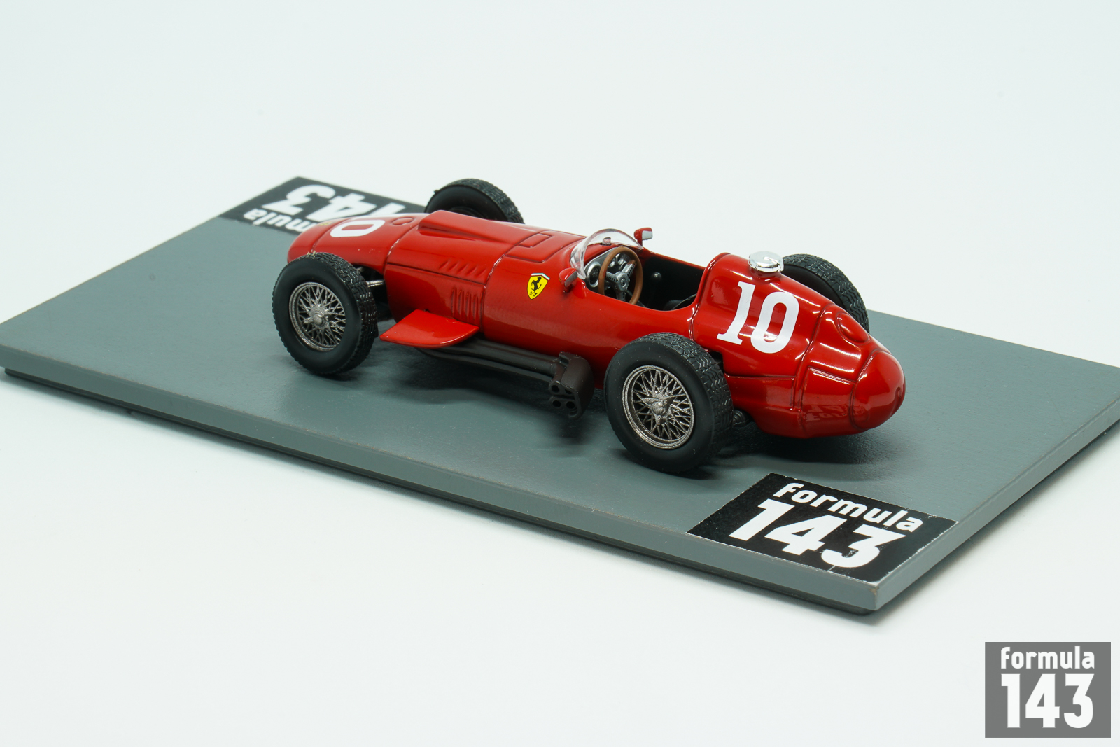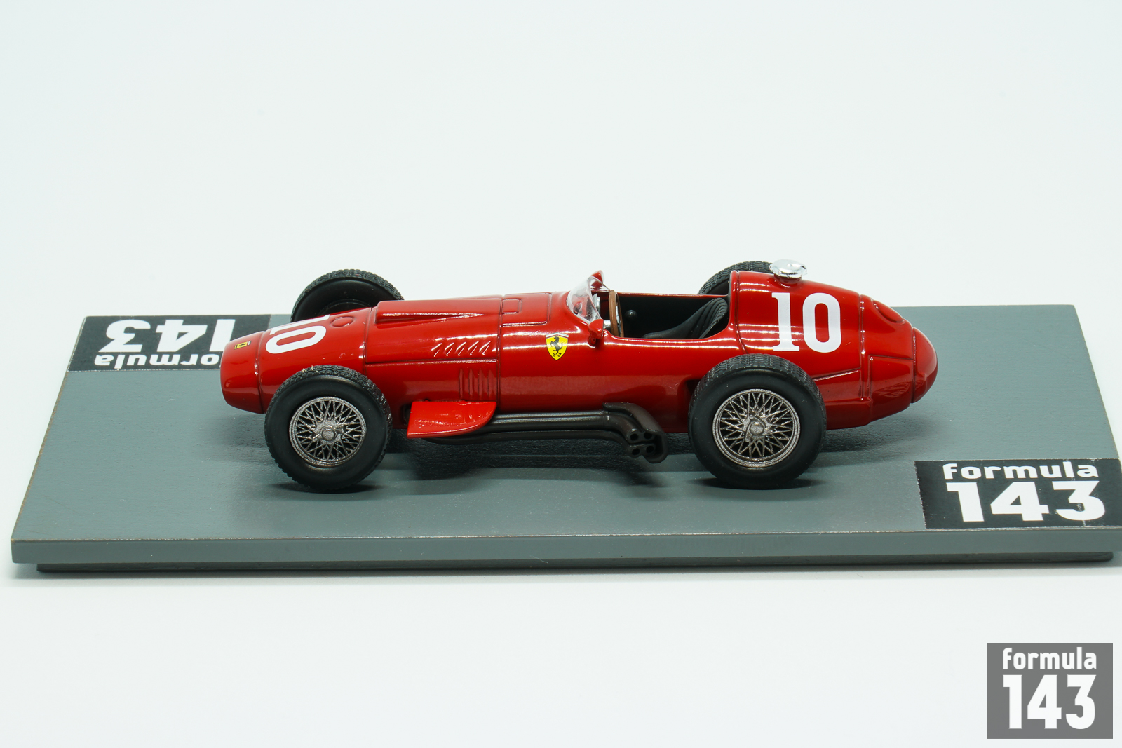 The 801 was the evolution of Ferrari-Lancia D50 with a new tubular chassis, a redesigned V8 engine and a traditional bodywork. The name of the car is made up of the number of cylinders (8) and 1 for Formula 1, with 0 to create the classic three-figure number. During the season the cars were driven by Peter Collins, Luigi Musso and Mike Hawthorn as regular drivers with some one-off entries for others. Ferrari did not win in the season, and 801 only took few podiums in hands of Musso, Collins and Hawthorn. For Musso the highest point of the season was 2nd place at French and British Grand Prix. The scale model from Ferrari F1 Collection is Luigi’s car from Rouen.