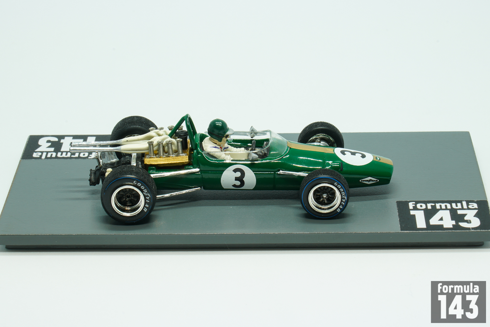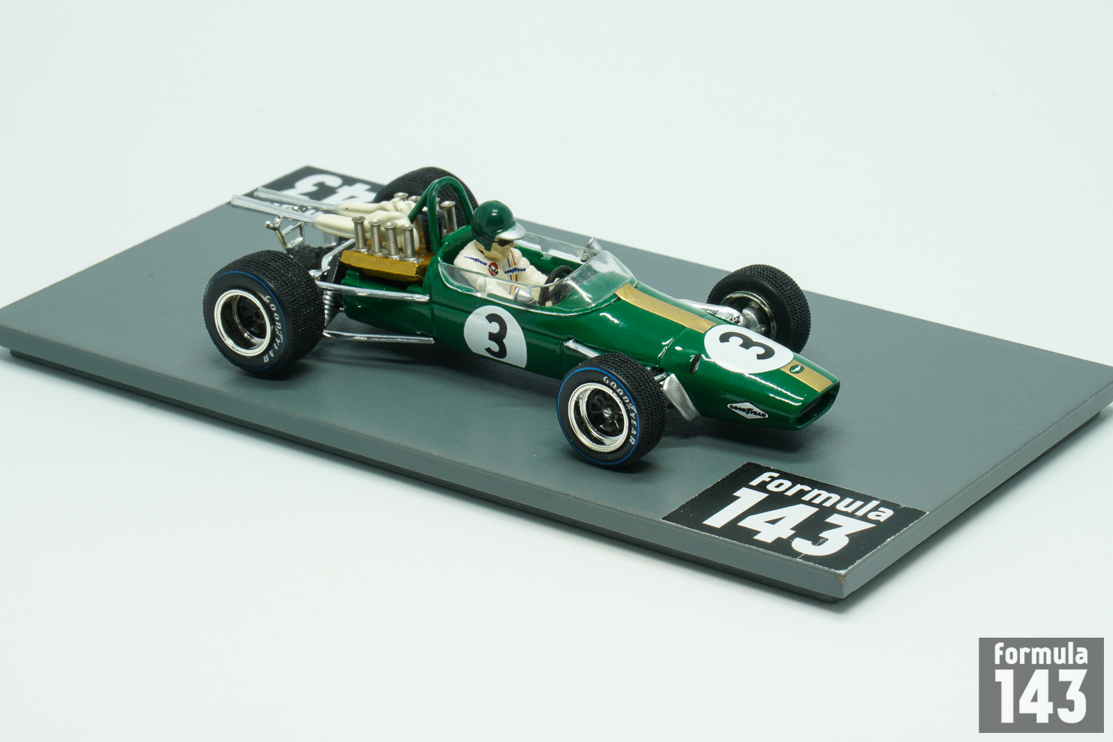 The BT24 was used by the Brabham team in 1967 season and in the beginning of 1968. The car was designed by Ron Tauranac based on previous season winning BT20 and Formula 2 light and compact BT23. The car had fibreglass body on tubular steel space frame chassis – Tauranac still preferred space frame while other Formula One designers shifted to monococque chassis. The power was provided by entirely new Repco 740 engine. In 1968 Brabham Racing Organization used the BT24 in first three Championship races of the season – in South Africa, Spain and Monaco before it was replaced by BT26. Austrian Johen Rindt who came to Brabham from Cooper Cars, took 3rd position in South African Grand Prix, his first race with new team, and retired in Spain and Monaco. When the team switched to BT26, Rindt was able to finish only once, in 3rd position again – this time in Germany, and retired in all other races.