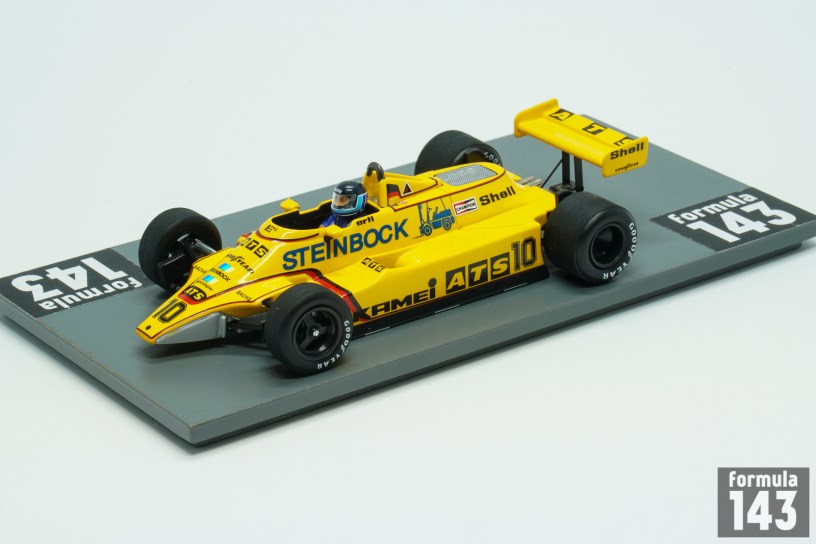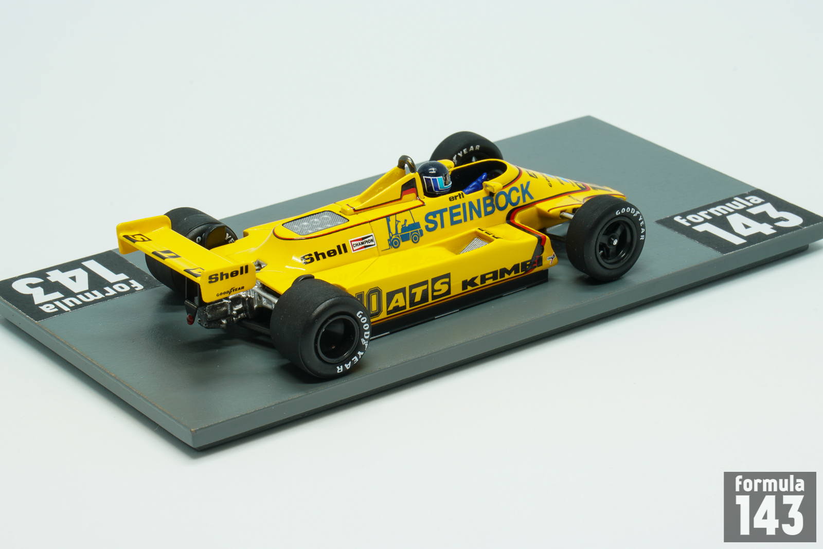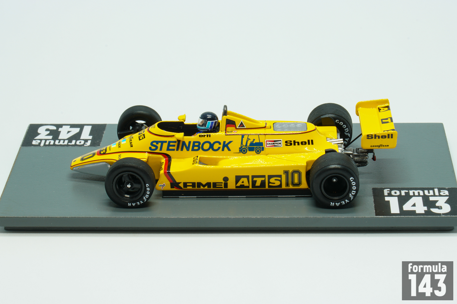 ATS D4 like many 1980 cars looked very much like a Williams FW07. The car designed by Gustav Brunner and Tim Wardrub was lighter, shorter and narrower than the ATS D3. ATS team started 1980 with a pair of cars, which they described as being D4s. The first of these was a modified version of the D3 introduced the previous autumn, and the second was its brand new twin. These were used in South America and most publications called them D3s, but it appears that the team was calling them D4s. However, ATS then introduced a new model at the South African GP which was also called the D4. So the two cars used in South America must be regarded as updated D3s, and the South African GP car as the first D4. The team started the season with drivers Marc Surer and Jan Lammers, but since 4th round of the season in Long Beach only one car was entered – first for Lammers, and then for Surer. Surer finished in 7th position in Brazilian Grand Prix in a modified D3 chassis, and this was the best ATS result of the year. For the German GP of 1980 a second ATS D4 was prepared for Austrian Harald Ertl. Racing successfully in touring cars and being German Champion in a BMW in 1978, Ertl was less lucky in his parallel Formula 1 career. Disappointing results with Ensign in 1978 made him pause in F1 in 1979 and race a Ford Capri Turbo in the DRM. 1980 German Grand Prix was his last appearance in Formula 1, but while teammate Marc Surer qualified 13th the spare car for Harald Ertl failed to qualify.