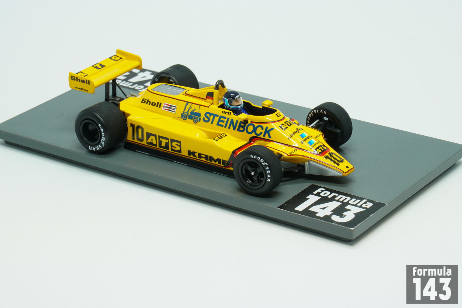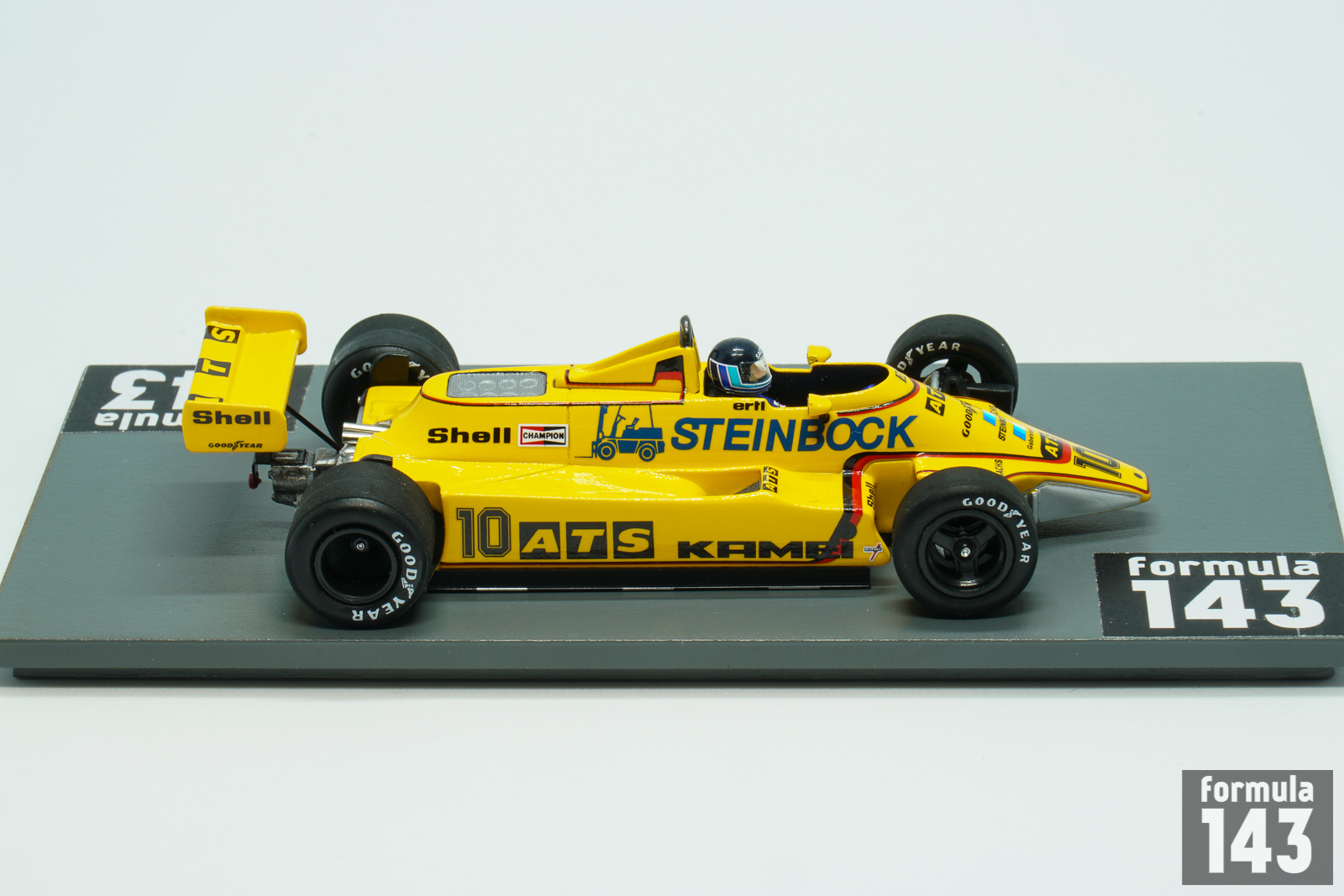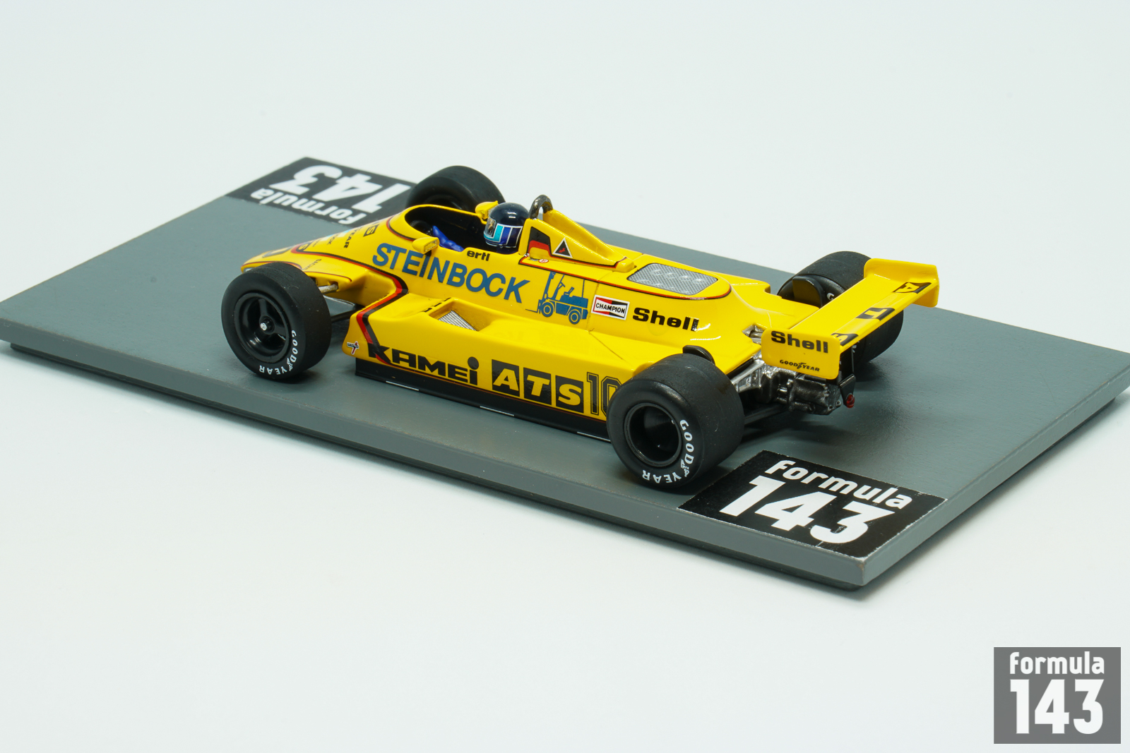 ATS D4 like many 1980 cars looked very much like a Williams FW07. The car designed by Gustav Brunner and Tim Wardrub was lighter, shorter and narrower than the ATS D3. ATS team started 1980 with a pair of cars, which they described as being D4s. The first of these was a modified version of the D3 introduced the previous autumn, and the second was its brand new twin. These were used in South America and most publications called them D3s, but it appears that the team was calling them D4s. However, ATS then introduced a new model at the South African GP which was also called the D4. So the two cars used in South America must be regarded as updated D3s, and the South African GP car as the first D4. The team started the season with drivers Marc Surer and Jan Lammers, but since 4th round of the season in Long Beach only one car was entered – first for Lammers, and then for Surer. Surer finished in 7th position in Brazilian Grand Prix in a modified D3 chassis, and this was the best ATS result of the year. For the German GP of 1980 a second ATS D4 was prepared for Austrian Harald Ertl. Racing successfully in touring cars and being German Champion in a BMW in 1978, Ertl was less lucky in his parallel Formula 1 career. Disappointing results with Ensign in 1978 made him pause in F1 in 1979 and race a Ford Capri Turbo in the DRM. 1980 German Grand Prix was his last appearance in Formula 1, but while teammate Marc Surer qualified 13th the spare car for Harald Ertl failed to qualify.
