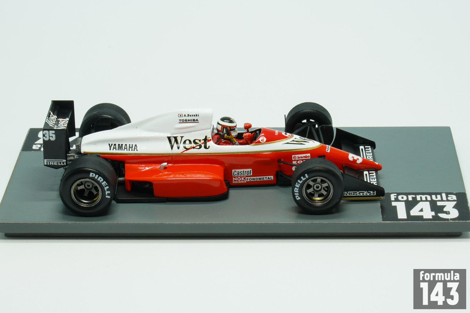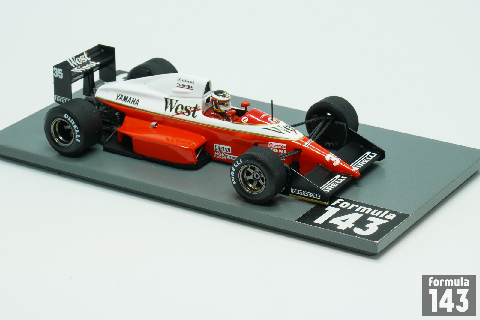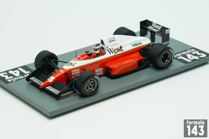 The 891 designed by Gustav Brunner was the last Formula One car to be produced by Zakspeed. For the 1989 season the German team first time used an engine from a different manufacturer than their own. Yamaha OX88 engine was found to be a very underpowered producing only 550 bhp in comparison to the 650 – 700 bhp of the top four engines, the V10’s of Honda (McLaren) and Renault (Williams), the Ferrari V12, and the Ford V8 (Benetton). The 891 was driven by German Bernd Schneider in his second year with the team and F1 rookie Japanese Aguri Suzuki. Due to zero points scored in 1988 the team was forced into pre-qualifying in order to be able to try to qualify for a race. During the entire season, Schneider only managed to break through the qualifying sieve twice – in Brazil and Japan, and both starts ended in retirement. As to Suzuki, the pre-qualification barrier proved to be insurmountable for him in all 16 rounds of the Championship. The scale model representing Suzuki’s car from the Japanese Grand Prix is the Spark special limited edition for Japanese Forza model car store.
