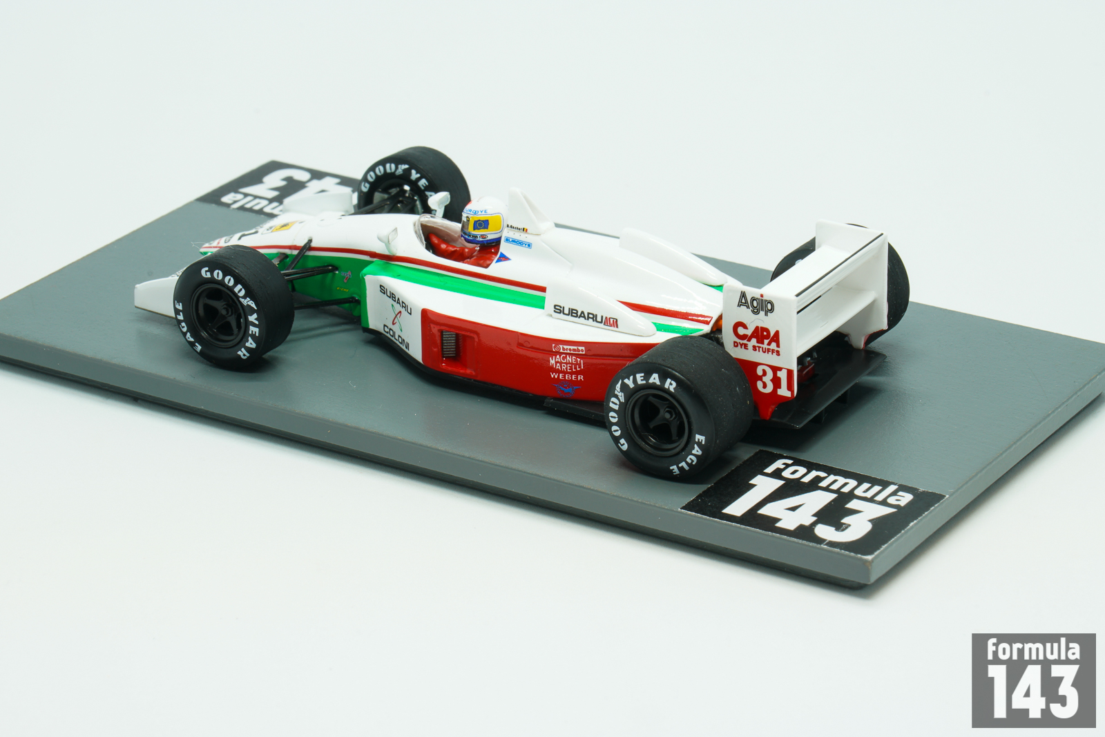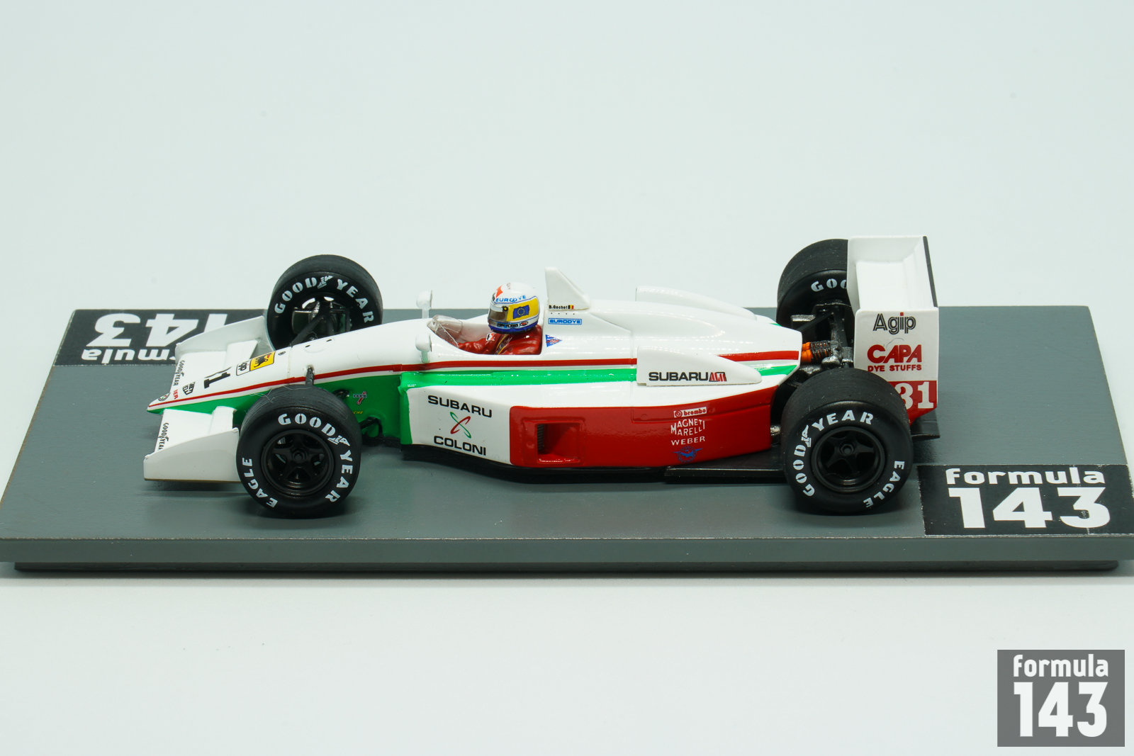 The C3B model was the updated version of Coloni C3 designed by Christian Vanderpleyn for the 1989 Formula One season. In C3B Cosworth DFR motor was replaced by a Subaru 1235 flat-12 engine. However Japanese power unit was too heavy and underpowered. Bertran Gachot, the only Coloni driver in 1990, failed to pre-qualify in all 8 first races of the season where C3B was used. Then Enzo Colini returned once again to Cosworth DFR in newly developed C3C. The performance of the “C” specification was slightly better – Gachot usually was able to pre-qualify, but never managed to qualify for a race.