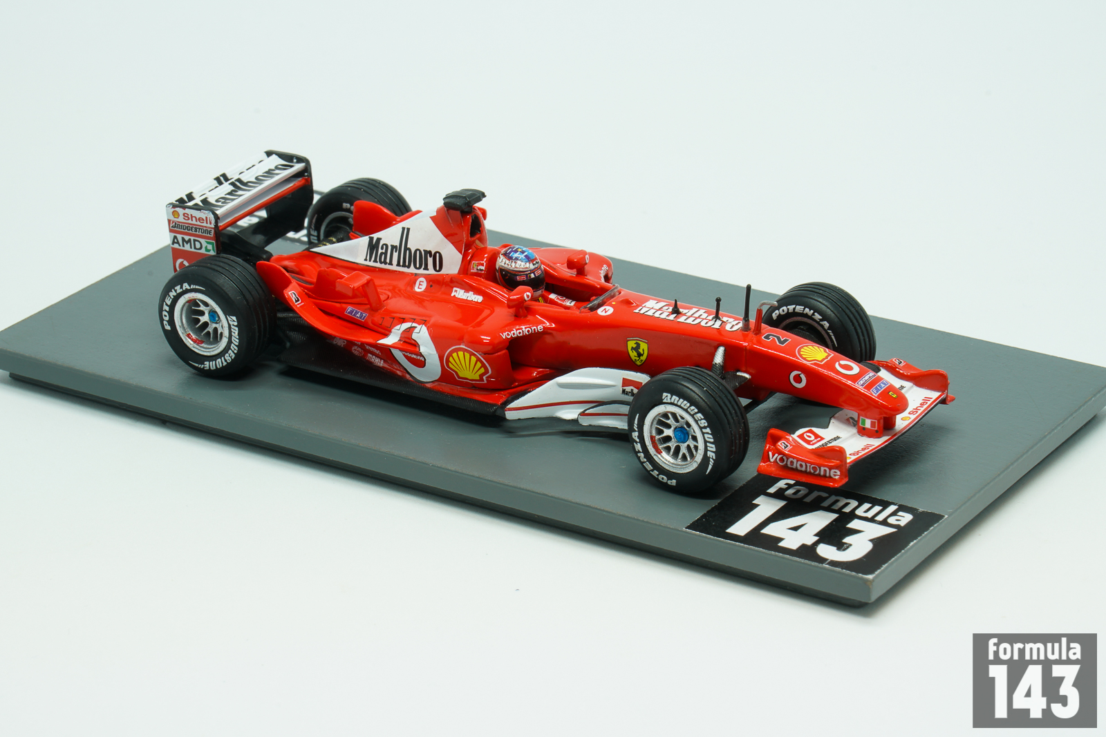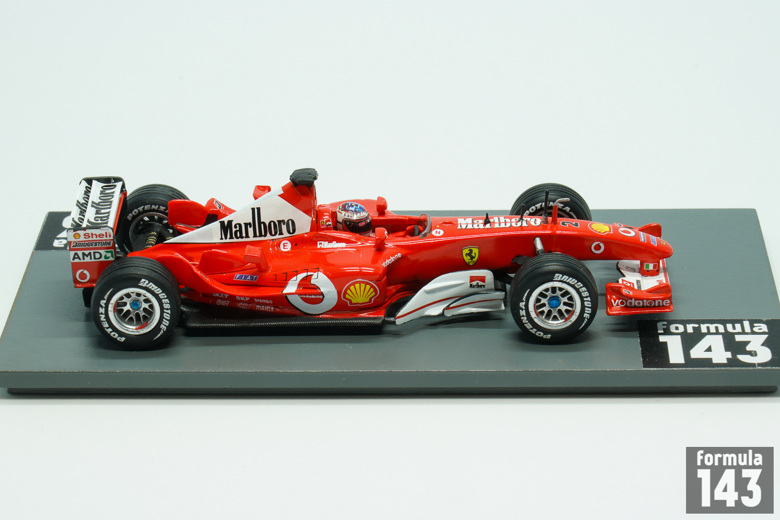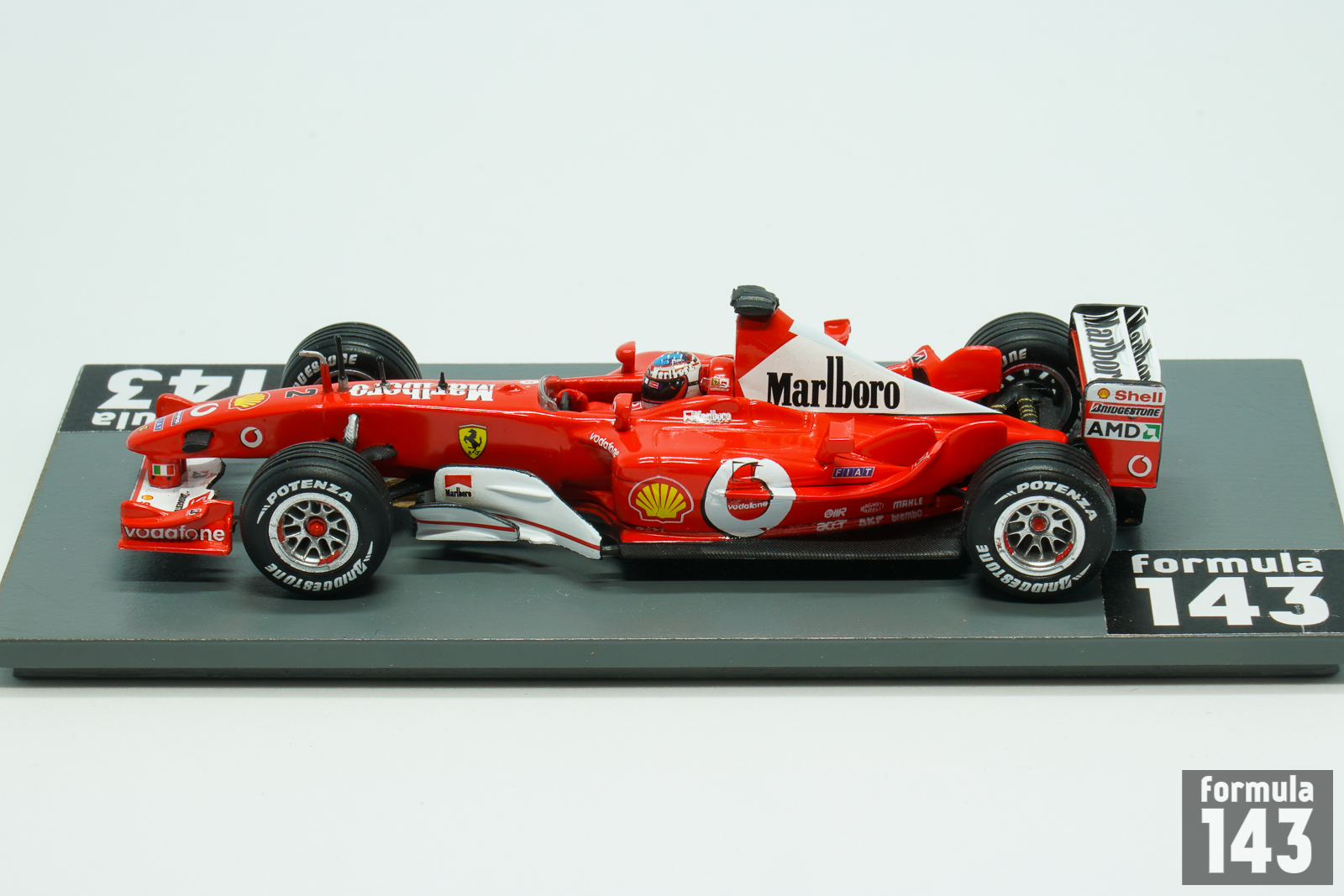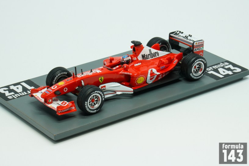 The F2003-GA was used by Scuderia Ferrari in the 2003 Formula One season. The car debuted in the mid of the season, at the Spanish Grand Prix, as the F2002, the car from the previous season, was proved to be competitive in the first part of the 2003 whilst the F2003-GA was developed further. The new car was designated F2003-GA in recognition of memory of Giovanni Agnelli, the recently deceased head of Fiat. The F2003 was based on F2002 concept of optimization of air flow, weight reduction and lowering of the center of gravity. The F2003-GA featured new sidepods and a lengthened wheelbase while engine and gearbox were developed versions of the previous model. The car won 7 out of 12 races where it was entered. Michael Schumacher won 5 Grand Prix (plus one in the F2002) and took his 6th Driver’s title beating Fangio’s record. The championship was decided at the last race of the season in Japan. McLaren driver Kimi Raikkonen needed to win and Schumacher not to score a single point in order for him to become Driver’s Champion. Schumacher finally finished in 8th position and score a single point he only needed to secure he title. Raikkonen, who started the race from eighth position, was able to move to the second, but the victory went to Barichello. Rubinho’s win saw Ferrari clinch their 13th Constructors Championship title, the team’s fifth title in a row.